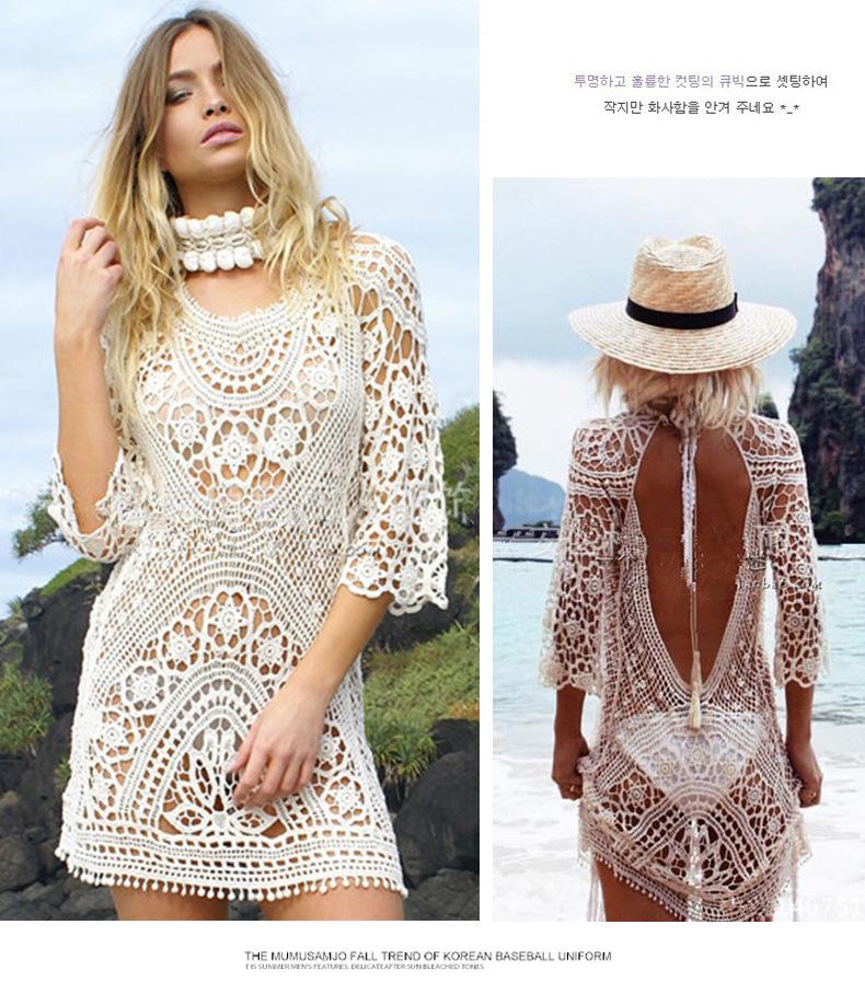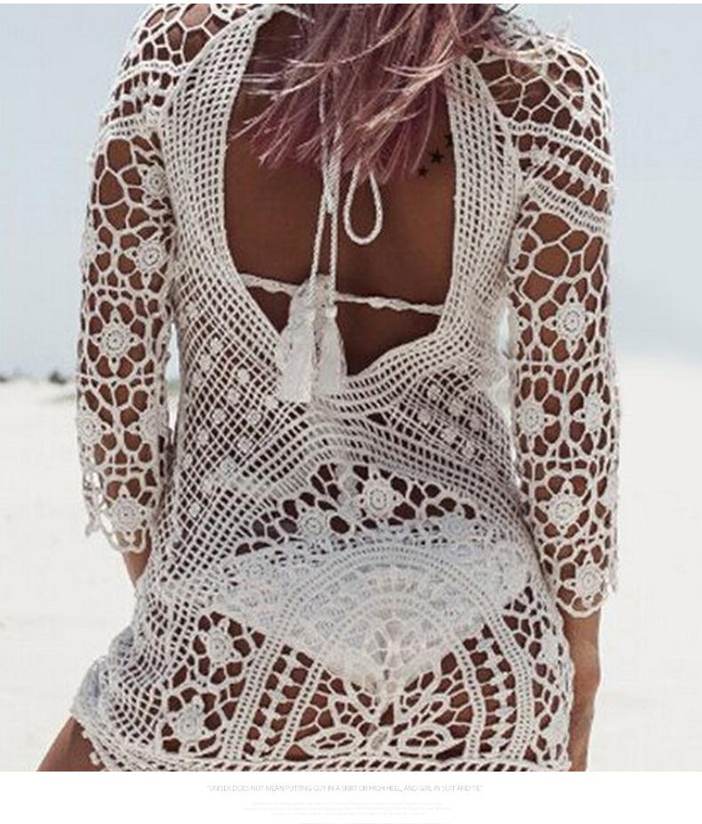 Vestido de bikini sexy con espalda descubierta y encaje de ganchillo para vacaciones en la playa de Amazon. Ropa de protección solar.