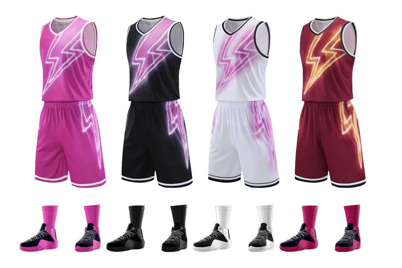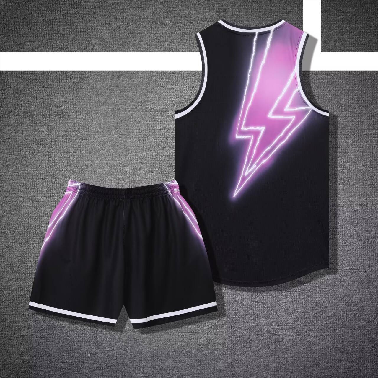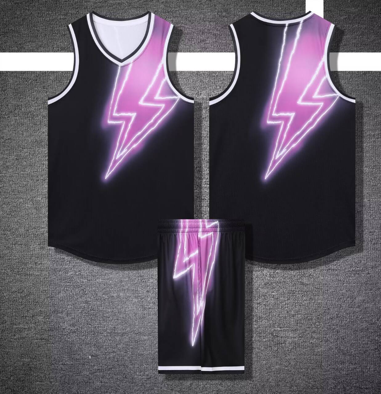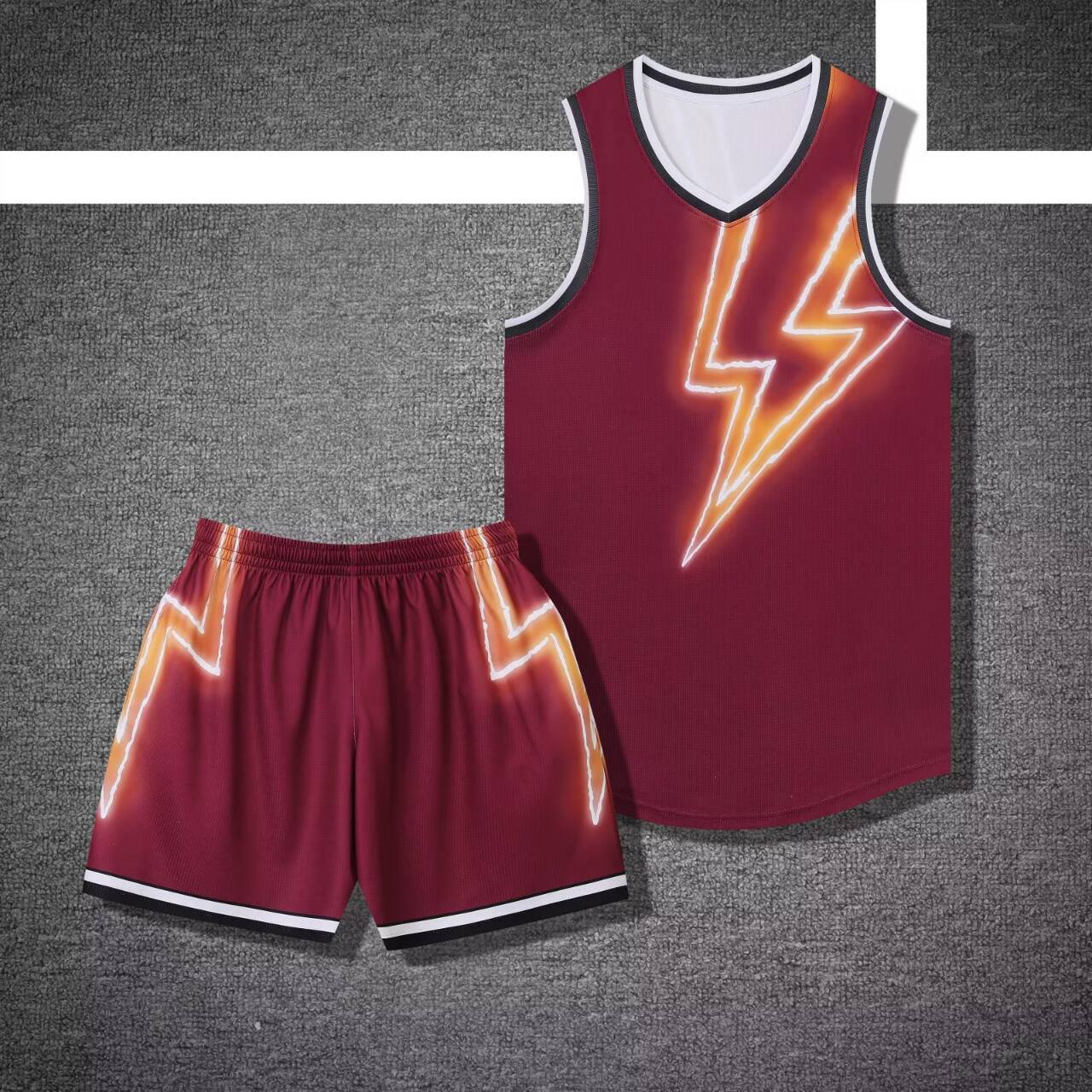 Uniforme de baloncesto americano con cuello en V y estampado de rayos, camiseta de entrenamiento para club, lote directo de fábrica 2023, nuevo, para hombre