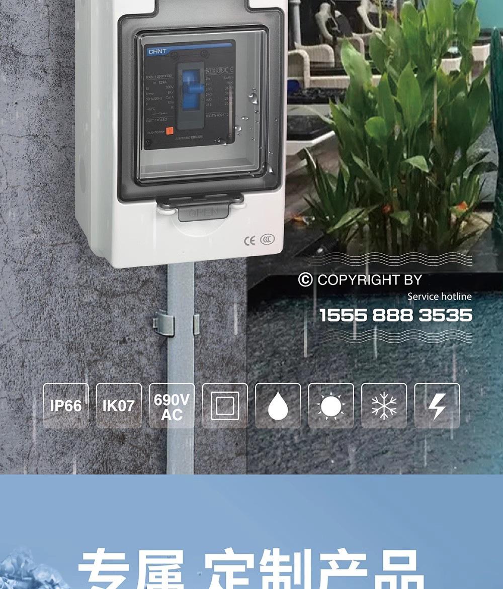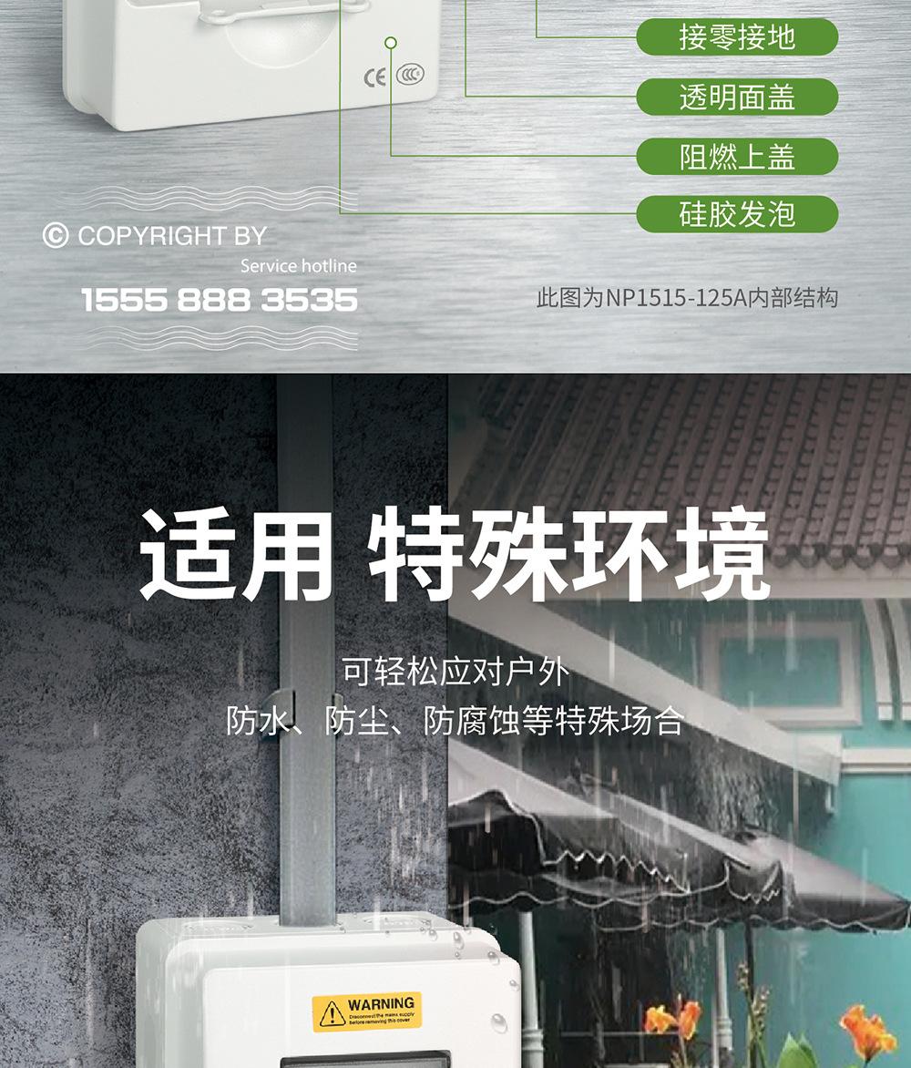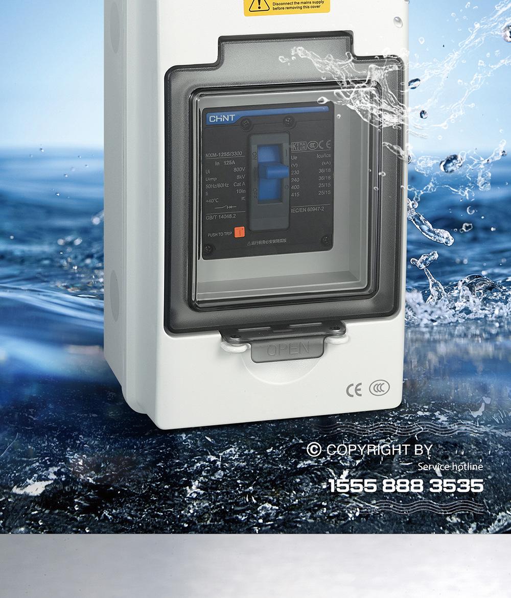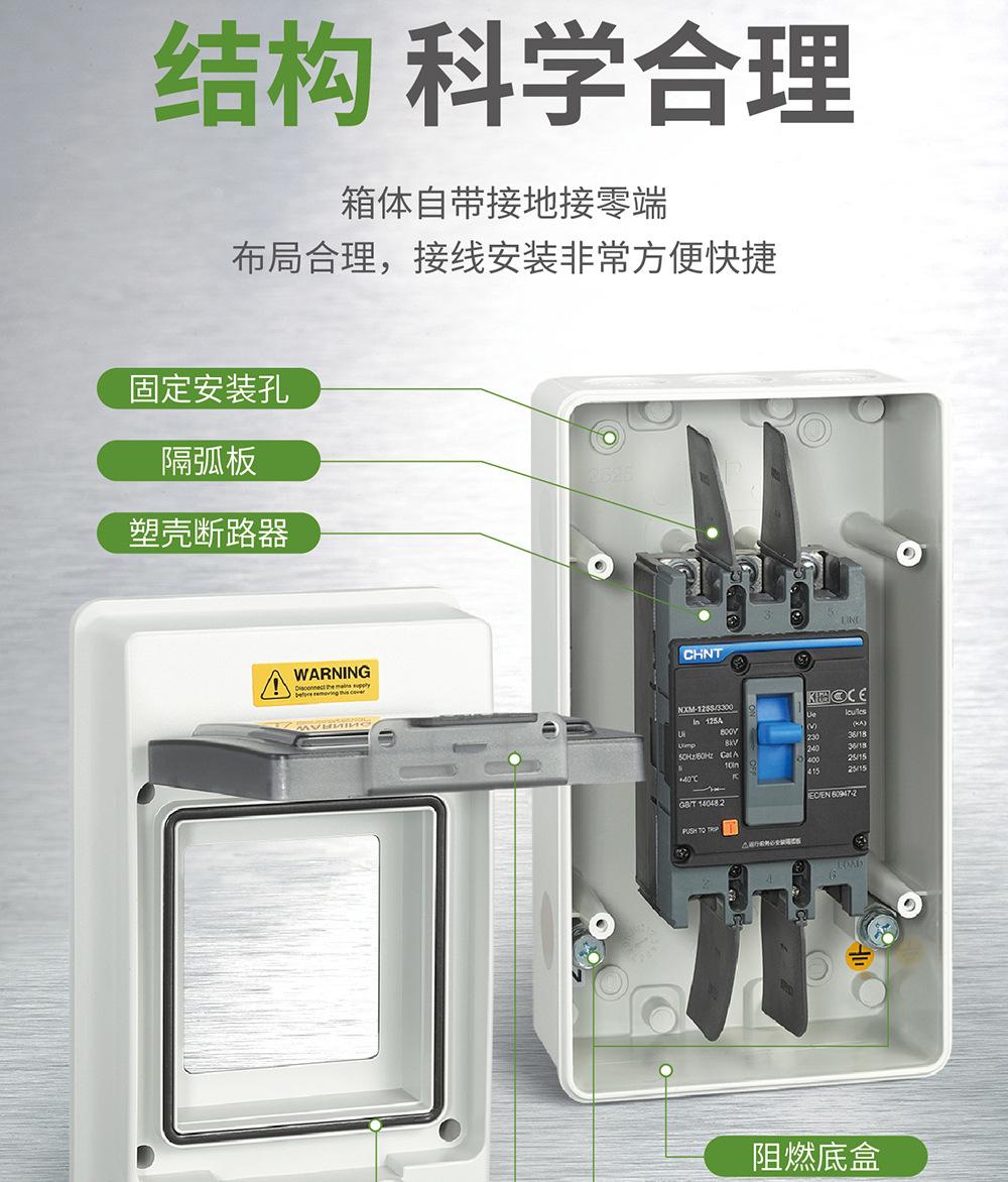 Caja de distribución exterior impermeable para instalación de disyuntor de caja moldeada, caja de distribución de superficie, retardante de llama, a prueba de lluvia con conexión a tierra, carcasa protectora cero de PC