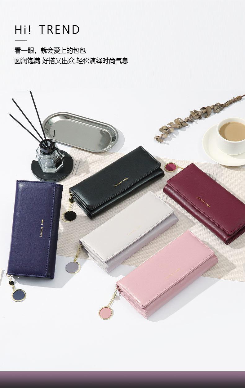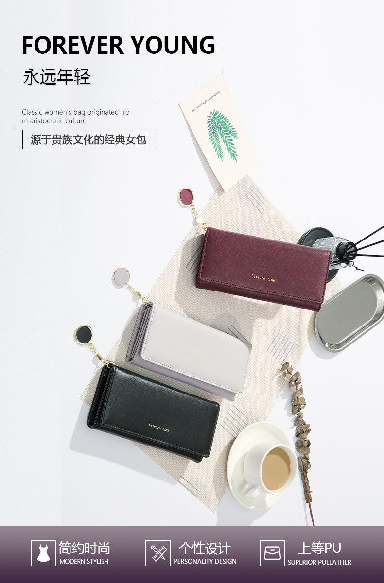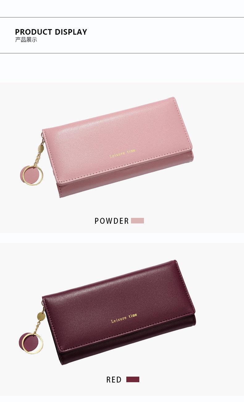 Billetera de Cuero Genuino para Mujer Larga Color Sólido Tarjetero Gran Capacidad para Mujer de Alta Gama Transfronteriza Cierre de Cremallera Billetera de Moda para Mujer