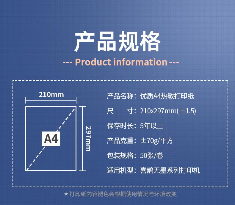 Hojas de Papel A4 Mini Impresora Térmica A4 Secado Rápido y Almacenamiento a Largo Plazo Rollo de Papel Térmico Continuo 50-150 hojas Papel Térmico