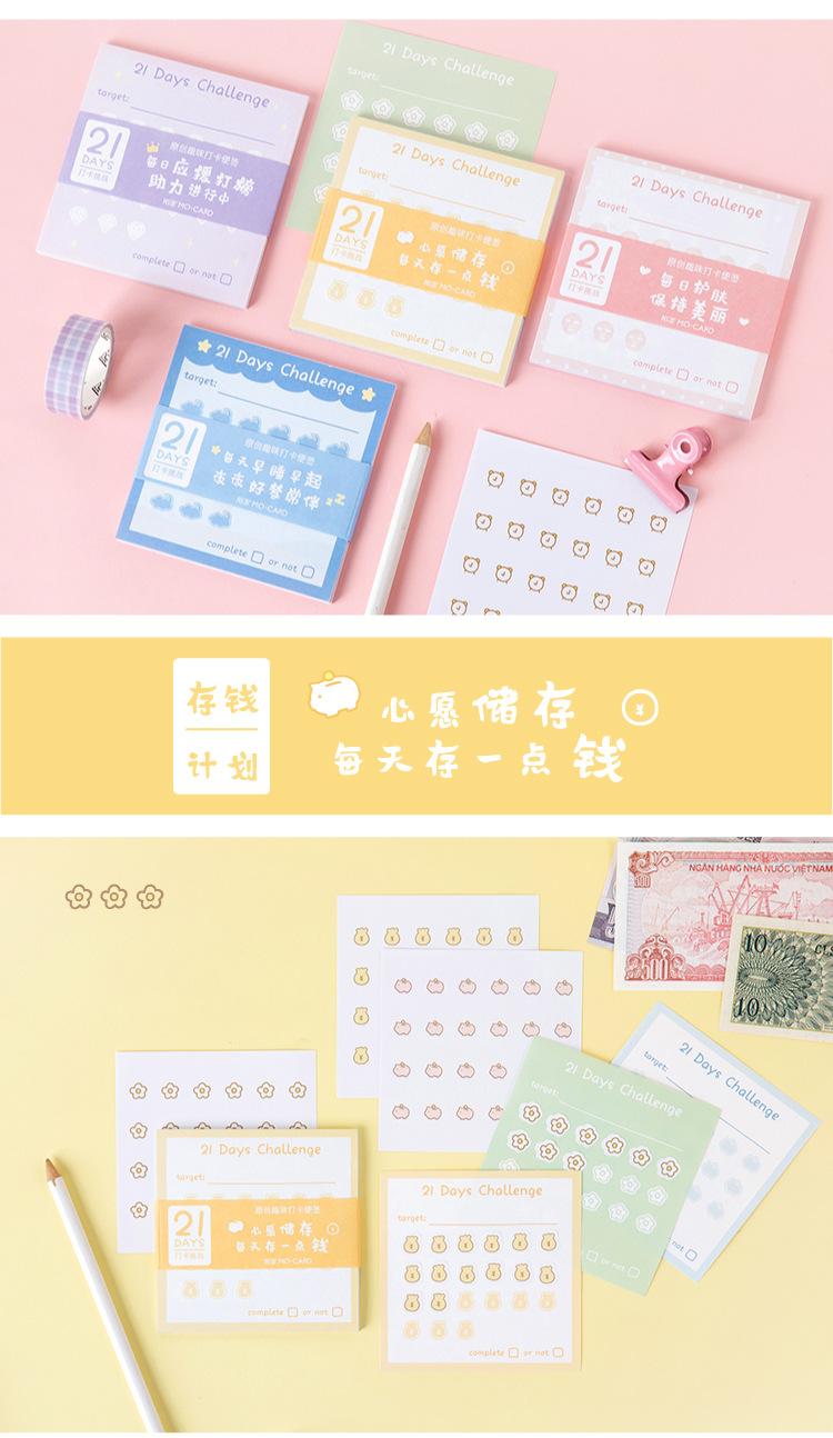 Perforadora de Papel Kraft Blanco Mo Mo Notas Serie Desafío de Perforación de 21 Días Interesante Cuenta a Mano Mensajes Notas 30