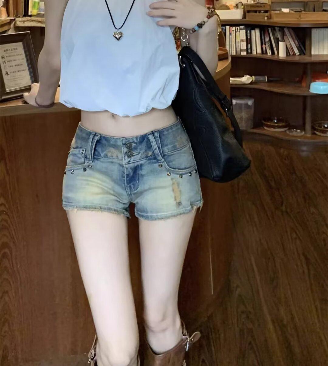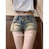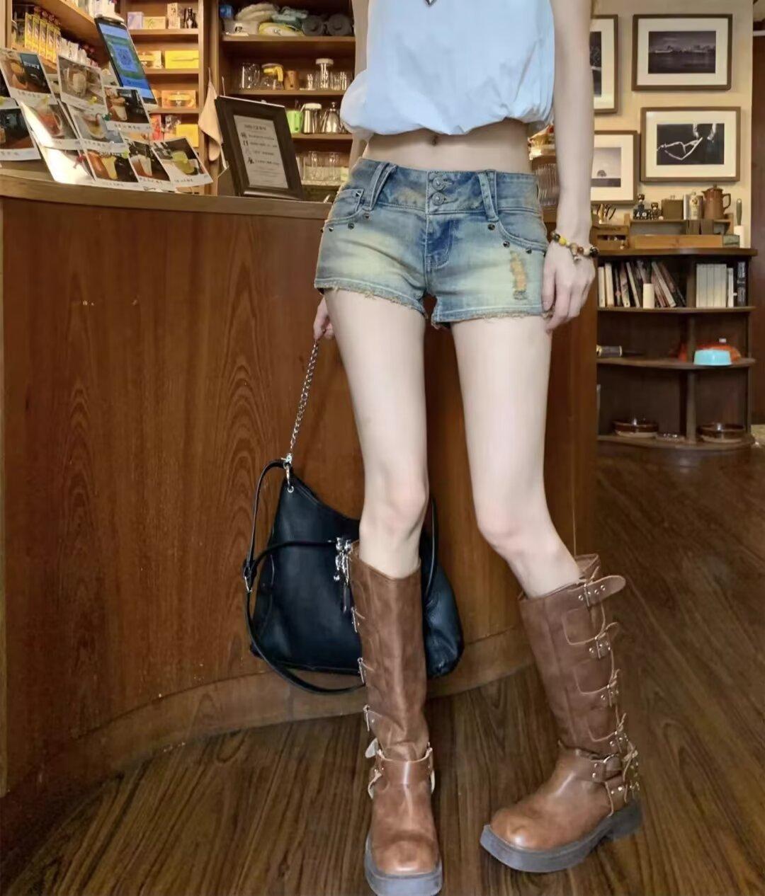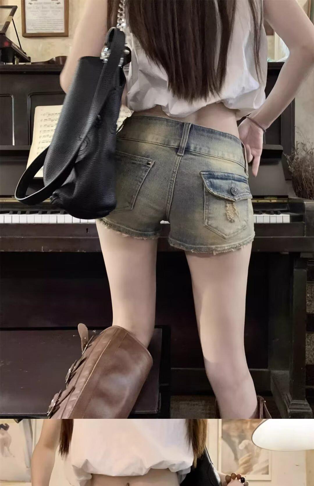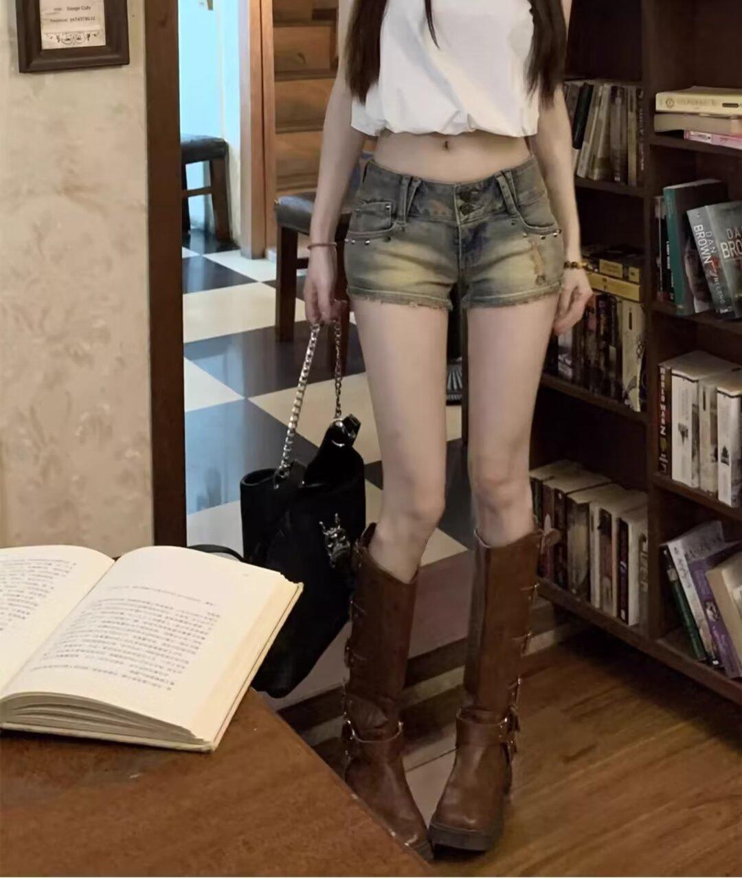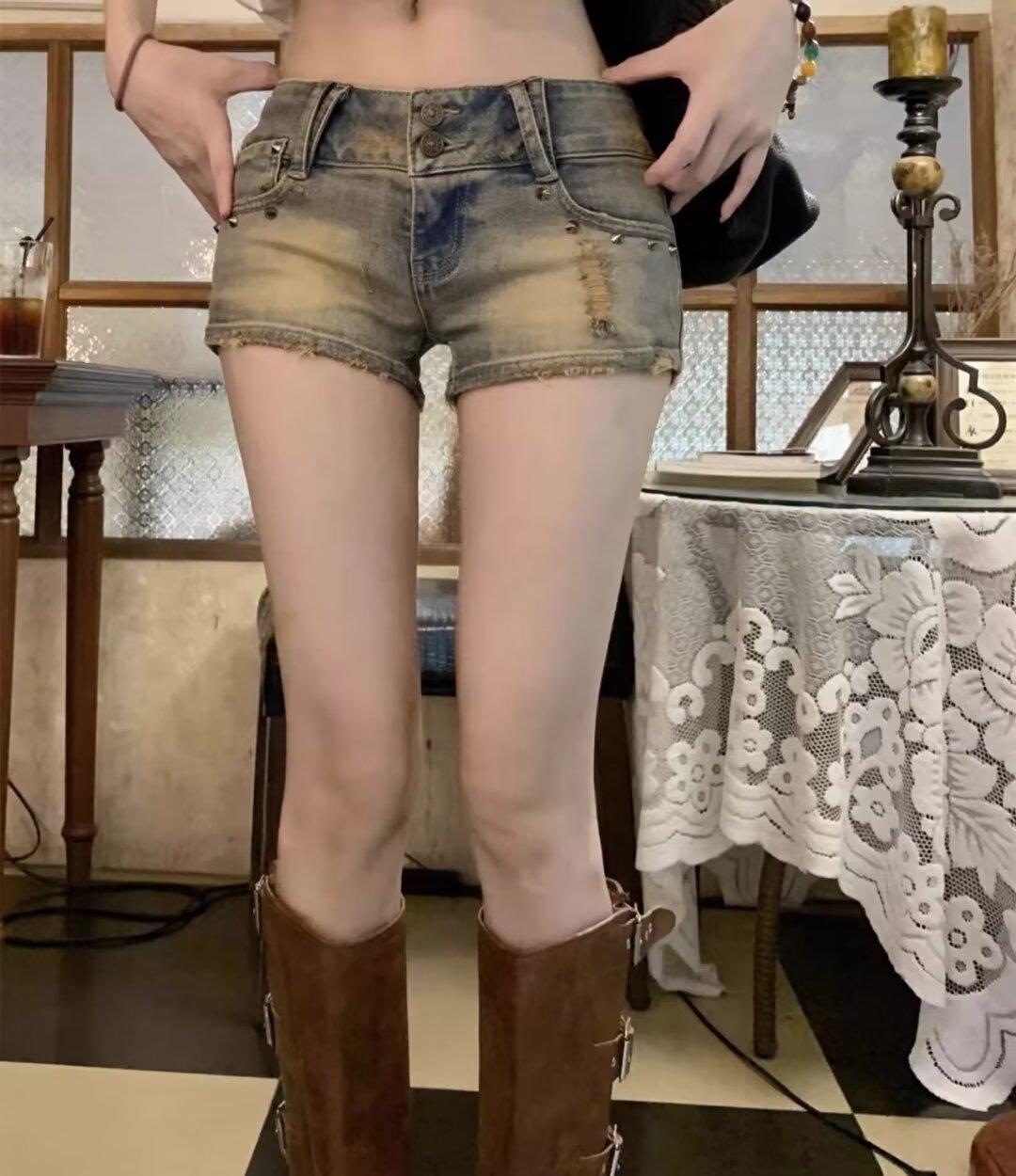 Pantalones cortos vaqueros retro de color claro con cintura baja lavados de Spice Girl para mujer