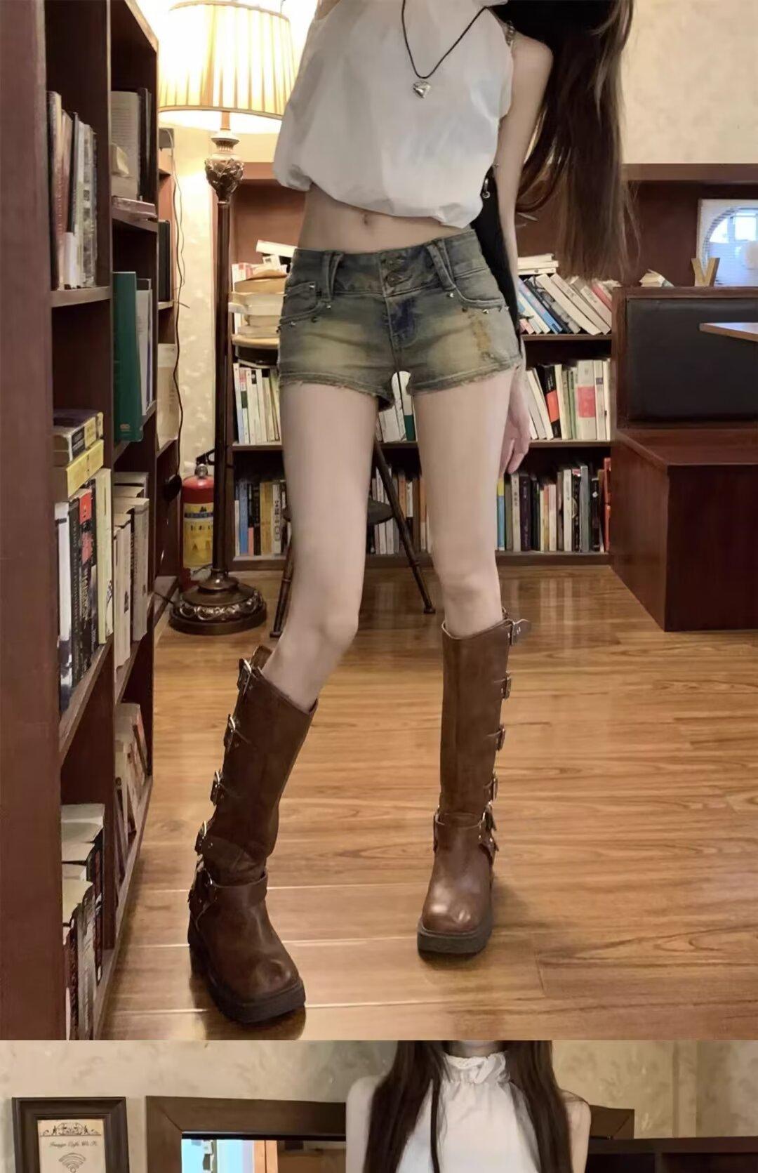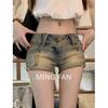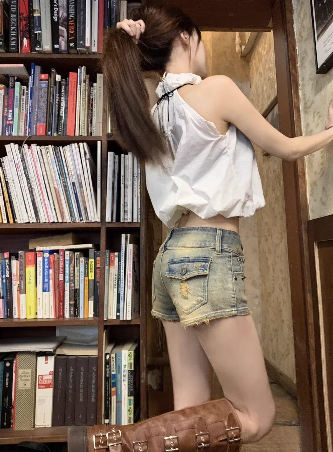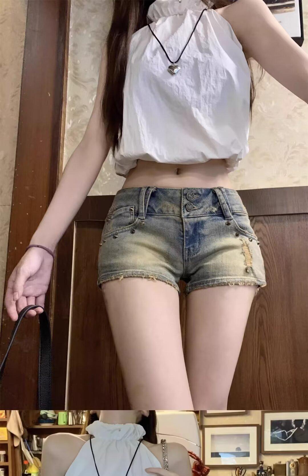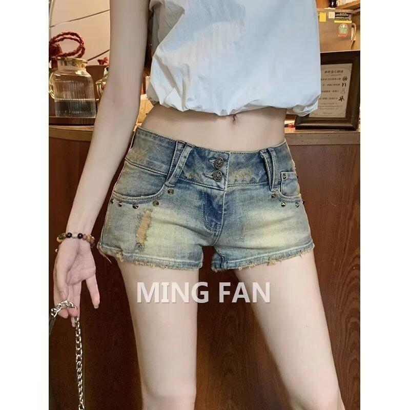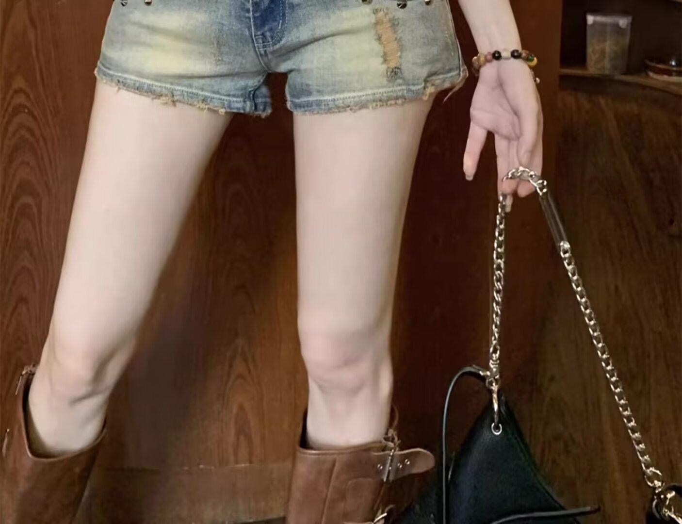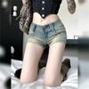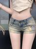 Pantalones cortos vaqueros retro de color claro con cintura baja lavados de Spice Girl para mujer