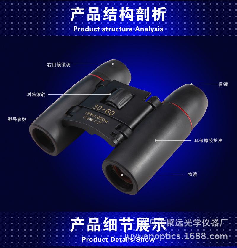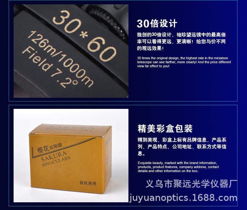 Binoculares de alta potencia 30X60 de flor de cerezo superventas transfronterizos, visión nocturna, alta definición, mini, de mano para exteriores para niños