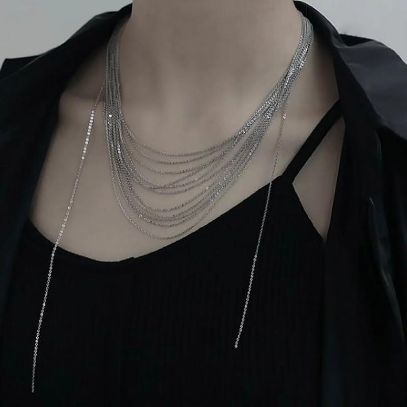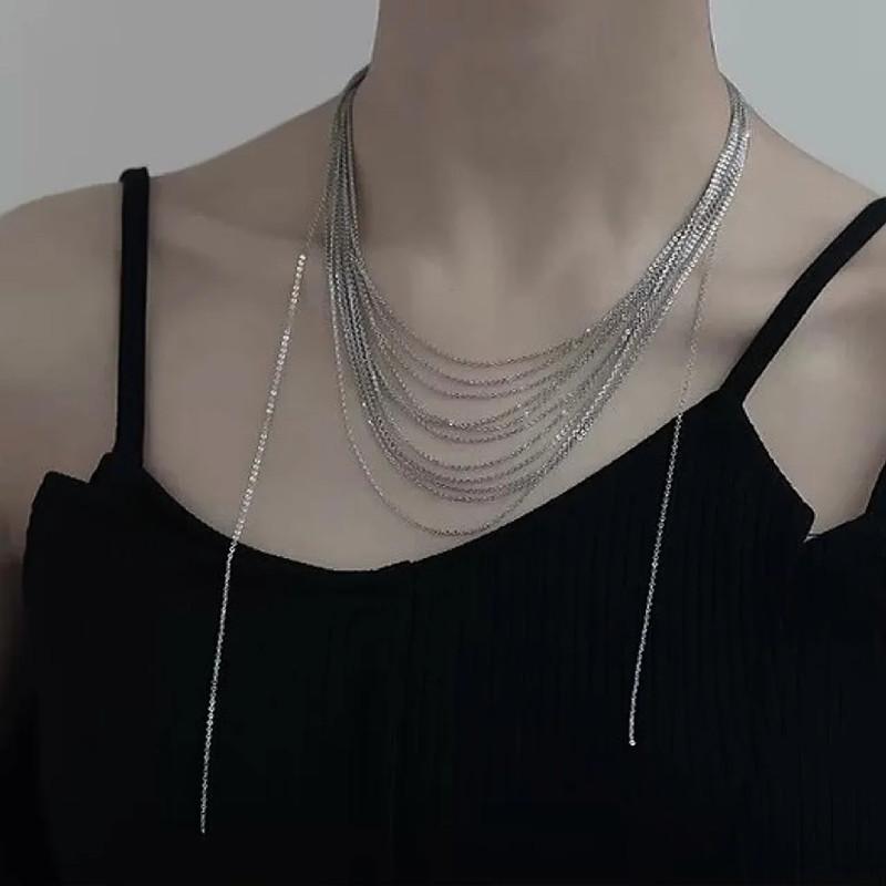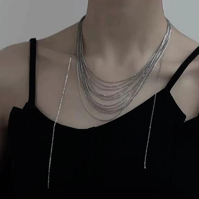 Collar de múltiples capas con borlas irregulares, sencillo y popular, diseño de nicho de lujo ligero, elegante cadena de clavícula para dama
