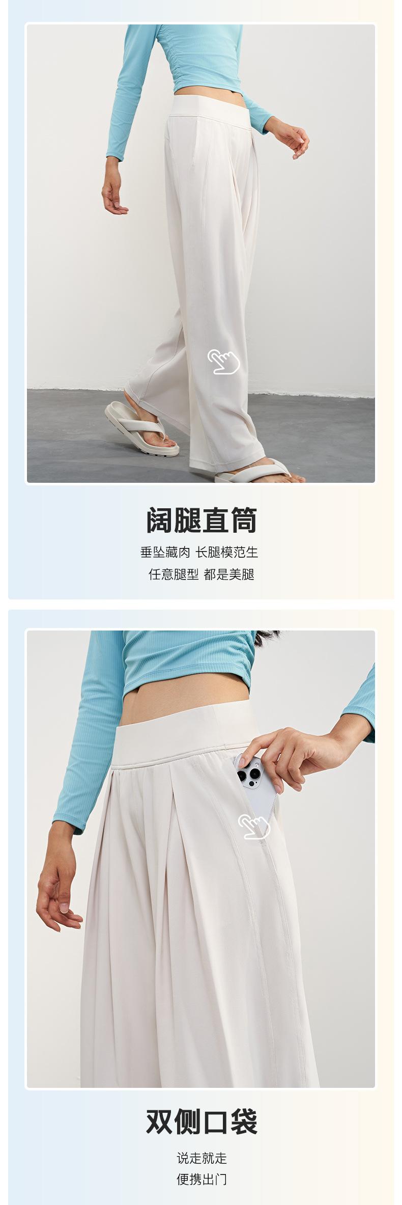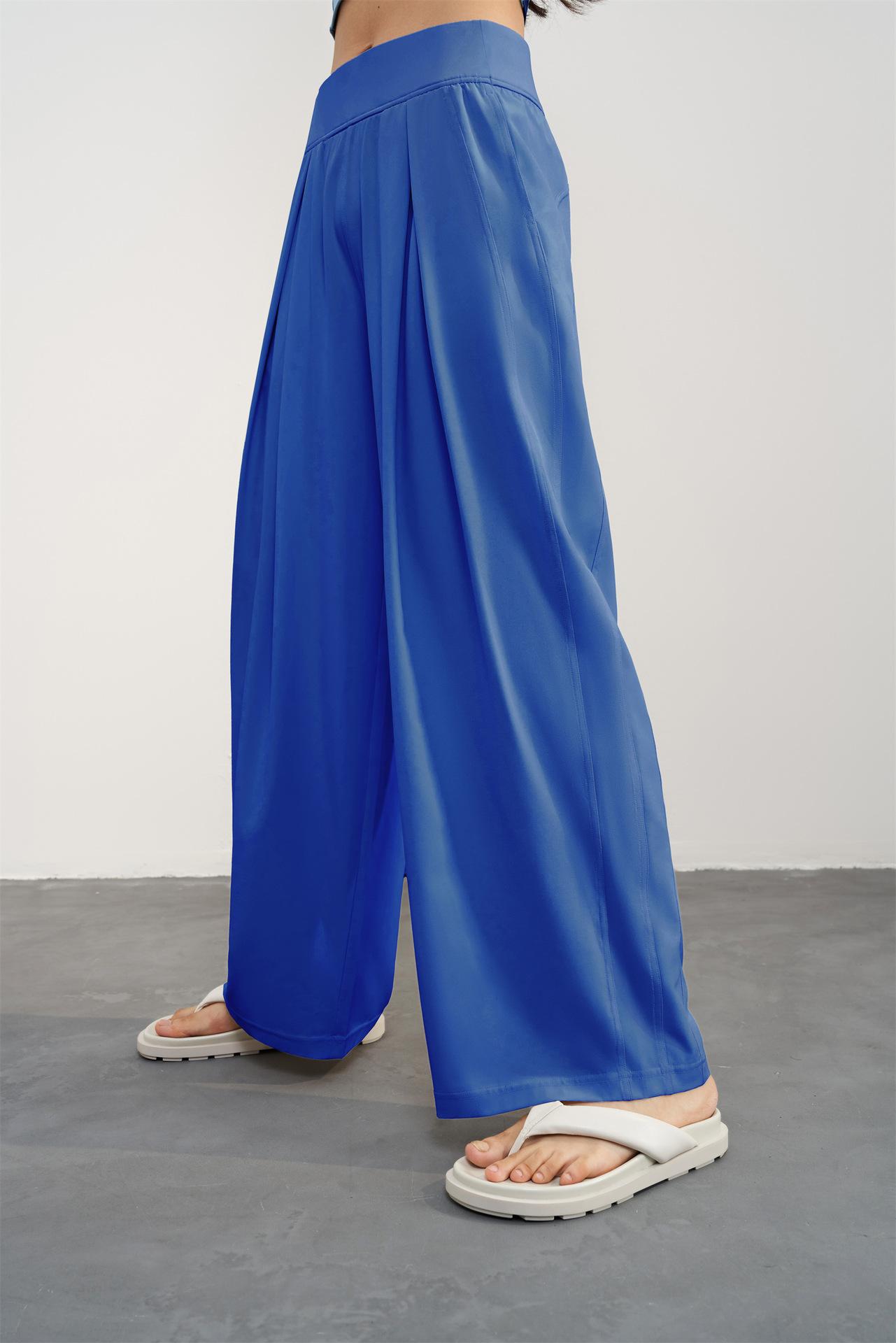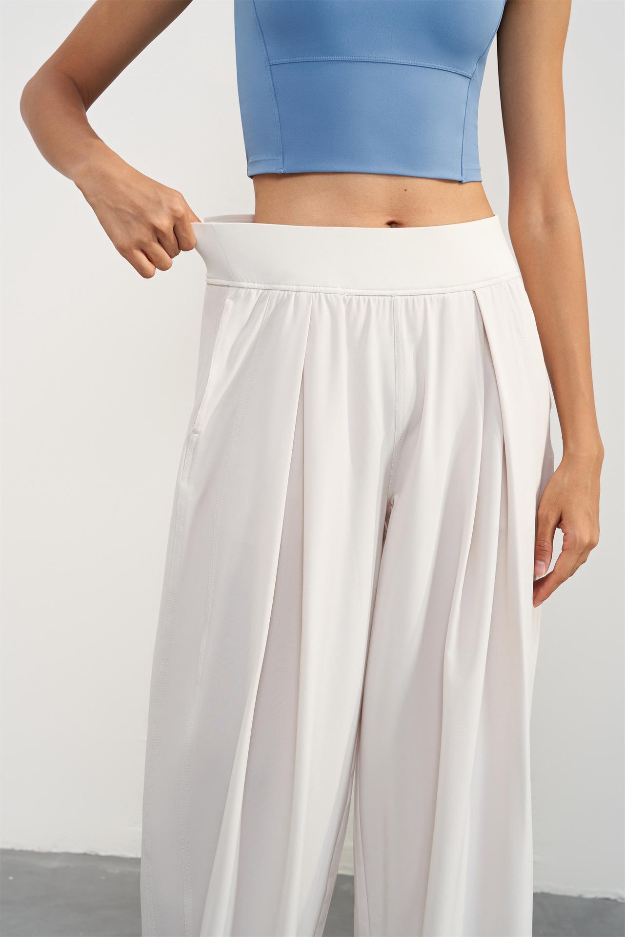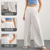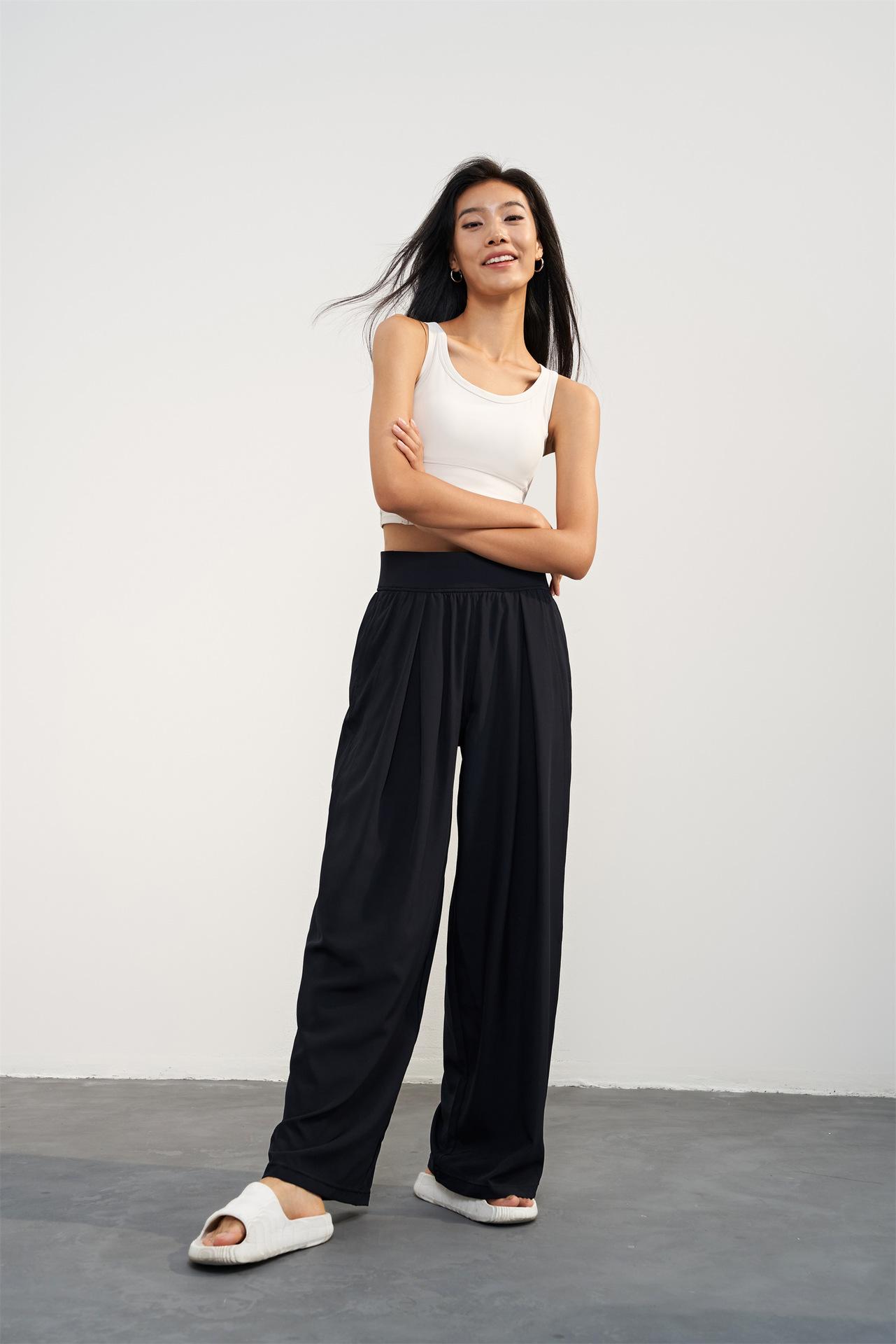 Pantalones tejidos delgados y frescos de pierna ancha para mujer, protección UV de verano, pantalones deportivos adelgazantes de cintura alta, corte holgado, pantalones de pierna recta