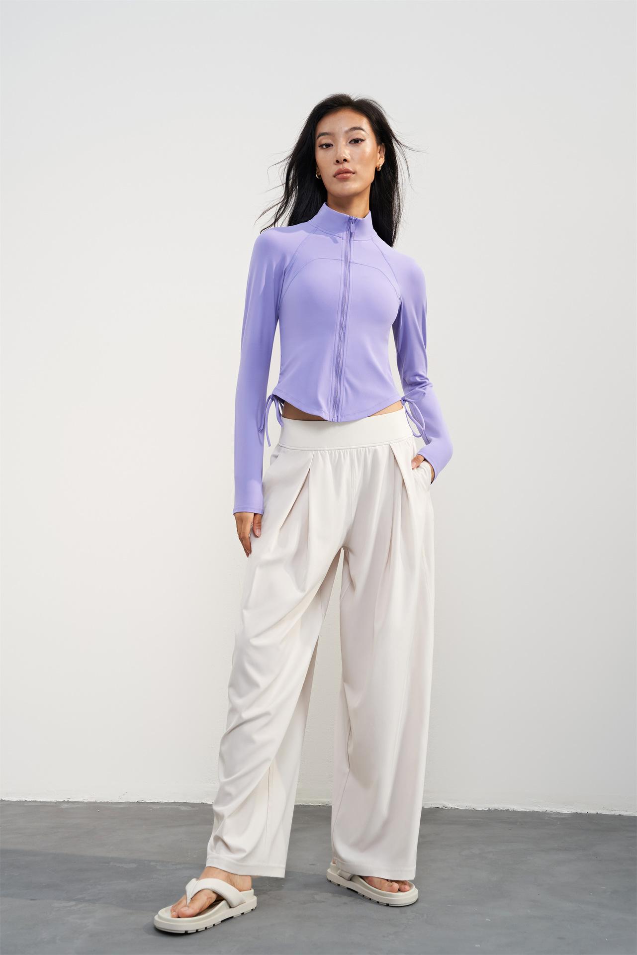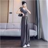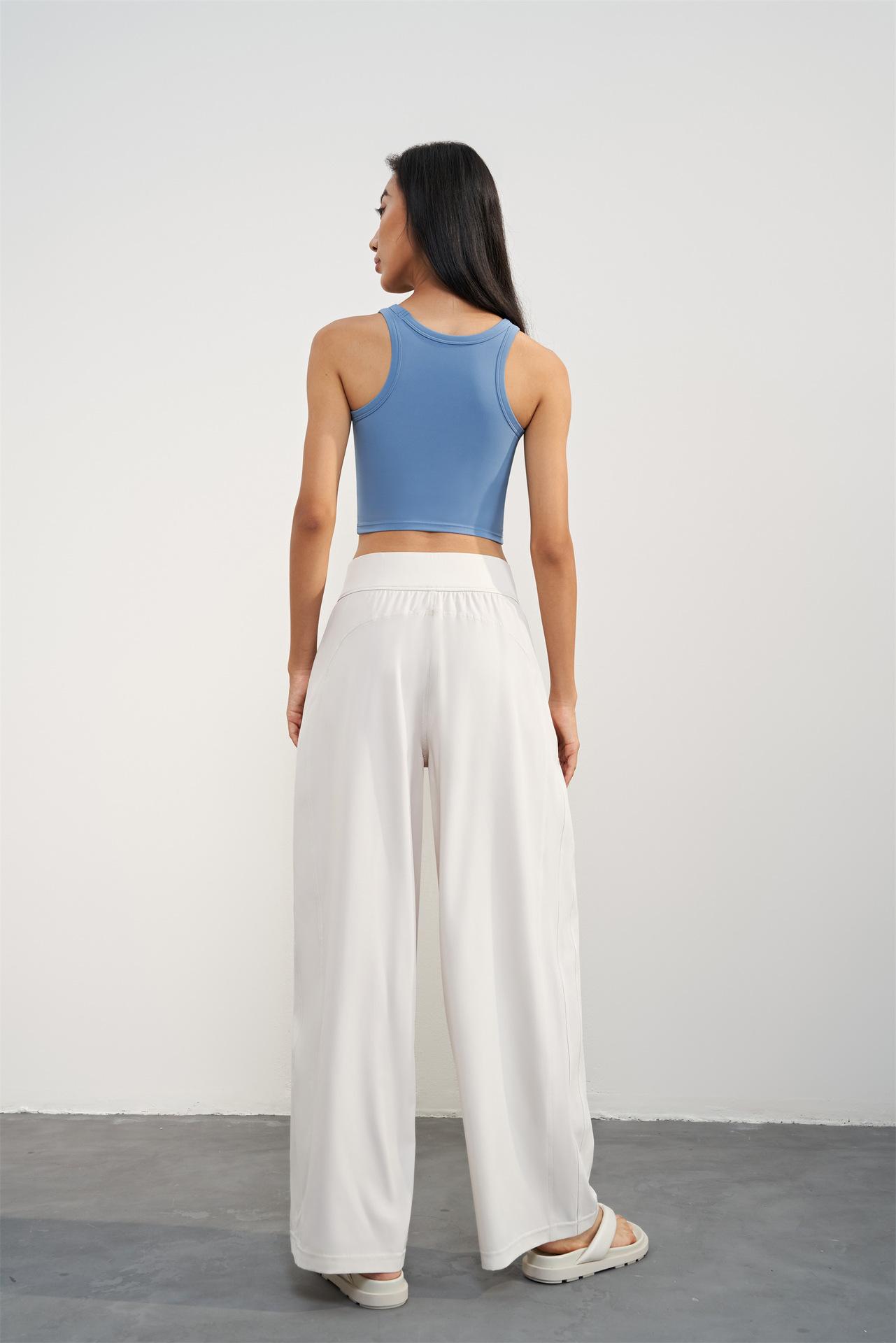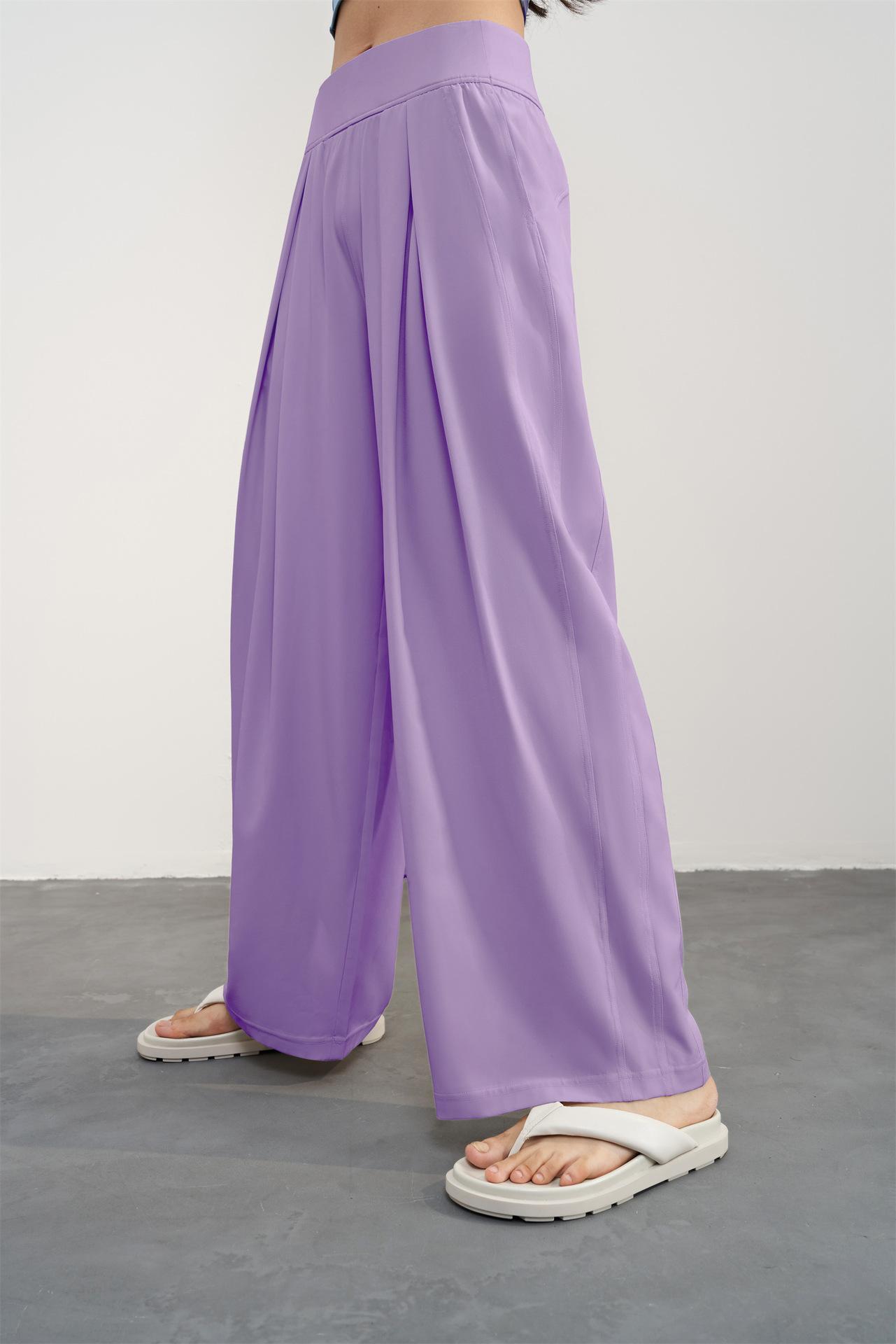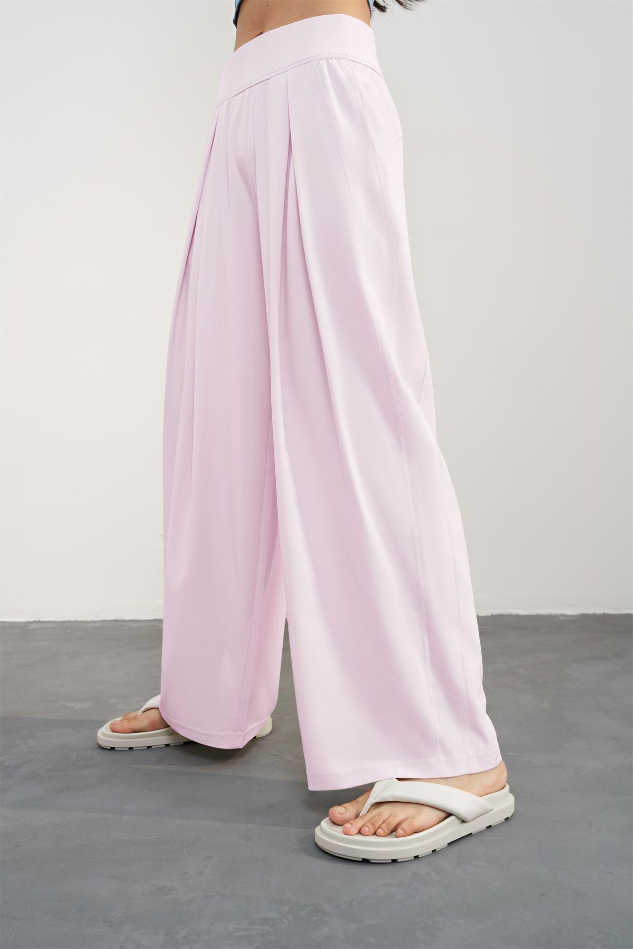 Pantalones tejidos delgados y frescos de pierna ancha para mujer, protección UV de verano, pantalones deportivos adelgazantes de cintura alta, corte holgado, pantalones de pierna recta