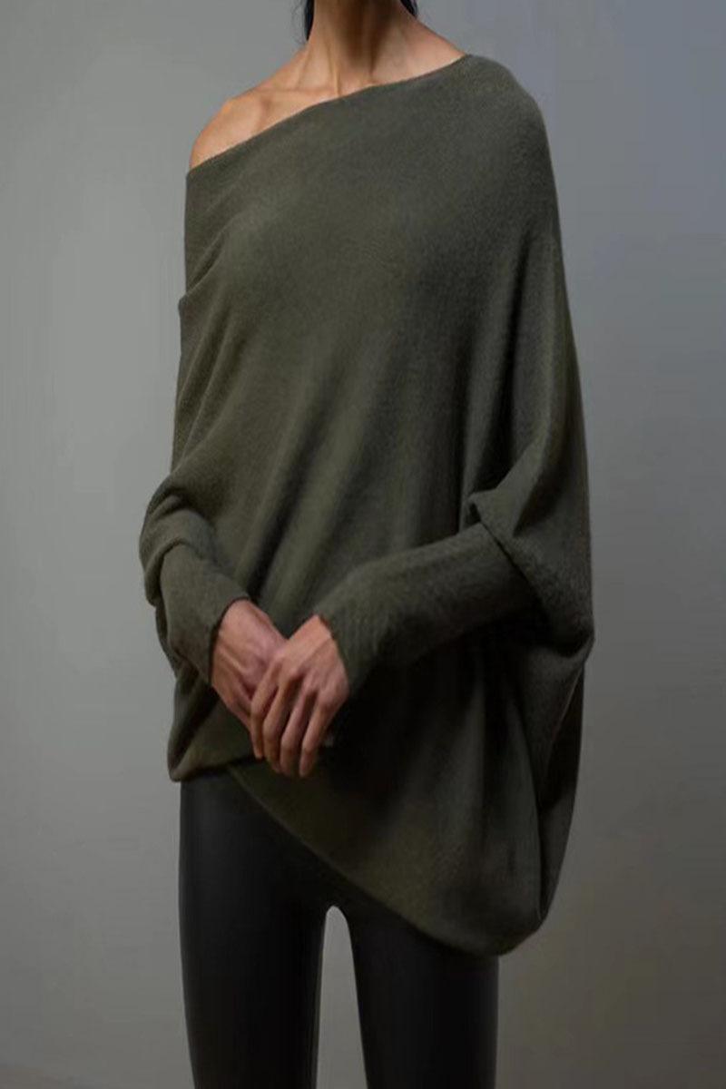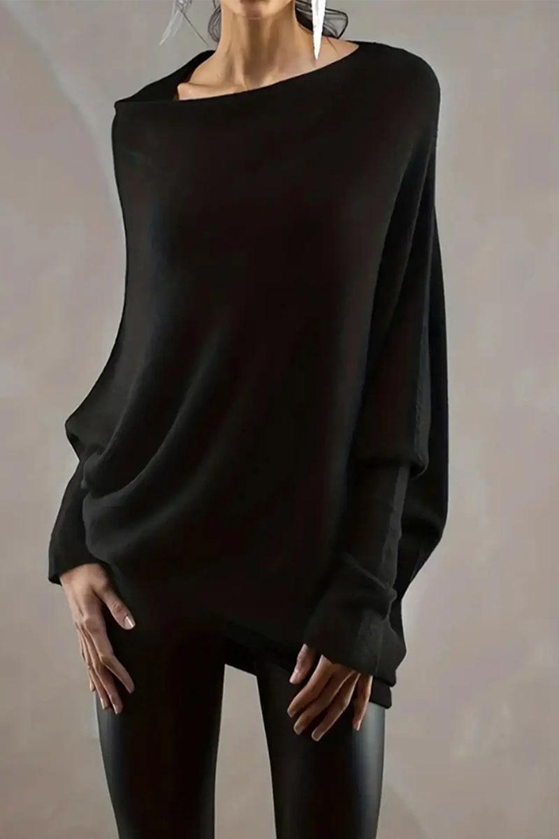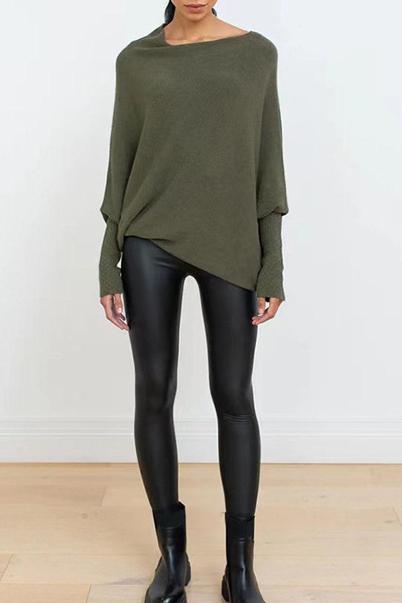 Suéter de punto elegante y cómodo para mujer, de primavera, fino, de color puro, cuello redondo, manga larga, Amazon, europeo y americano