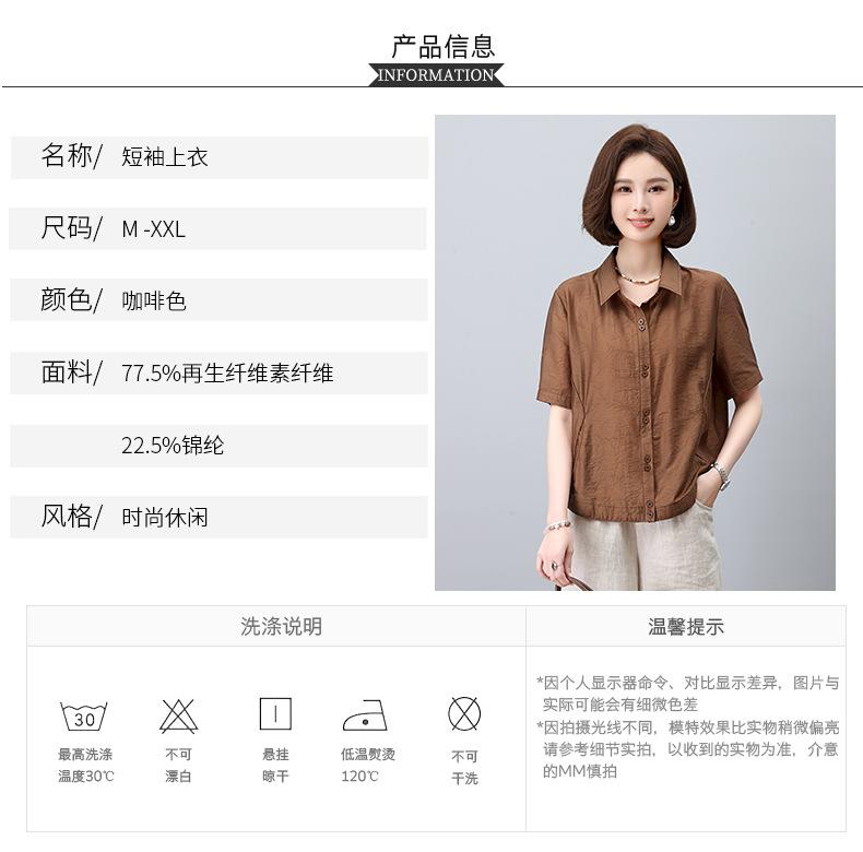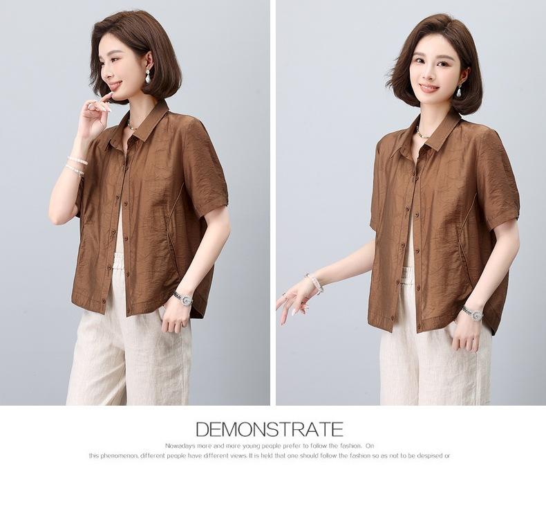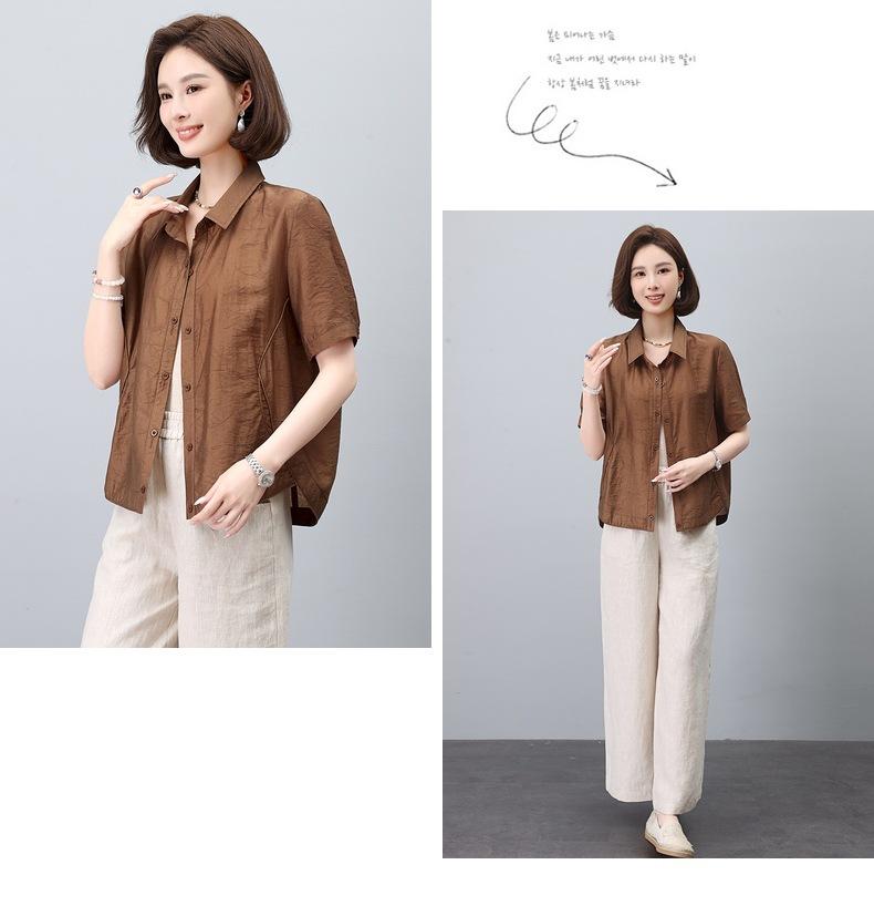 Camisa de manga corta para mamá, moda de verano 2024, nueva llegada, talla grande, suelta, elegante, pequeña, informal