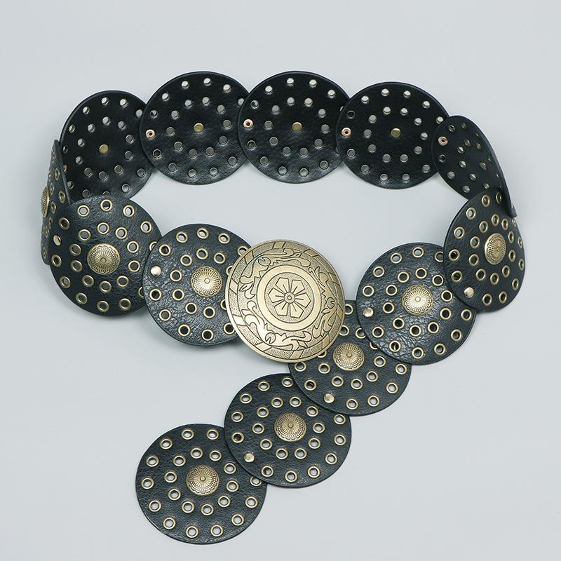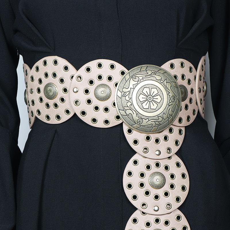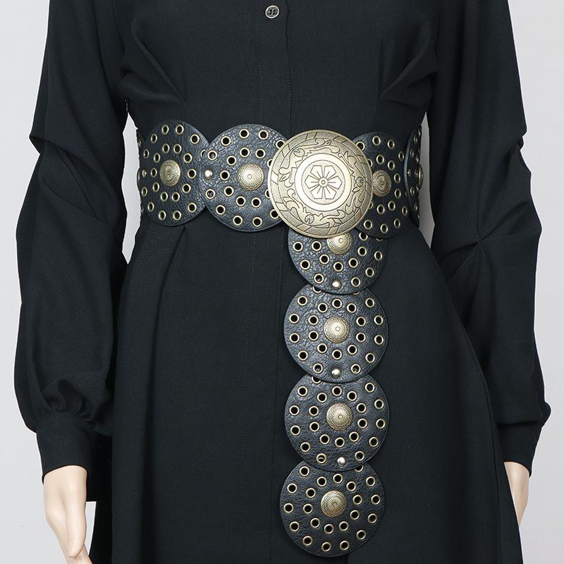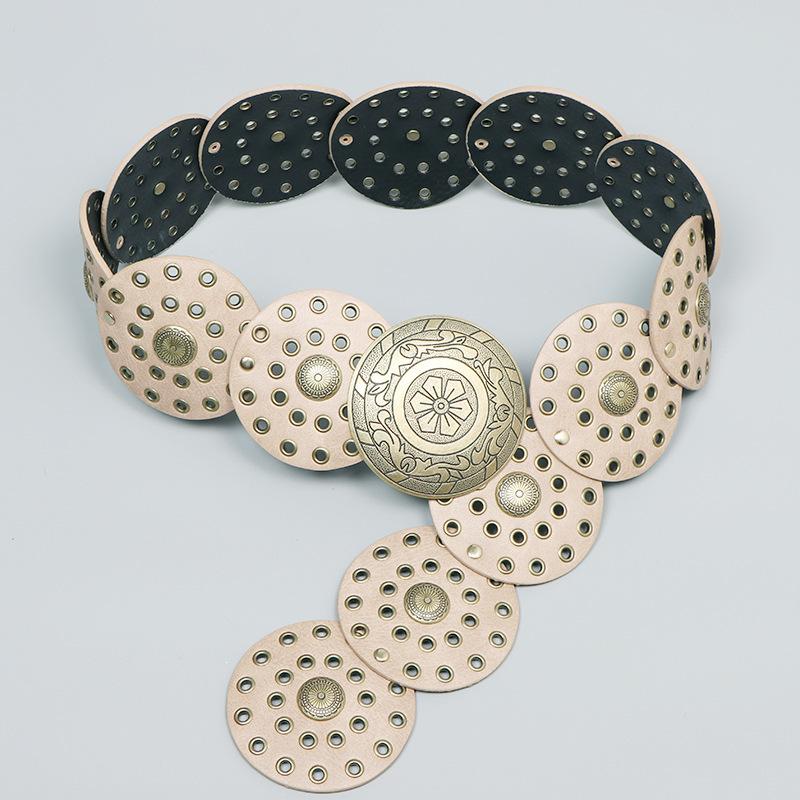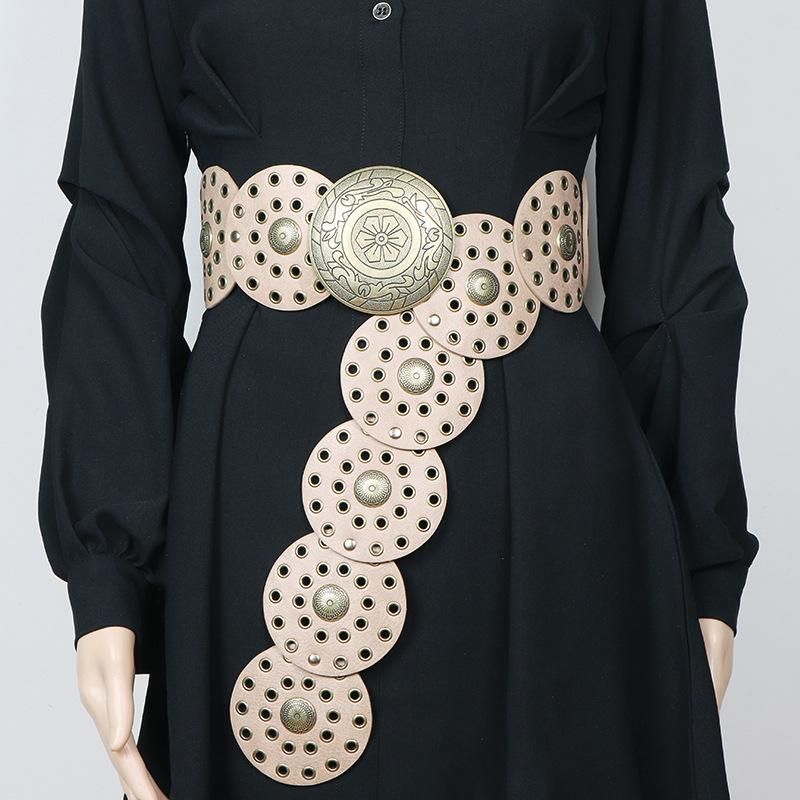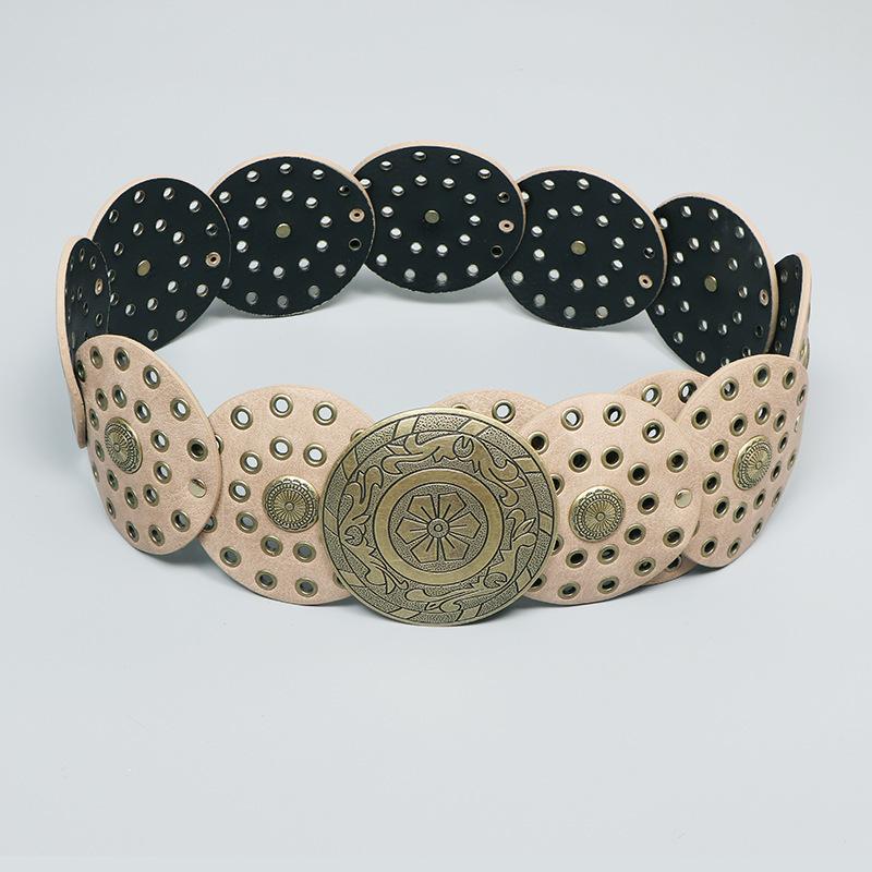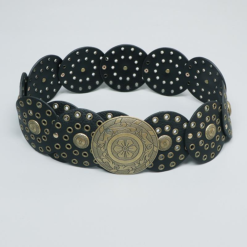 Cinturón redondo hueco de metal retro europeo y americano para mujer, cintura ajustada, cinturón decorativo distintivo, decoración de cintura de nicho.