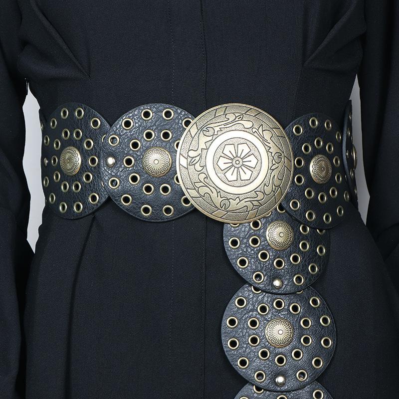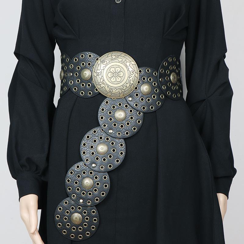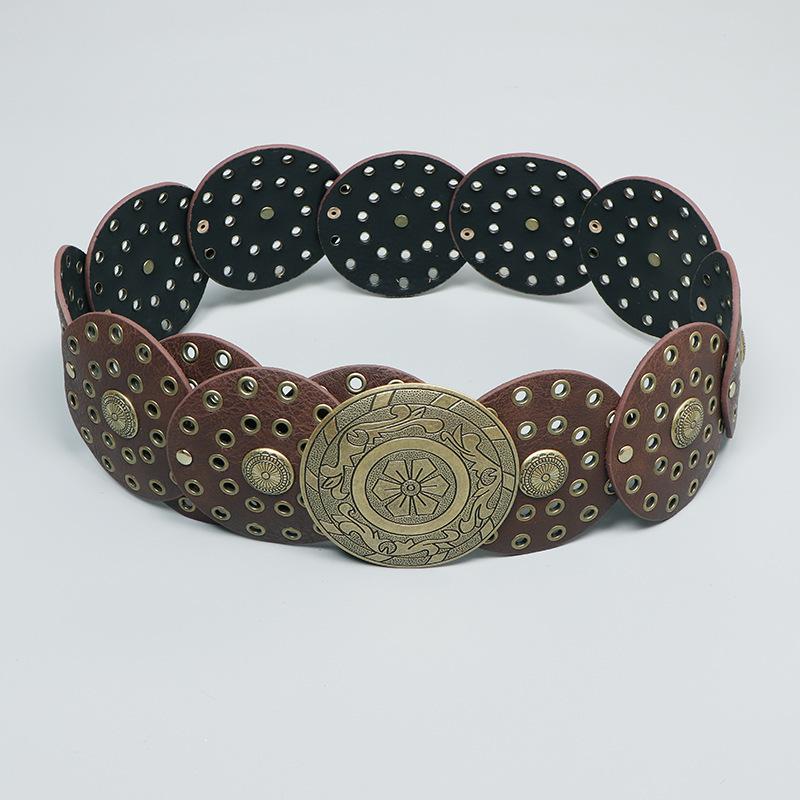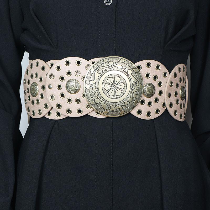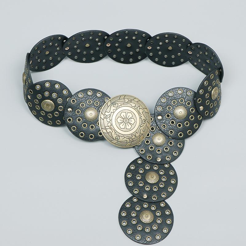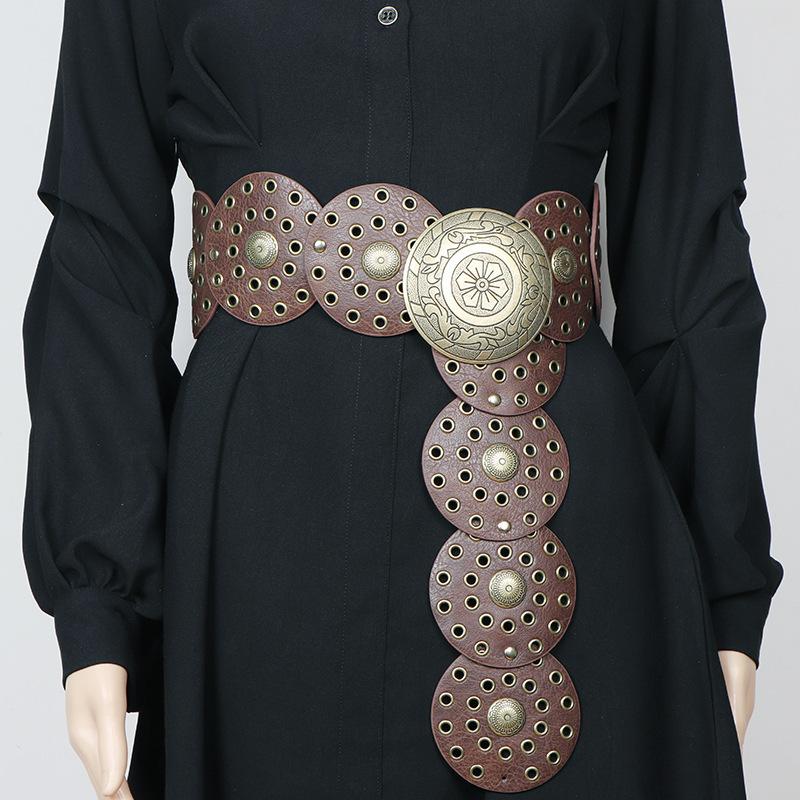 Cinturón redondo hueco de metal retro europeo y americano para mujer, cintura ajustada, cinturón decorativo distintivo, decoración de cintura de nicho.