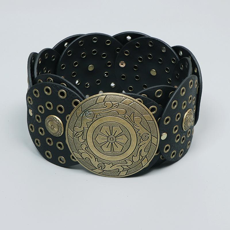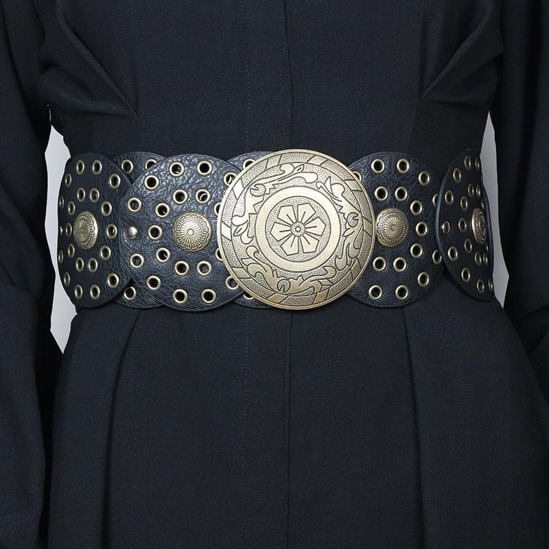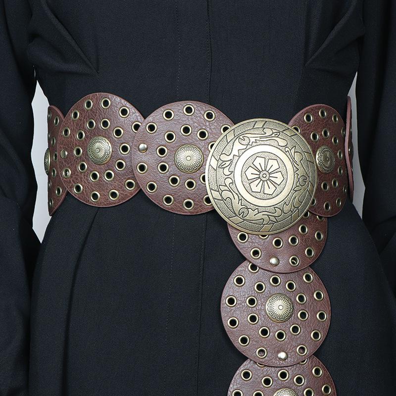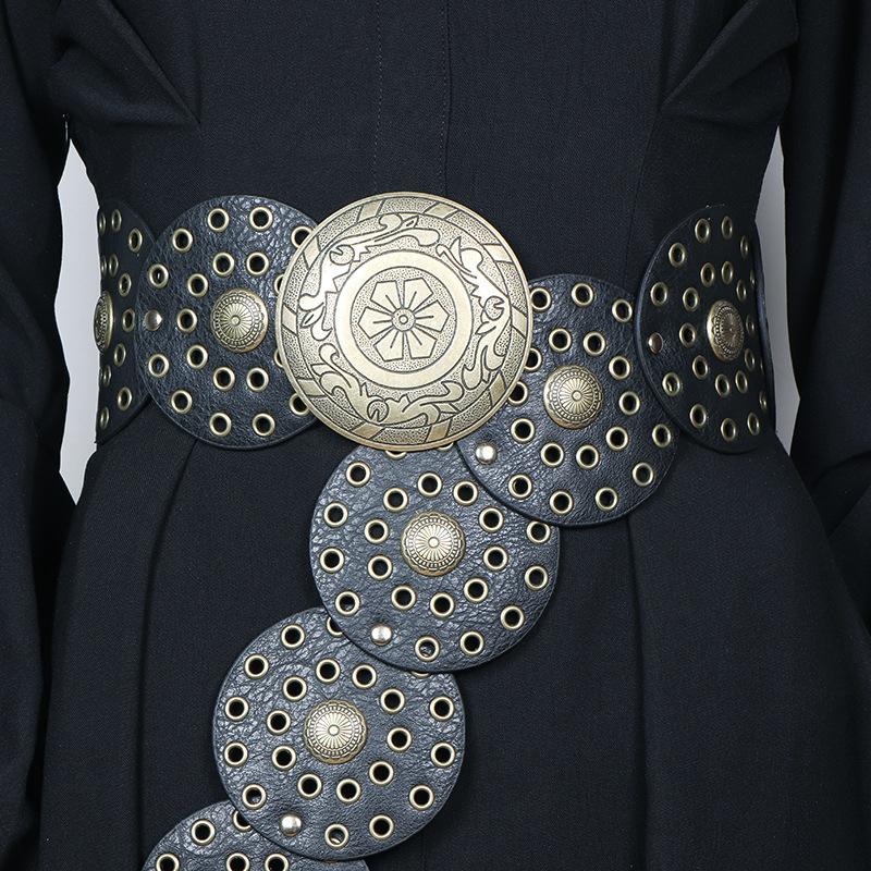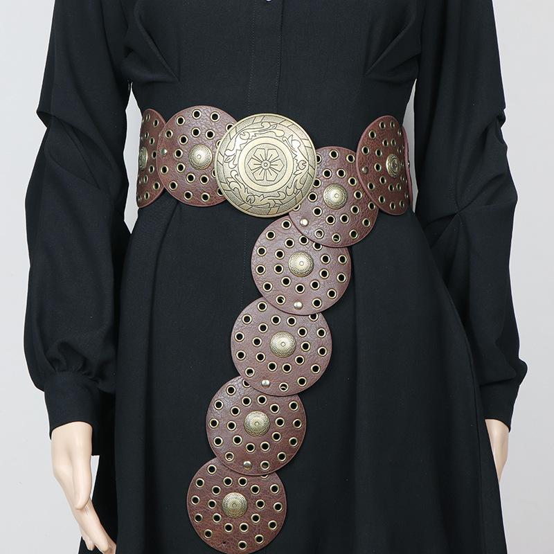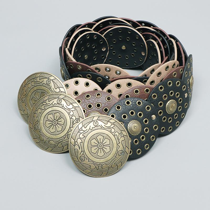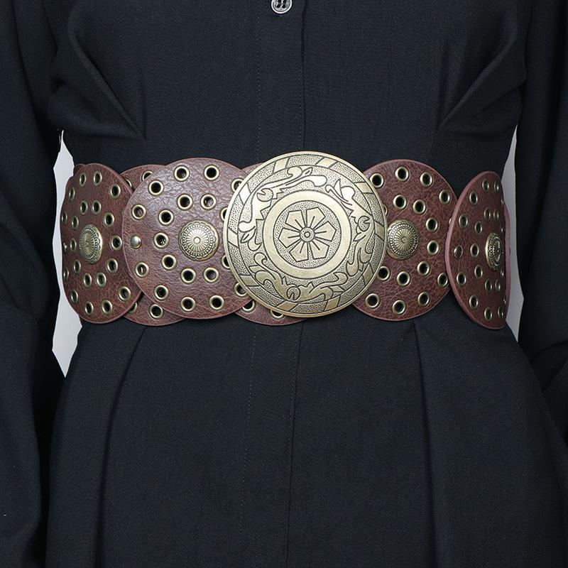 Cinturón redondo hueco de metal retro europeo y americano para mujer, cintura ajustada, cinturón decorativo distintivo, decoración de cintura de nicho.