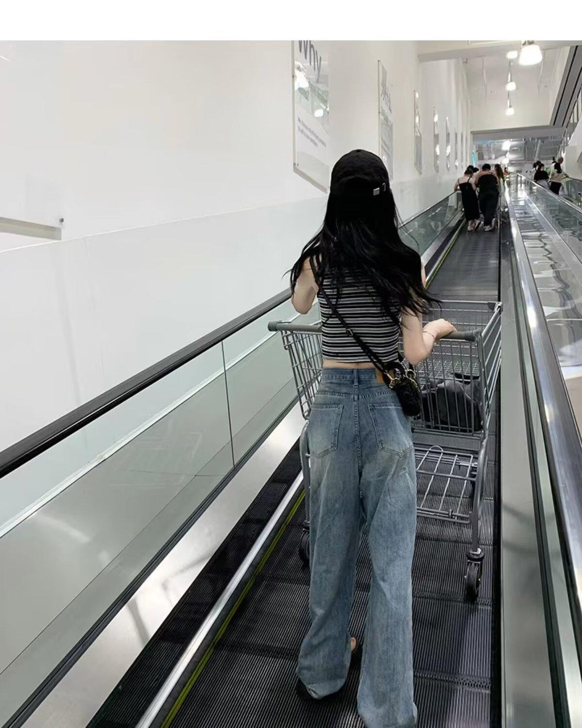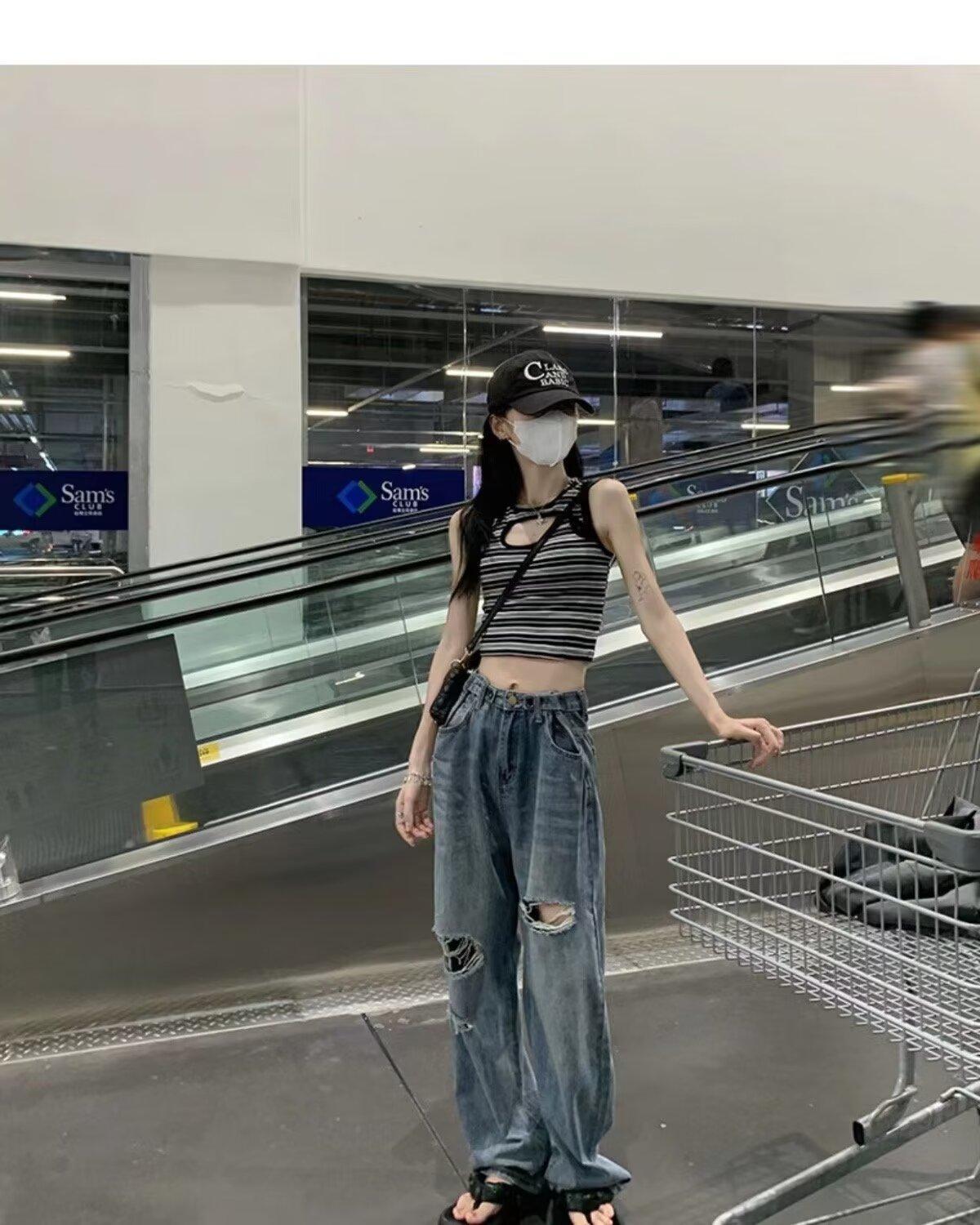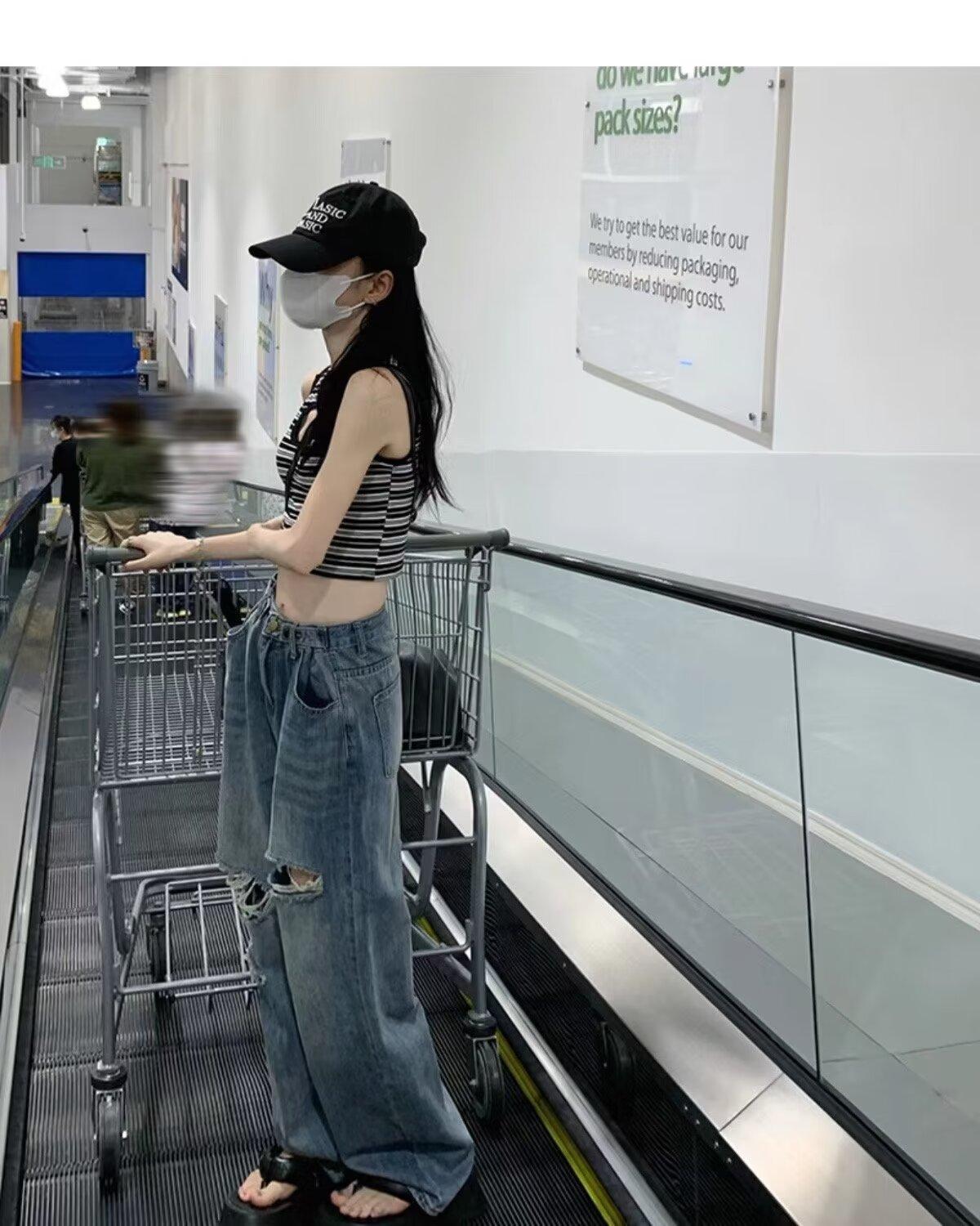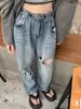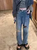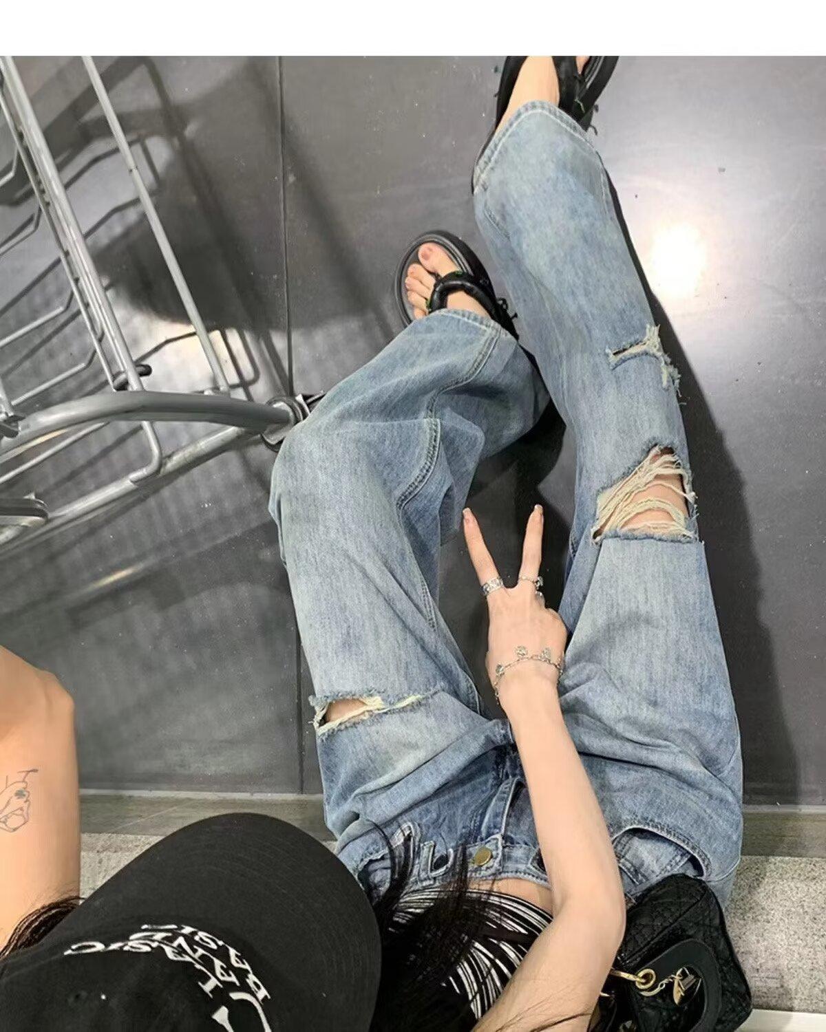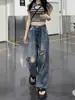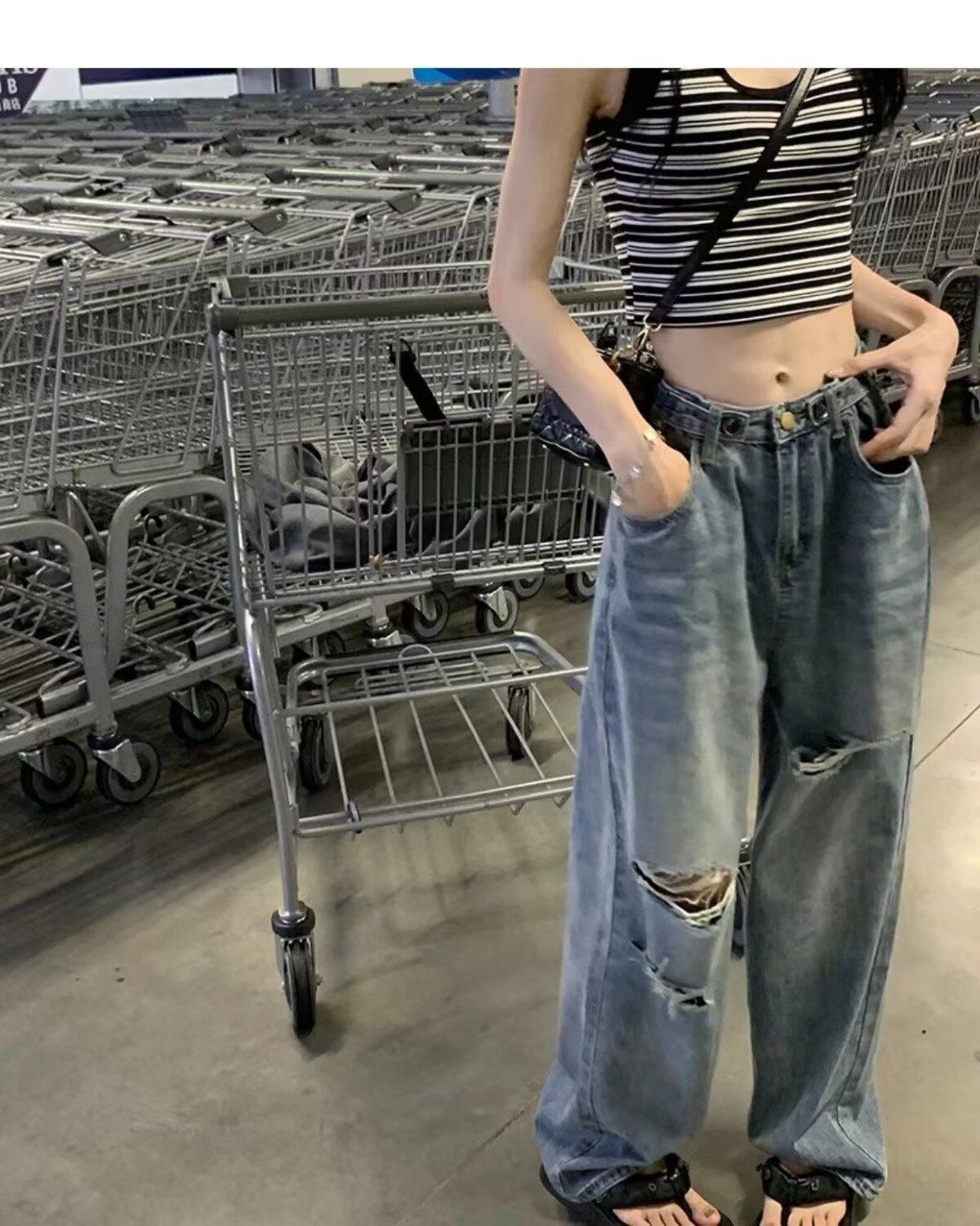 Pantalones vaqueros finos rotos para mujer, novedad de verano 2024, pantalones de cintura alta, rectos, holgados y de pierna ancha, estilo Spice Girl
