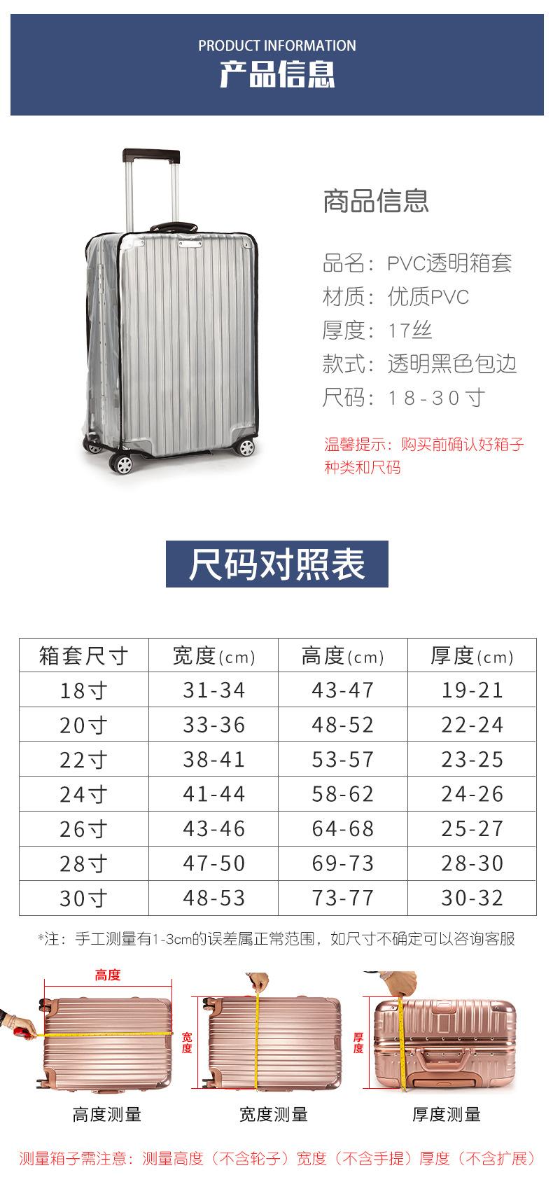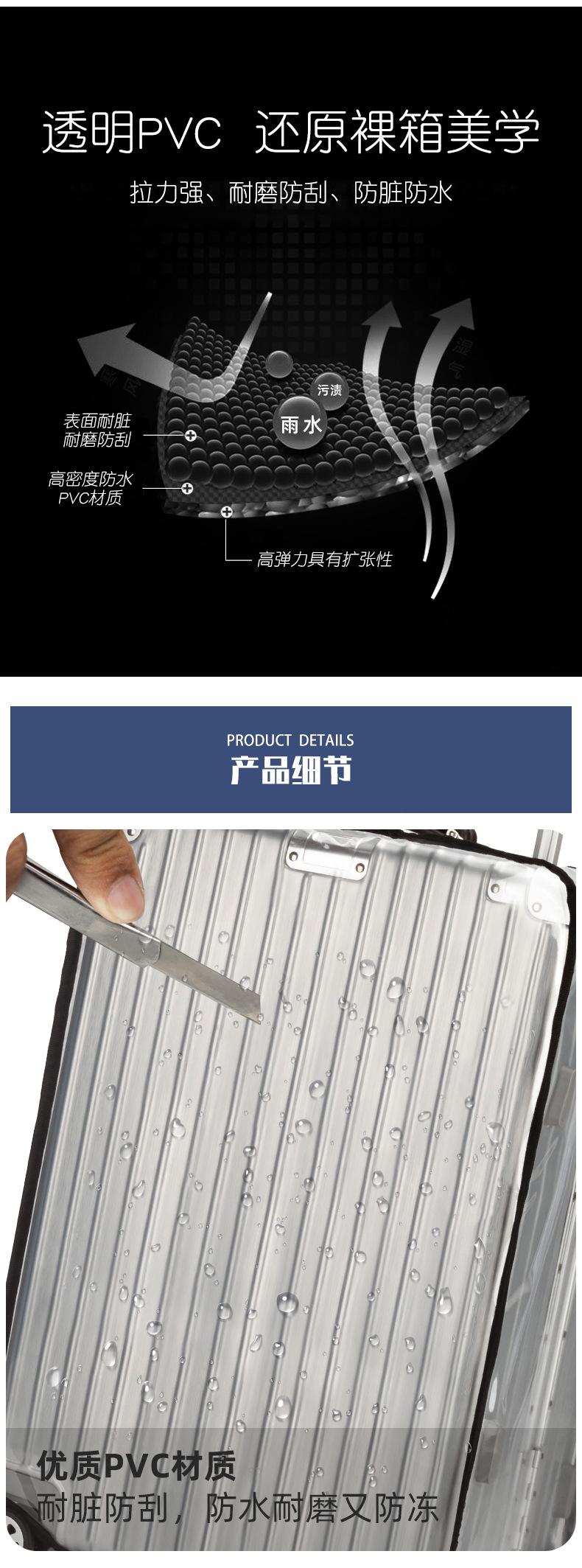 Comercio electrónico transfronterizo 17 borde de seda maleta con ruedas maleta protectora cubierta de PVC transparente maleta antipolvo
