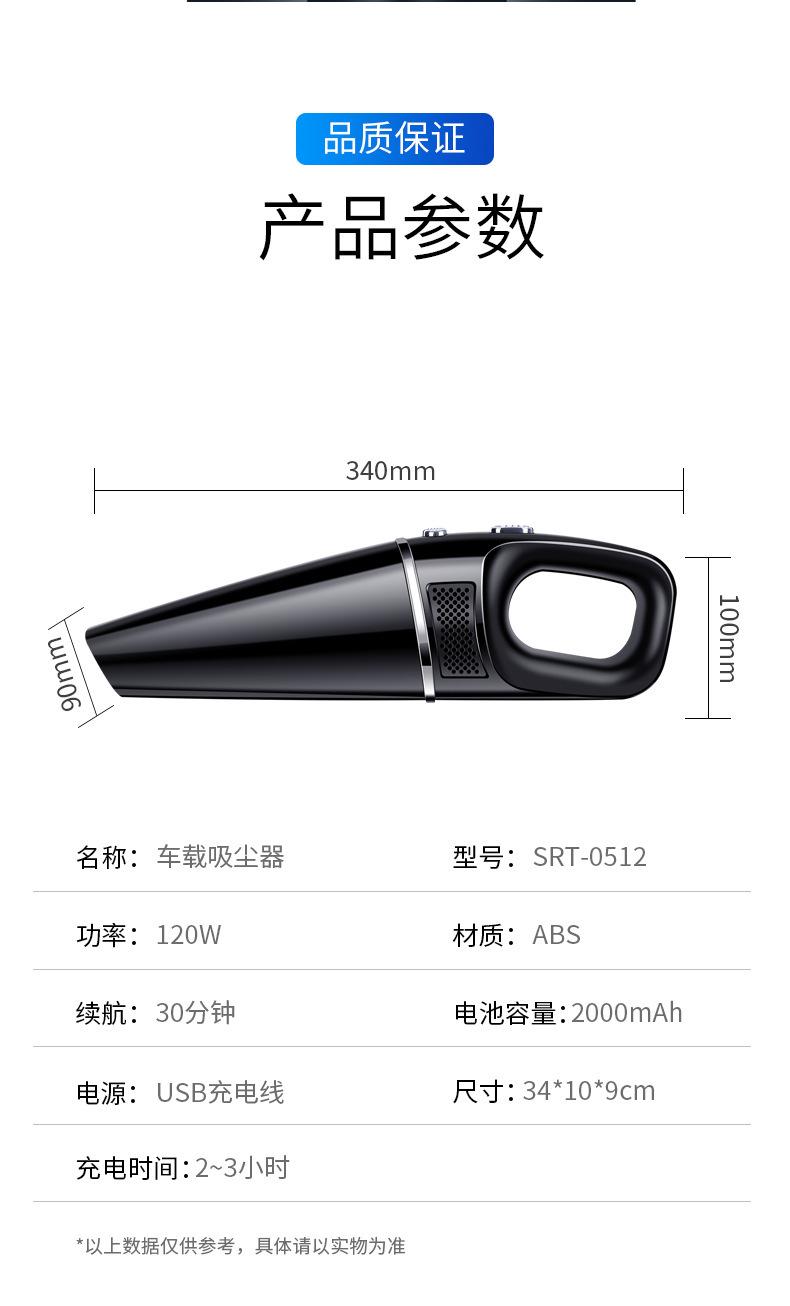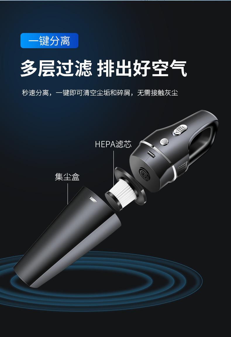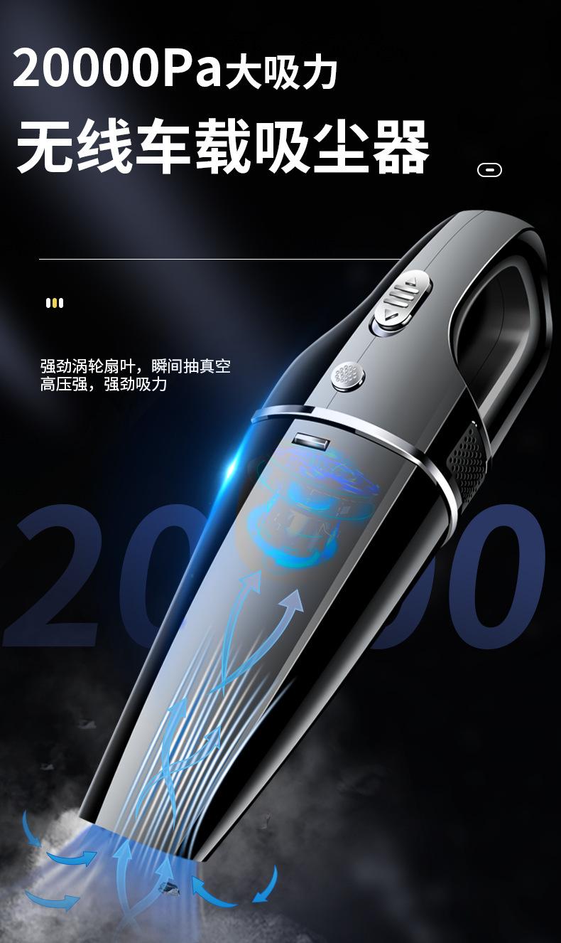 12V car cigarette lighter wired (4.5 meters) 6000pa for car only, USB wireless charging single lithium battery...