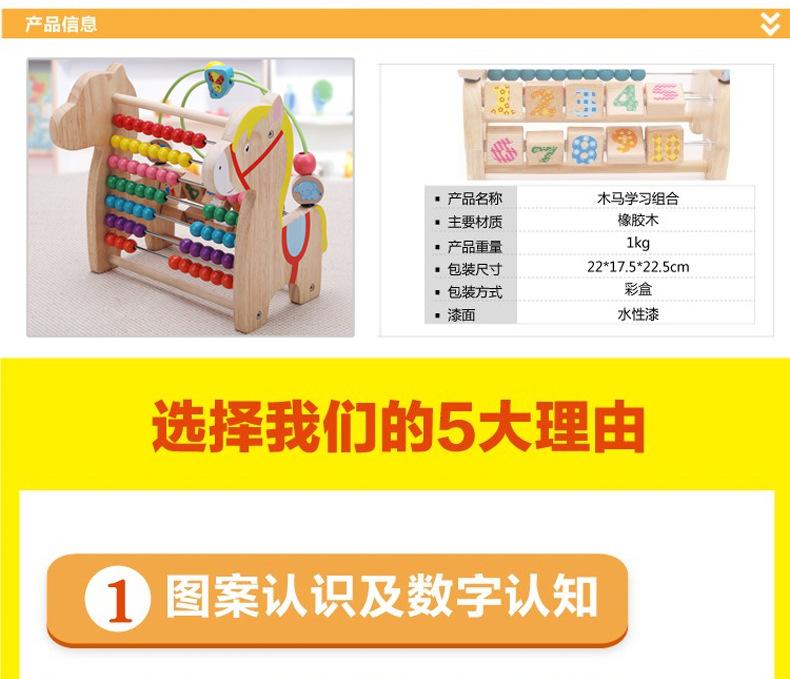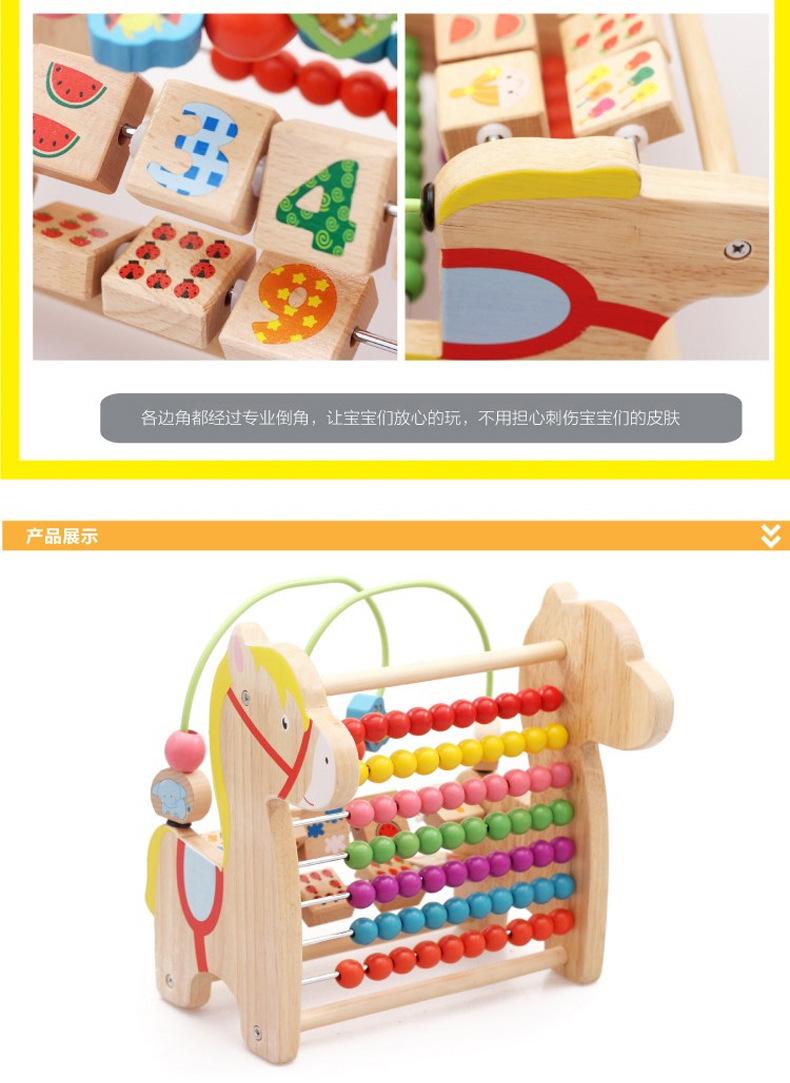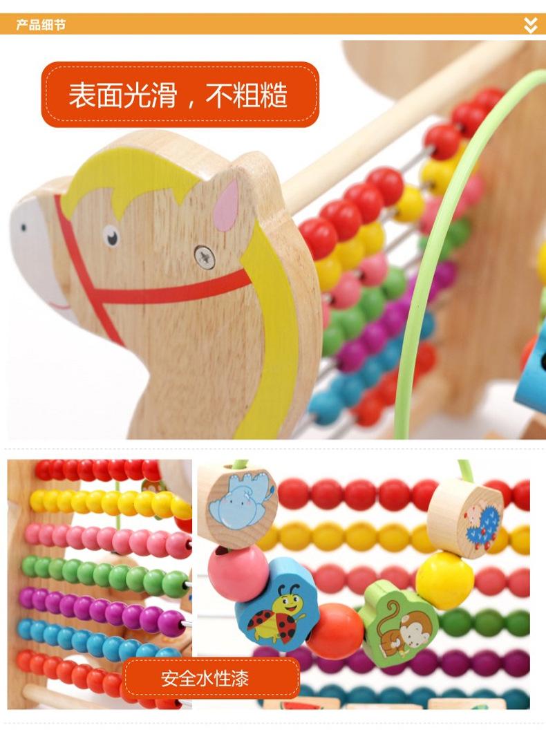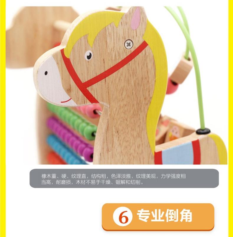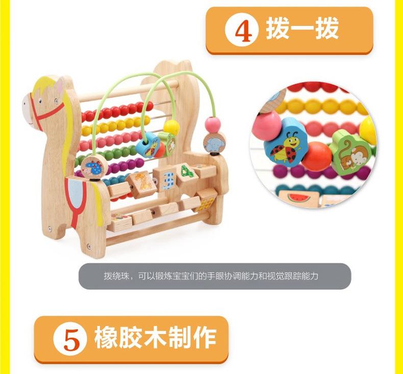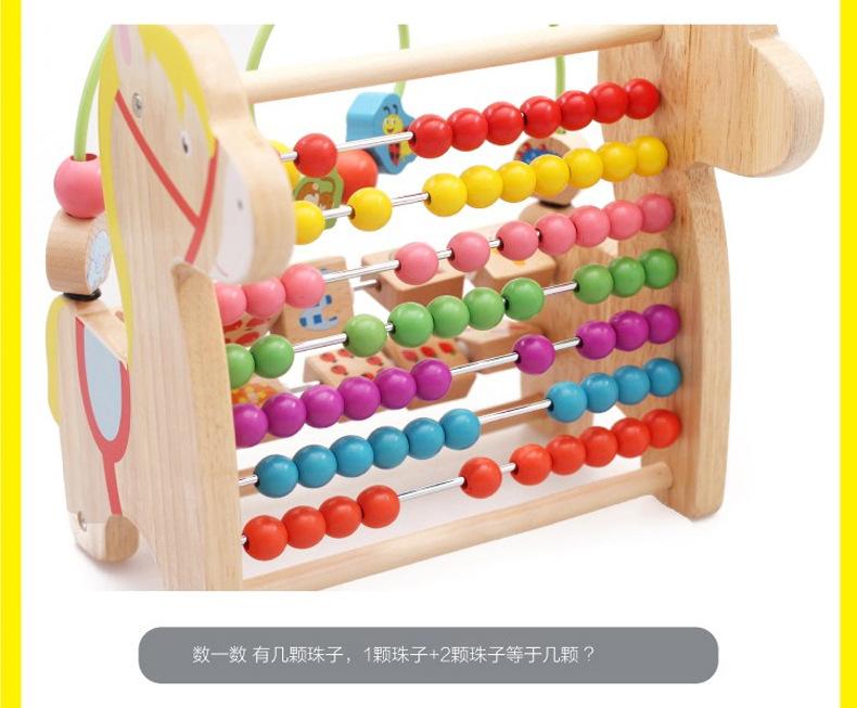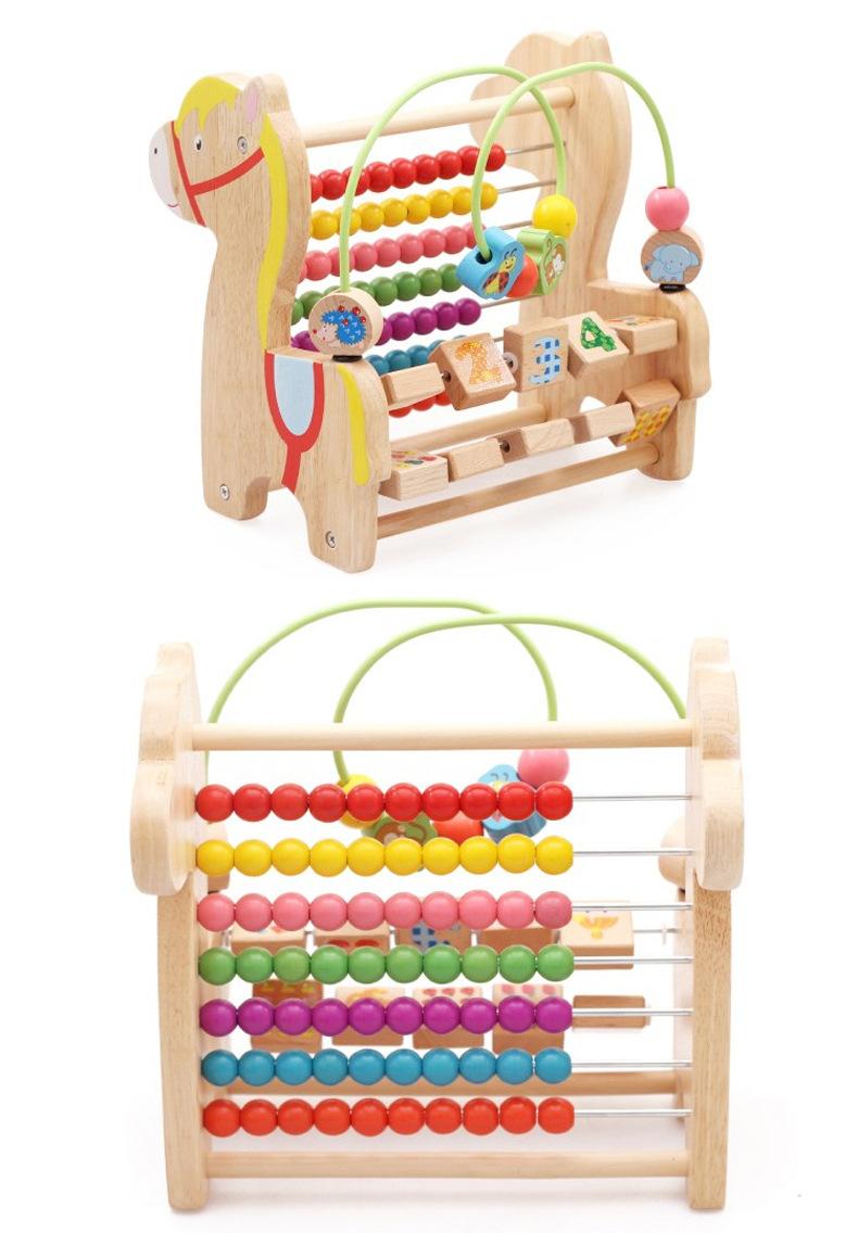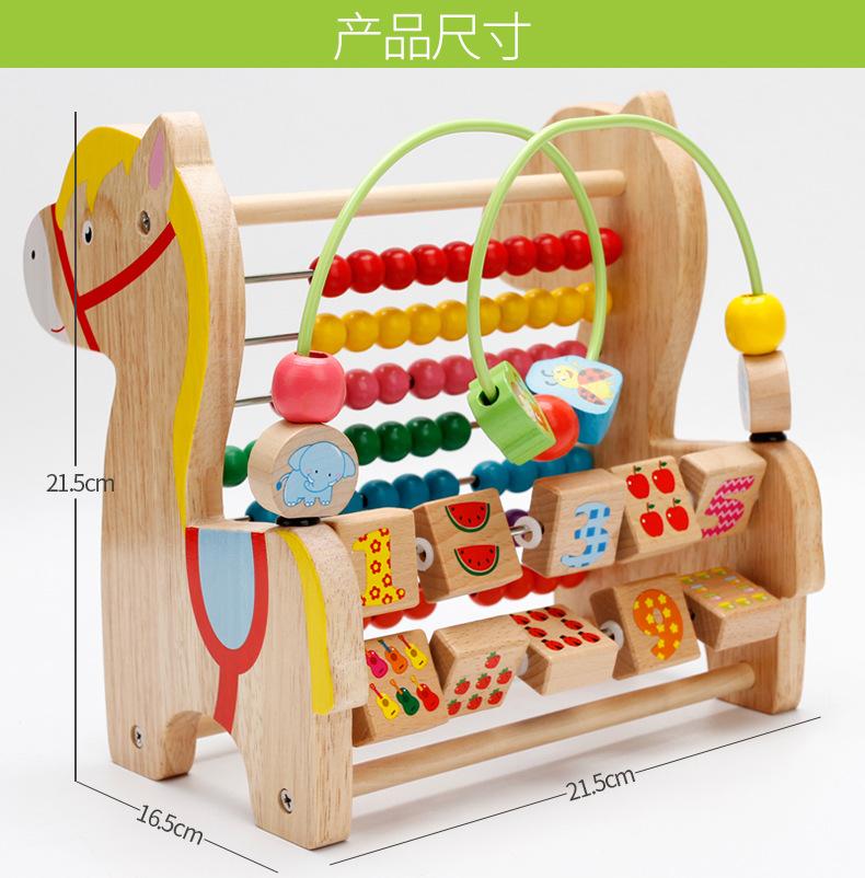 Caballo de Troya de madera multifuncional con cuentas, estante de computación, gran juguete educativo para el desarrollo de la inteligencia infantil.