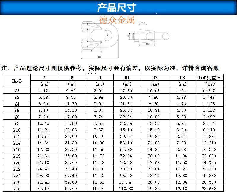 (1) El tamaño del casquillo debe ser adecuado para el grosor del cable de acero. El espacio interior del anillo en U debe ser de 1 a 3 mm mayor que el diámetro del cable de acero. Si el espacio es demasiado grande, será difícil sujetar el cable.