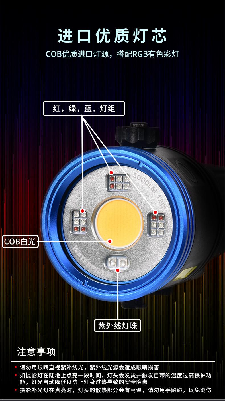 Flash para Fotografía Submarina Transfronteriza Luz de Relleno para Fotografía Submarina Linterna de Luz Fuerte Equipo de Iluminación LED Portátil