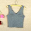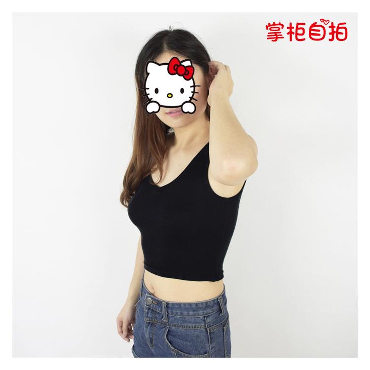 Camisola de Algodón Puro al por Mayor Otoño Nuevo Ajuste Delgado Doble Cuello en V Camiseta Base para Mujer, Corta hasta la Cintura Largo Medio Ropa Interior