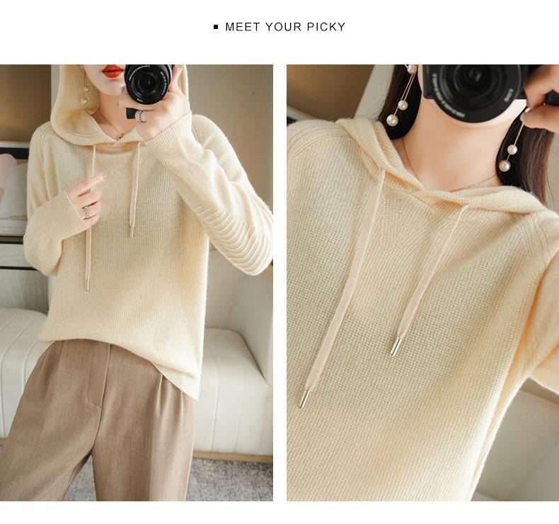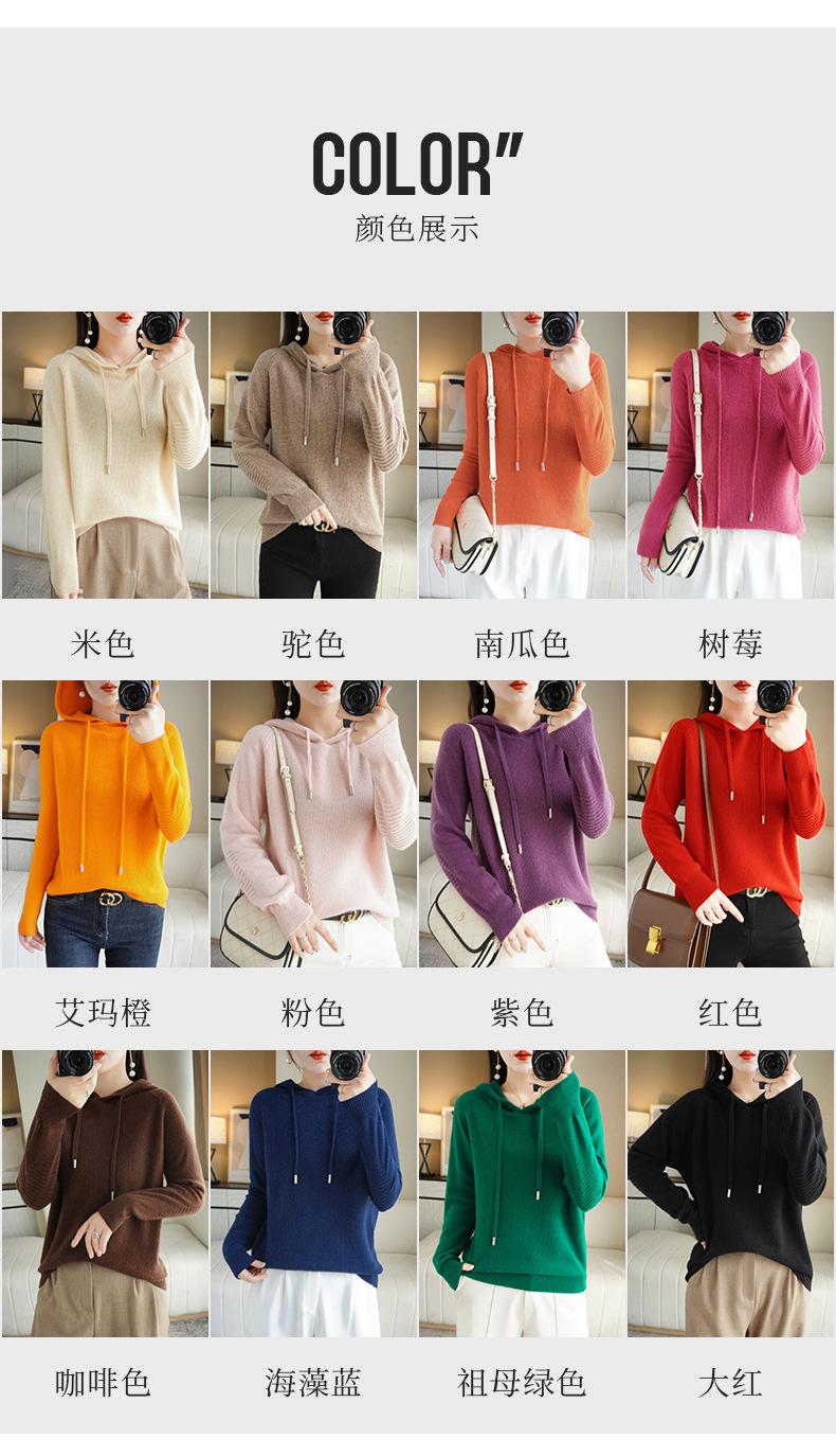 Suéter de otoño 2023 para mujer, sudadera con capucha, abrigo con capucha, suéter de lana, suelto, fábrica, venta al por mayor, generación