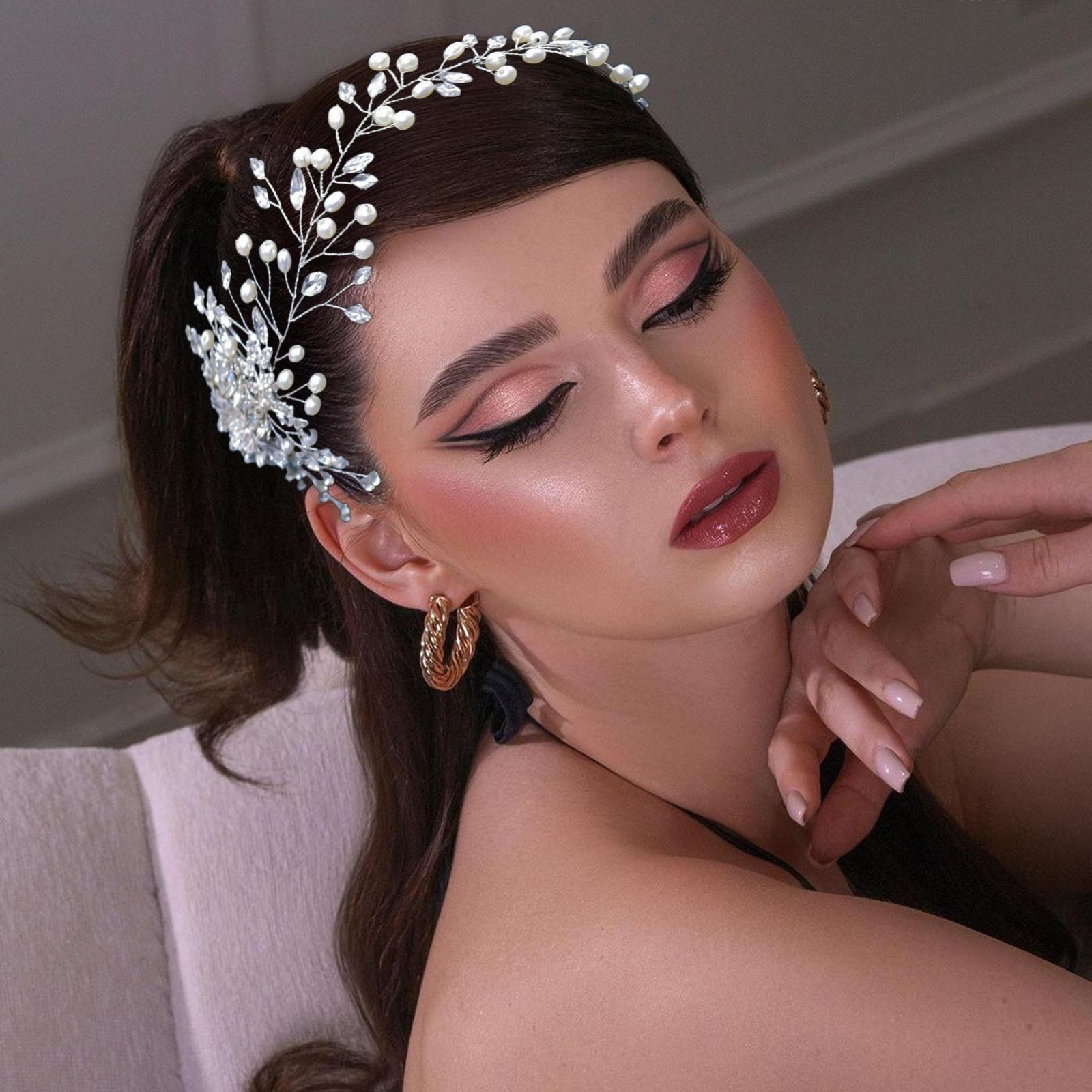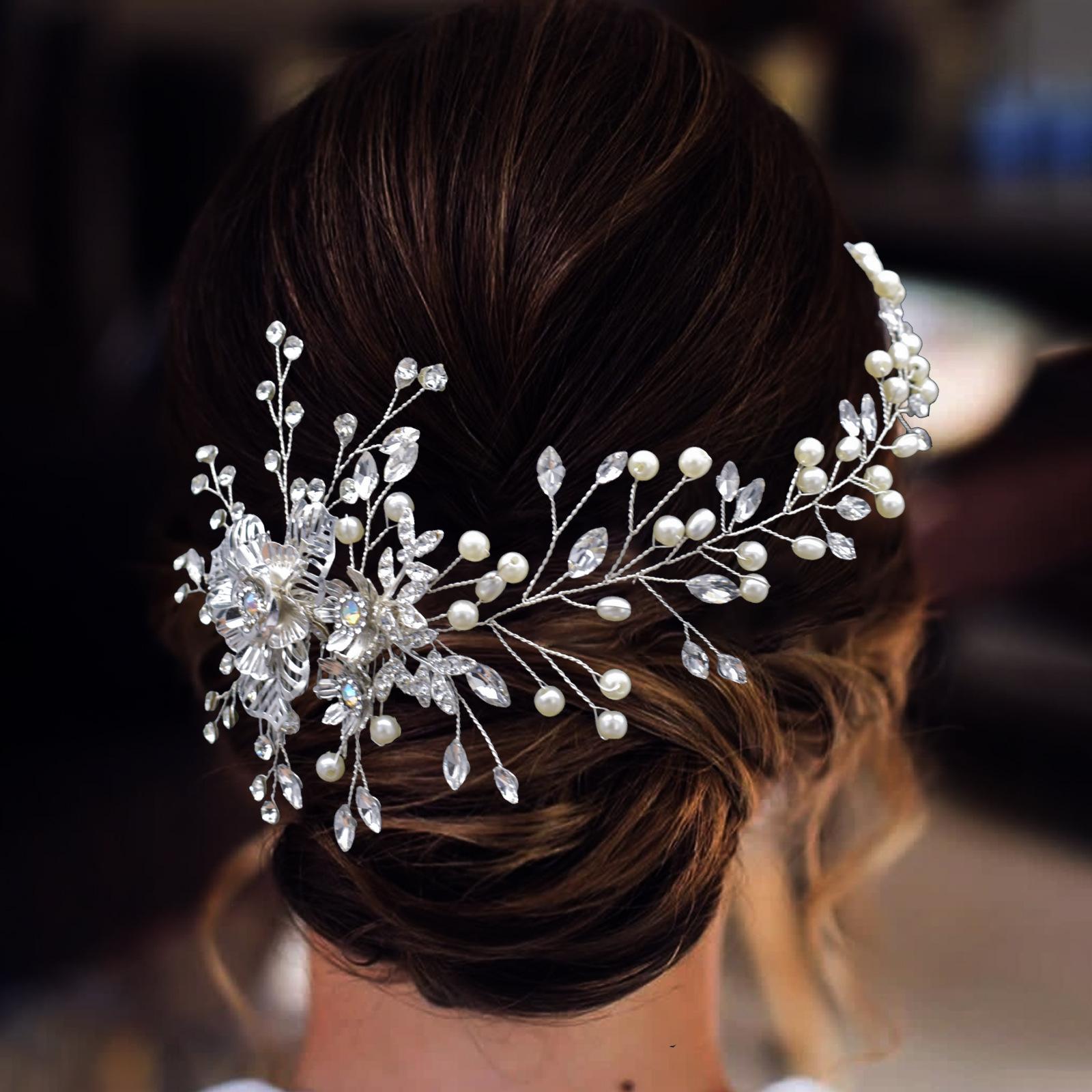 Nueva diadema hecha a mano con forma de recogido, accesorio suave para el cabello con diamantes de imitación, flor de perla, peineta para fotos de boda DZ106