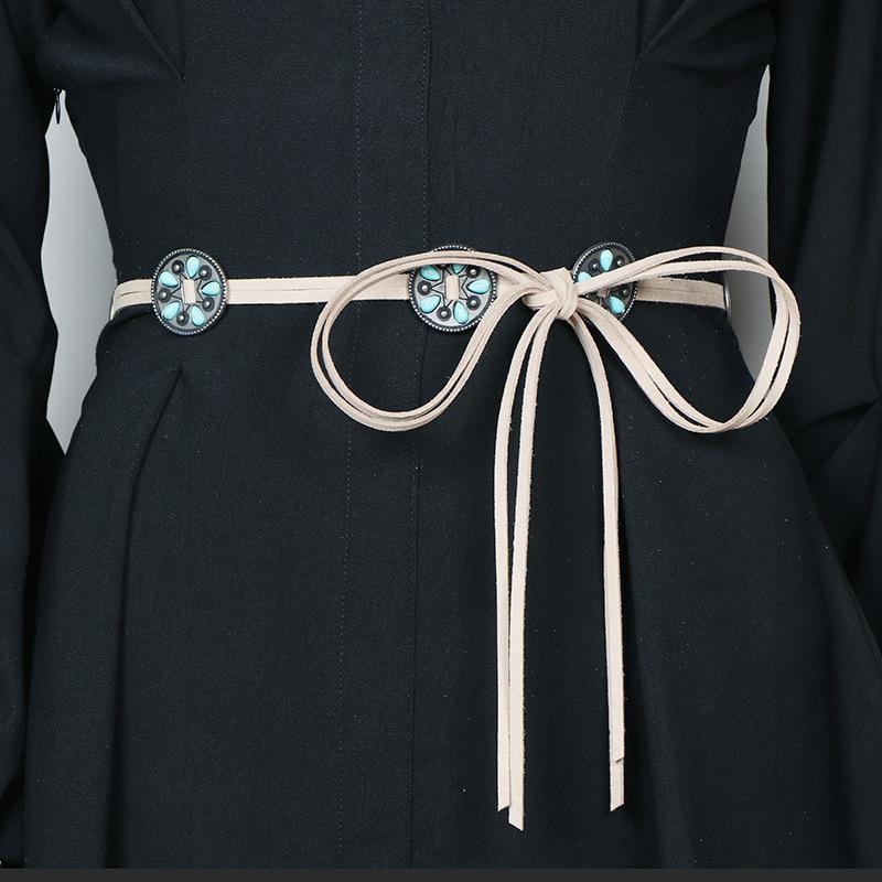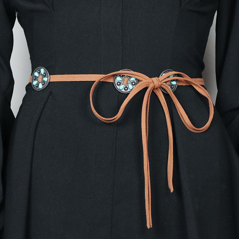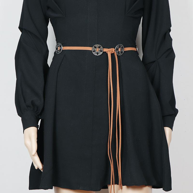 Cinturón decorativo de metal para mujer con falda, cinturón tejido a la cintura, estilo retro, con borlas que combinan con todo.