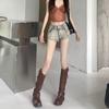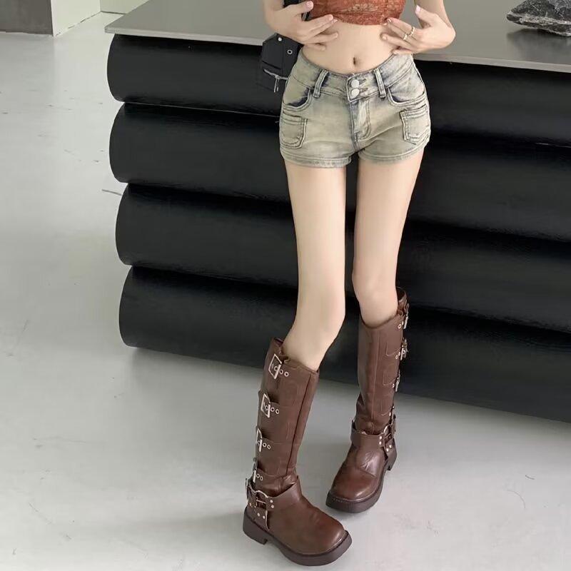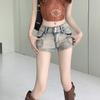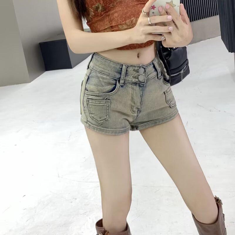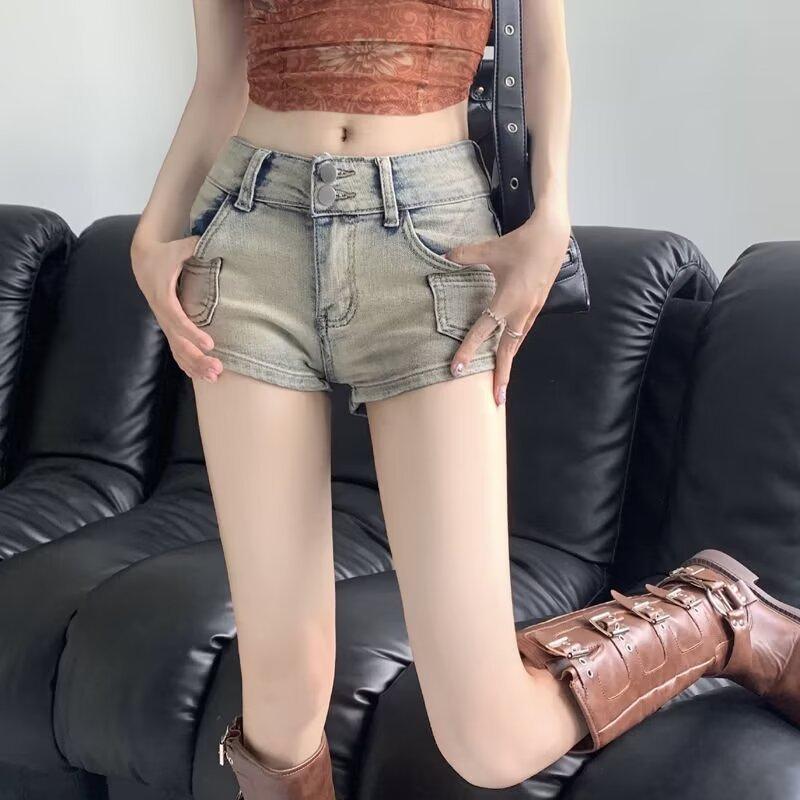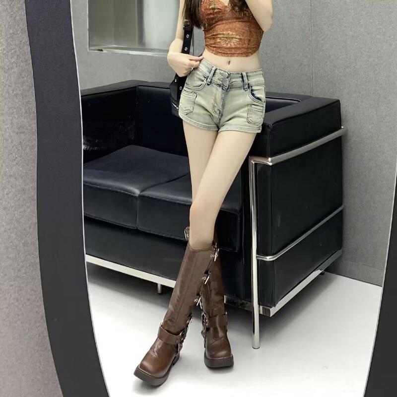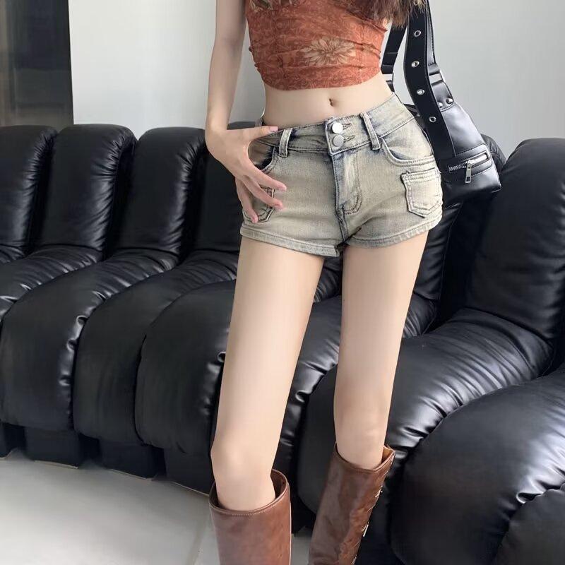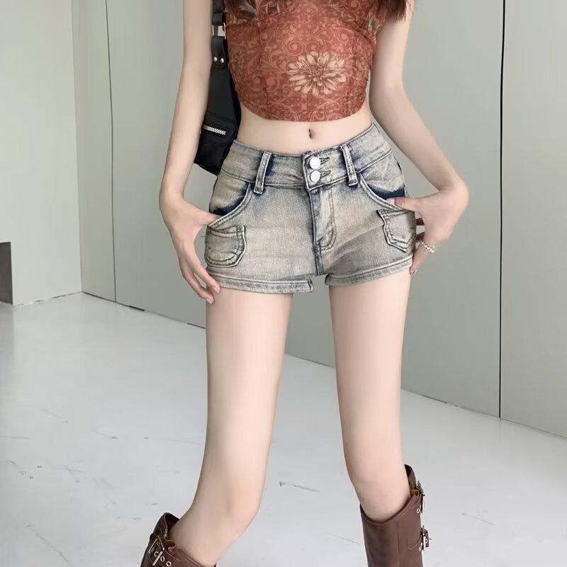 Pantalones cortos vaqueros retro elásticos para mujer, ajustados, de verano, con pierna recta y pierna ancha.