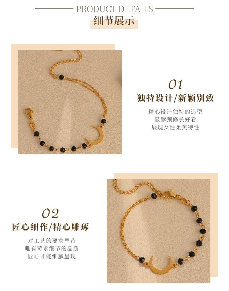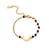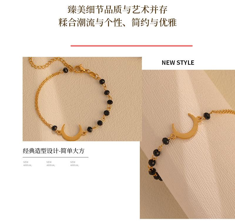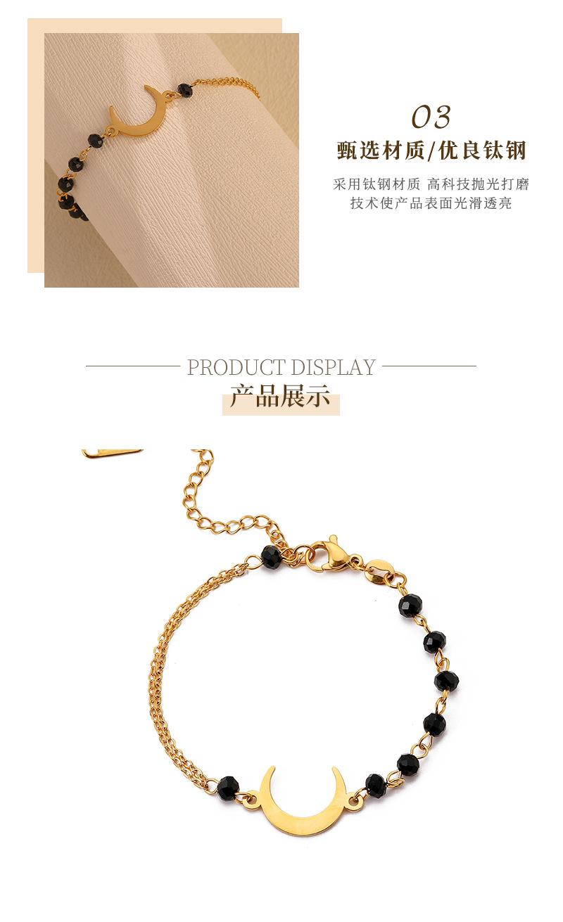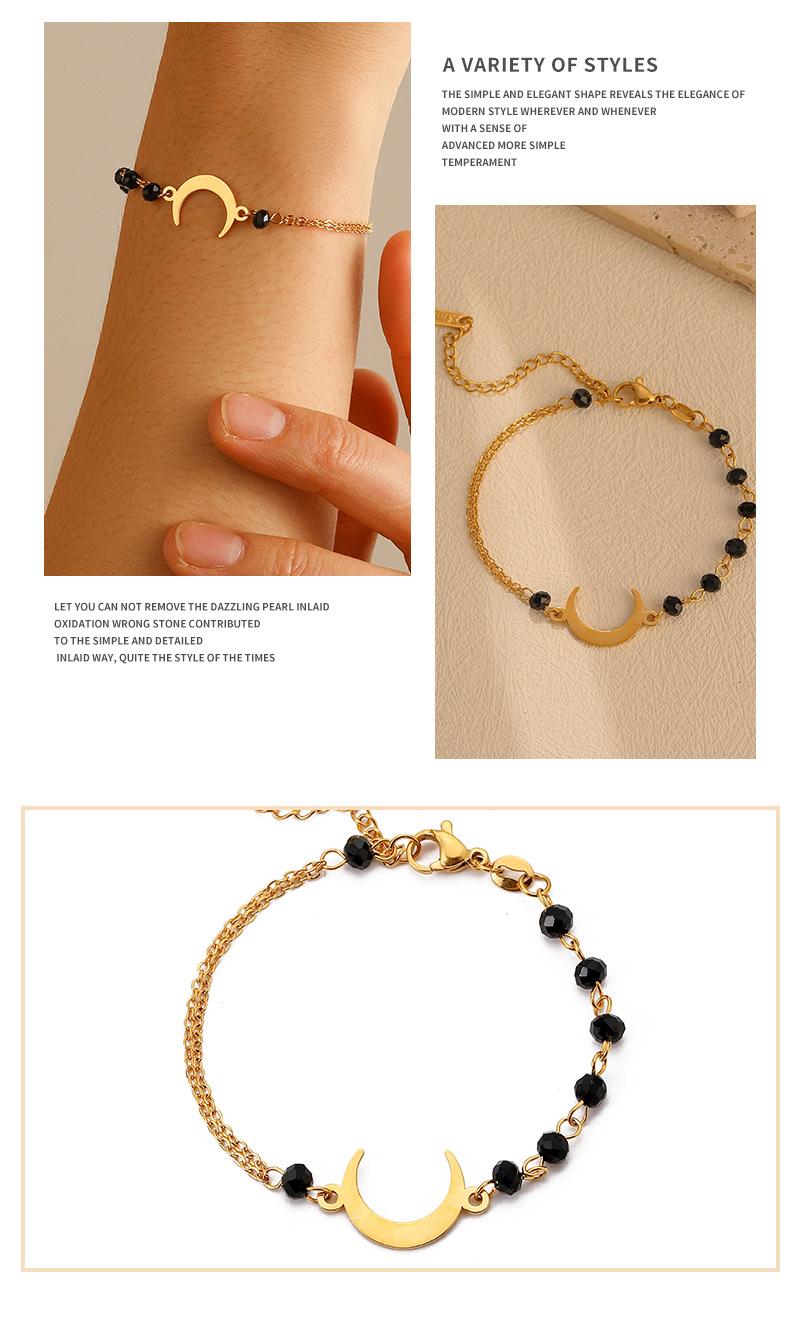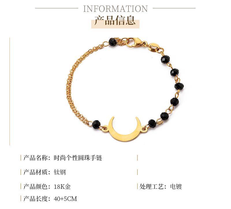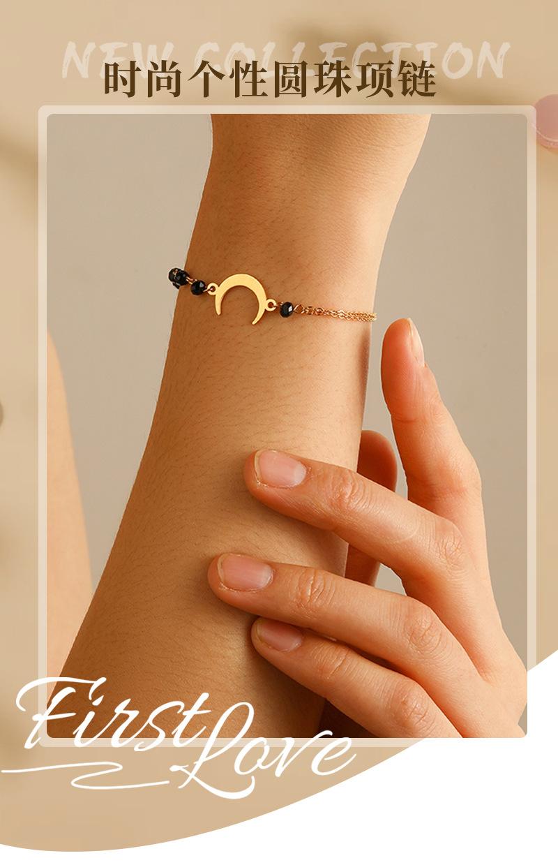 Pulsera de Luna de Cuentas Negras de Lujo Ligero Simple de Moda Europea y Americana para Mujer, Personalidad, Diseño Nicho, Sensación, Acero Titanio, Color Inalterable