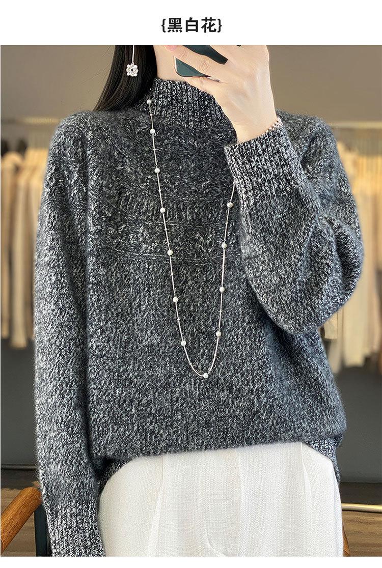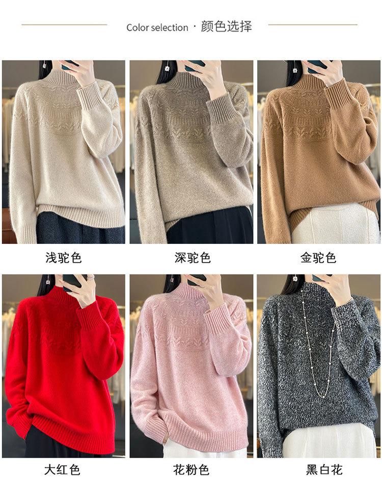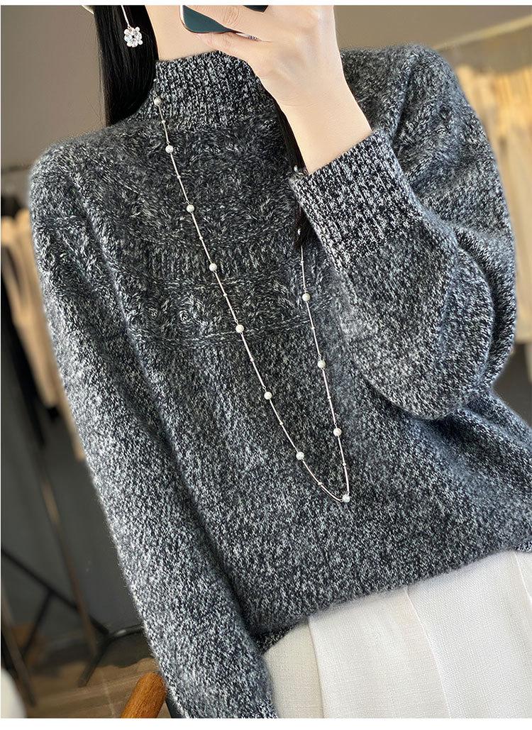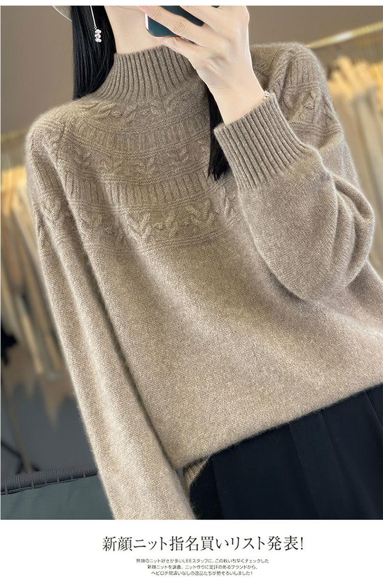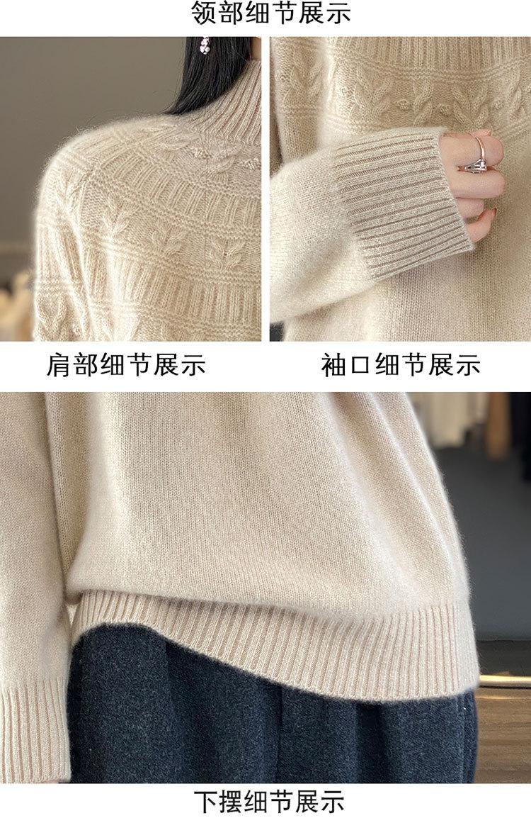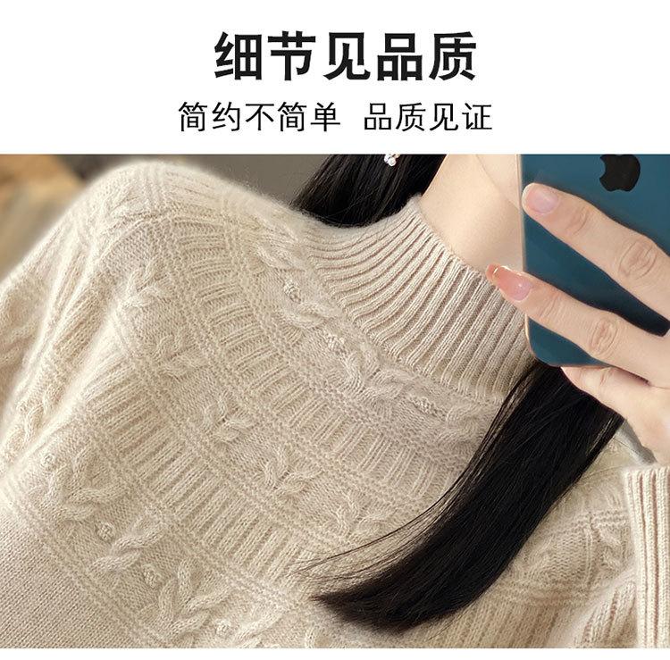Suéter 100% de lana pura para mujer, suéter de punto grueso con cuello alto y media manga, suéter de cachemira de hilo de puntos de nuevo estilo para otoño e invierno.