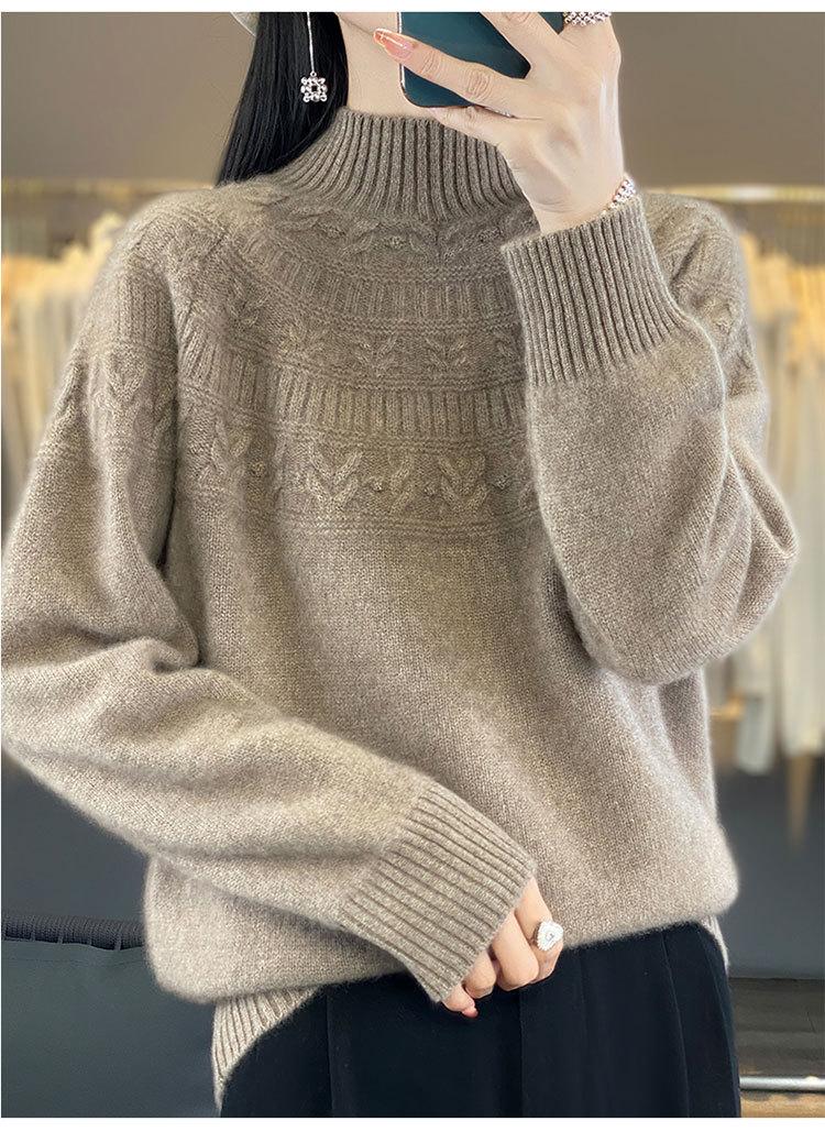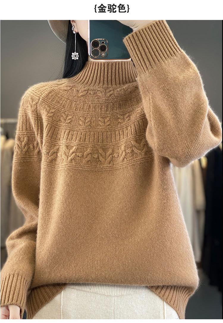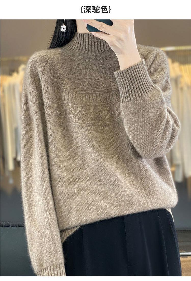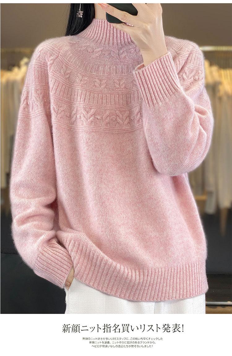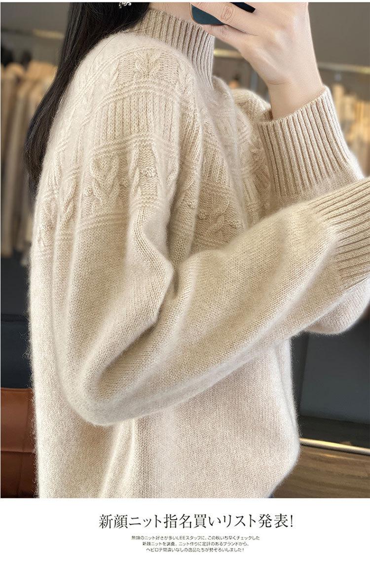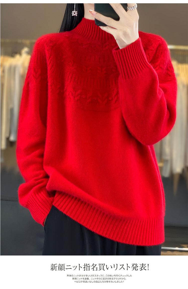 Suéter 100% de lana pura para mujer, suéter de punto grueso con cuello alto y media manga, suéter de cachemira de hilo de puntos de nuevo estilo para otoño e invierno.