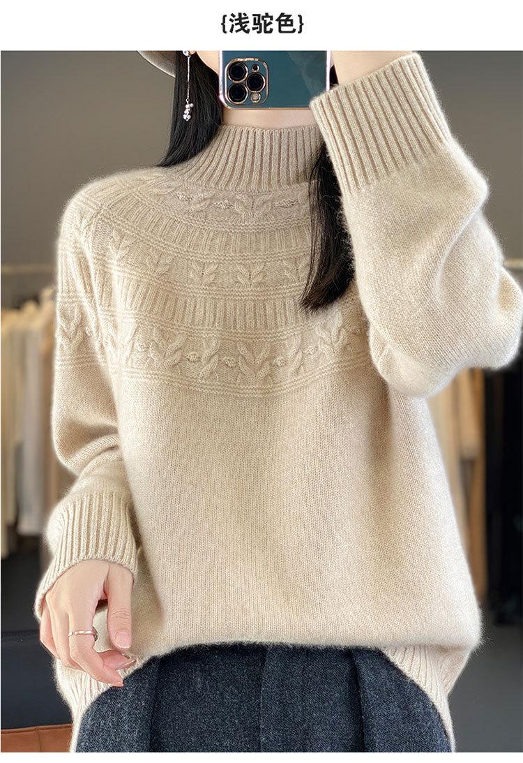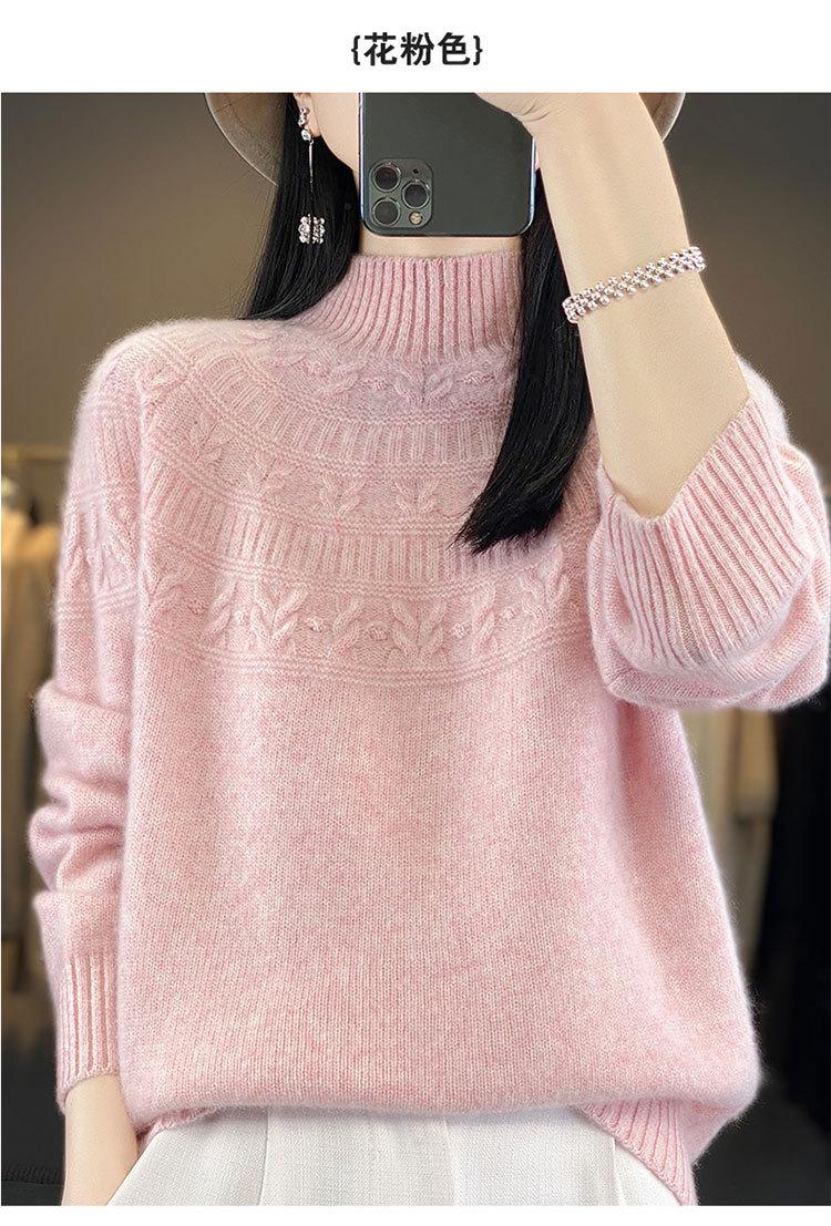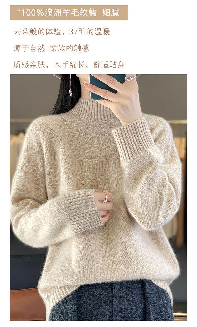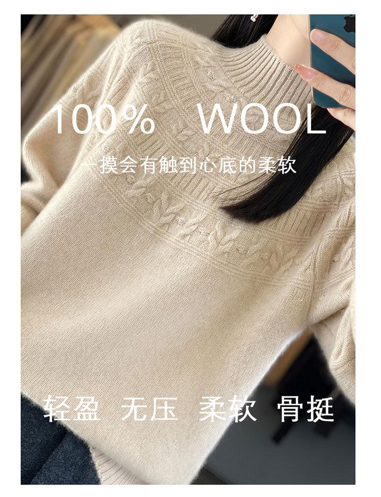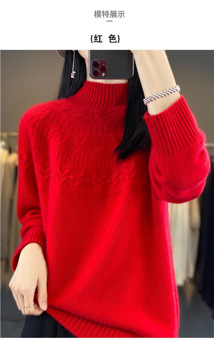 Suéter 100% de lana pura para mujer, suéter de punto grueso con cuello alto y media manga, suéter de cachemira de hilo de puntos de nuevo estilo para otoño e invierno.