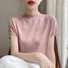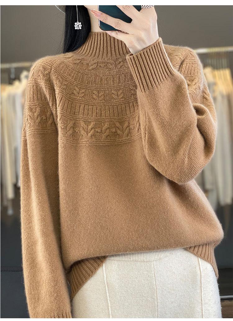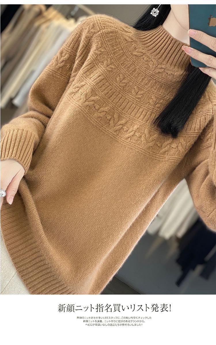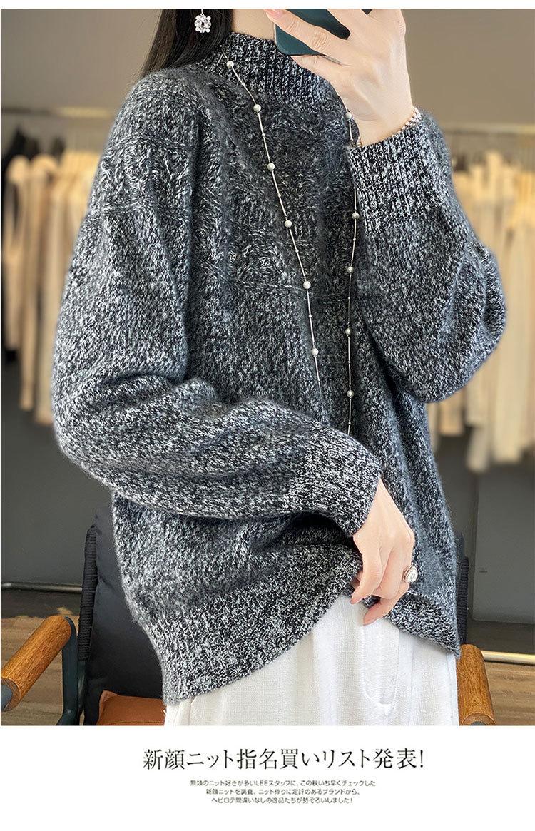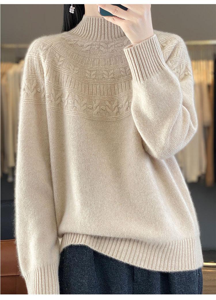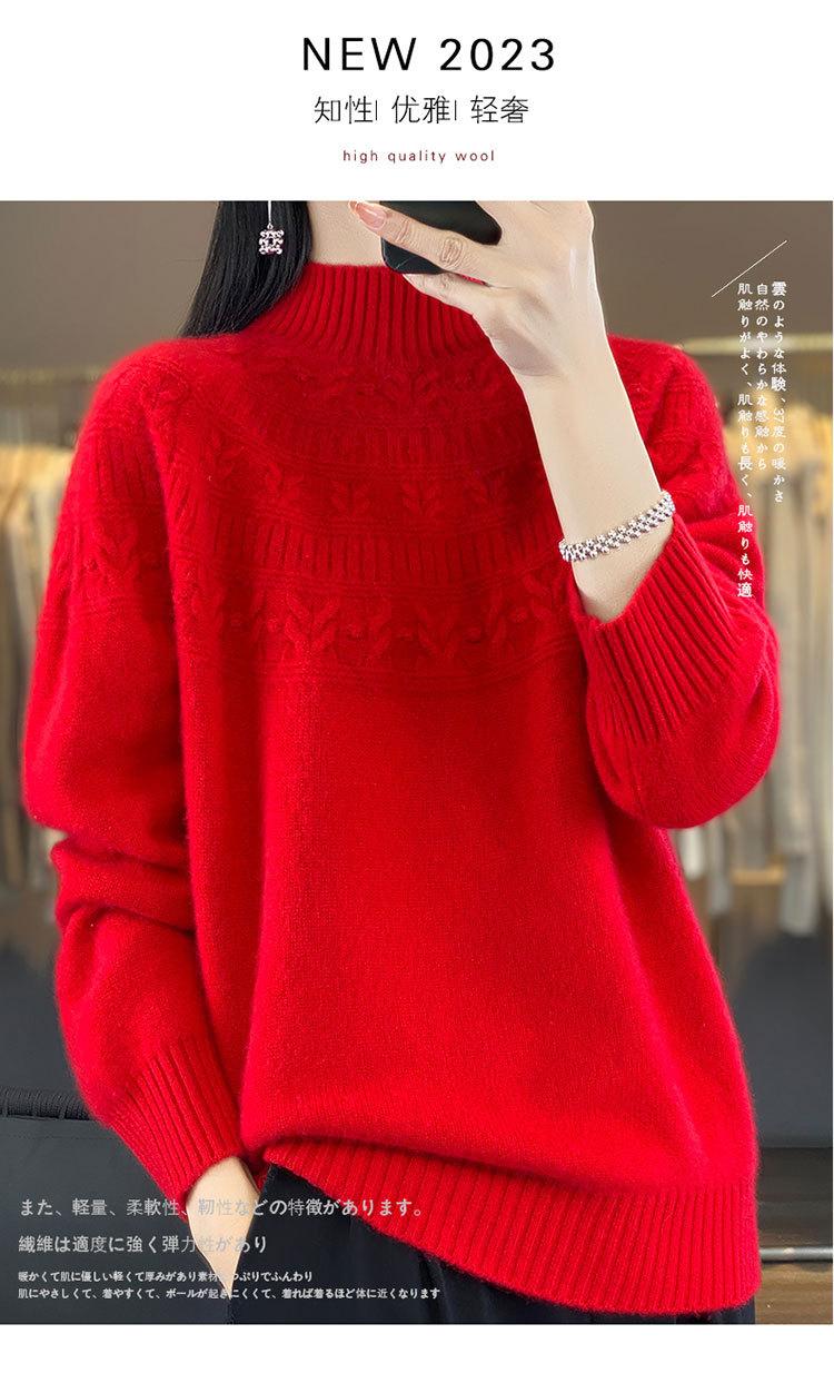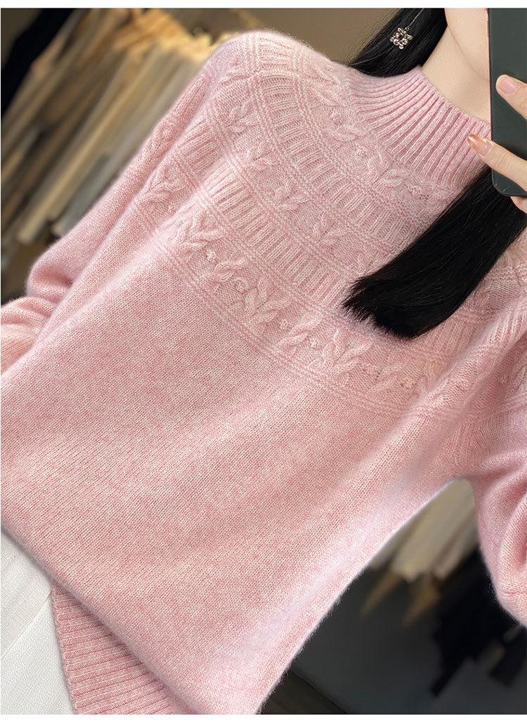 Suéter 100% de lana pura para mujer, suéter de punto grueso con cuello alto y media manga, suéter de cachemira de hilo de puntos de nuevo estilo para otoño e invierno.
