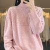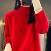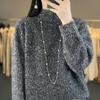 2024 Nuevo suéter de cuello alto medio de punto de lana pura para mujer, color sólido básico, simple, elegante, combinable, suave, Nuo