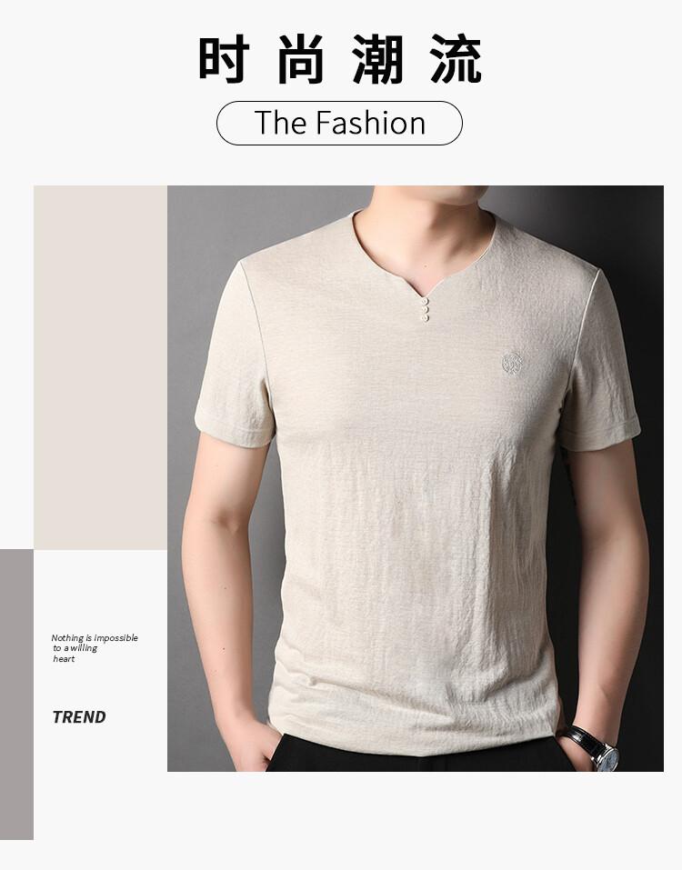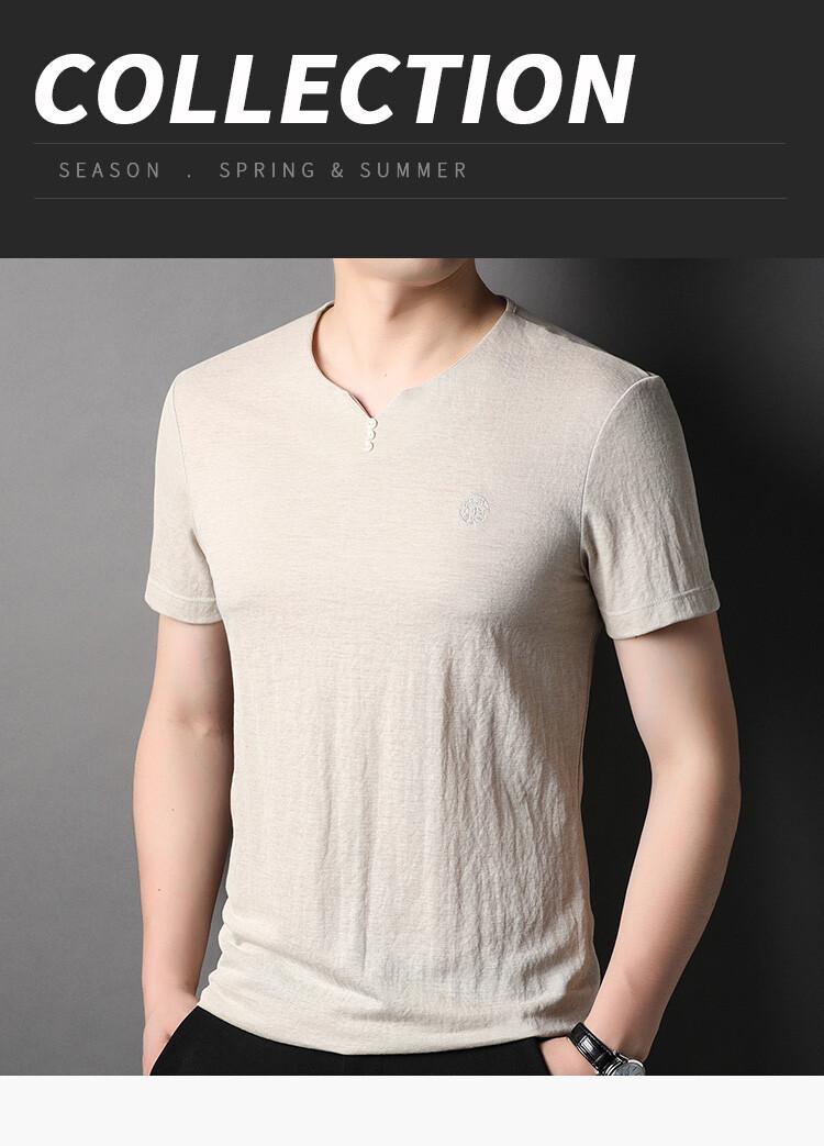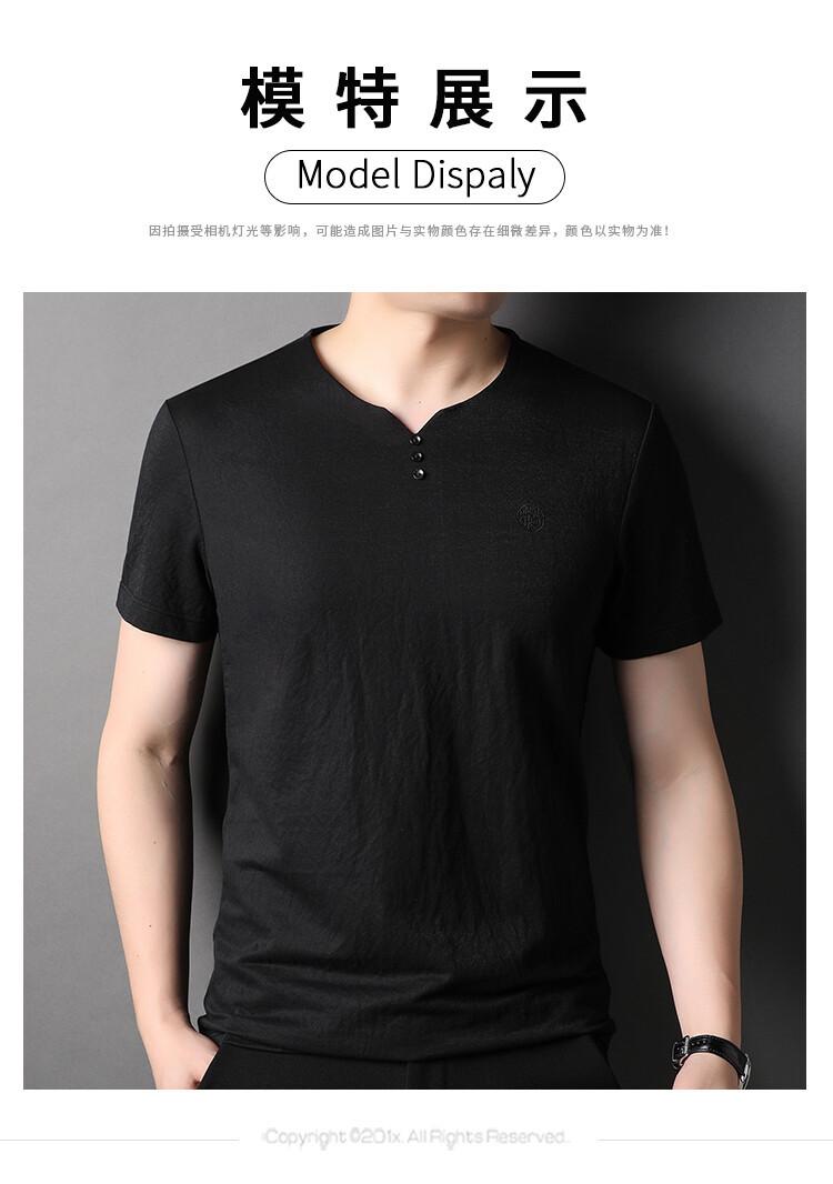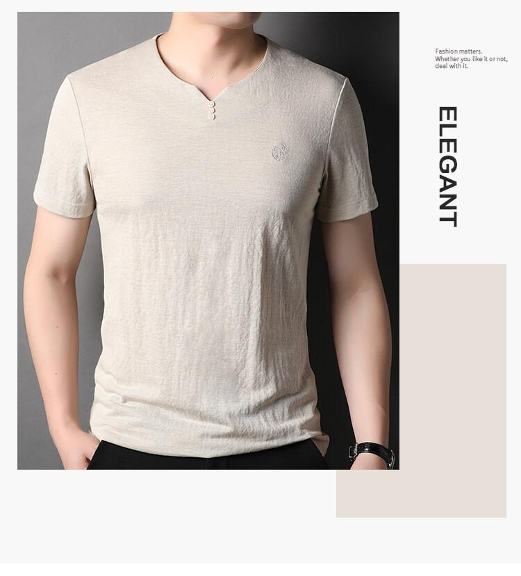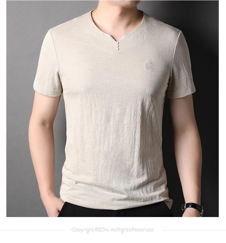 Verano Nueva Camiseta de Manga Corta para Hombre Casual Camiseta Básica Algodón Lino Delgada Mediana Edad Moda Cuello Redondo Moderna Ropa de Hombre