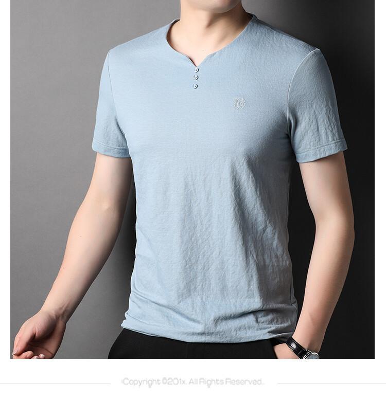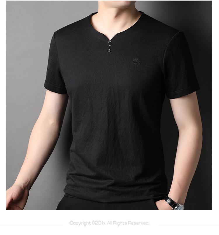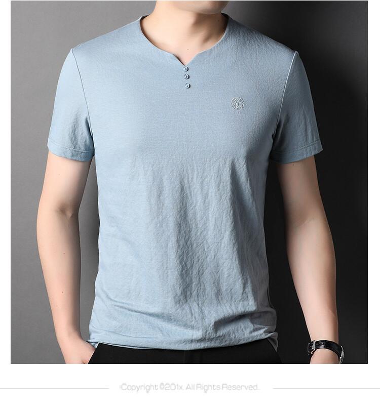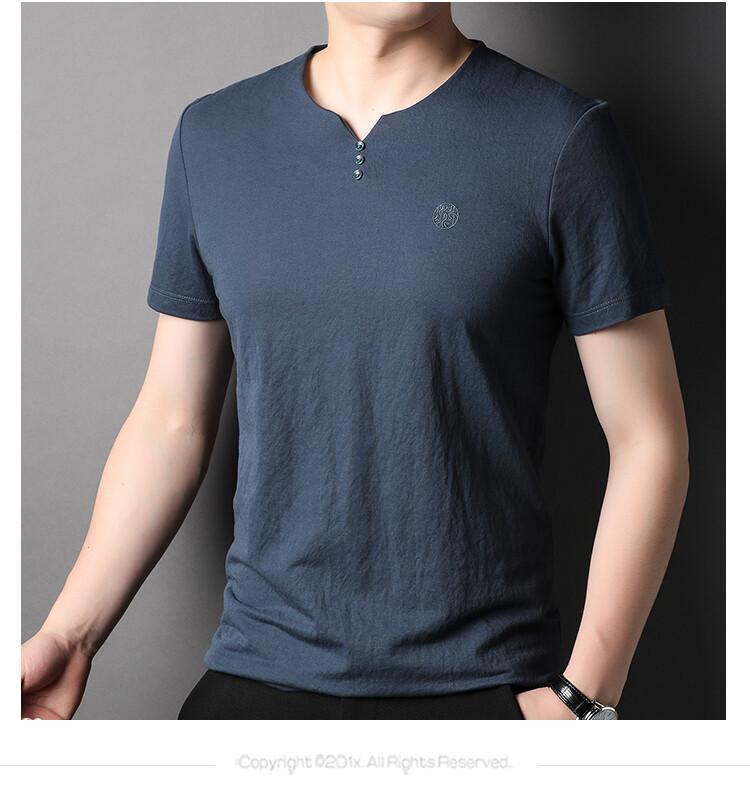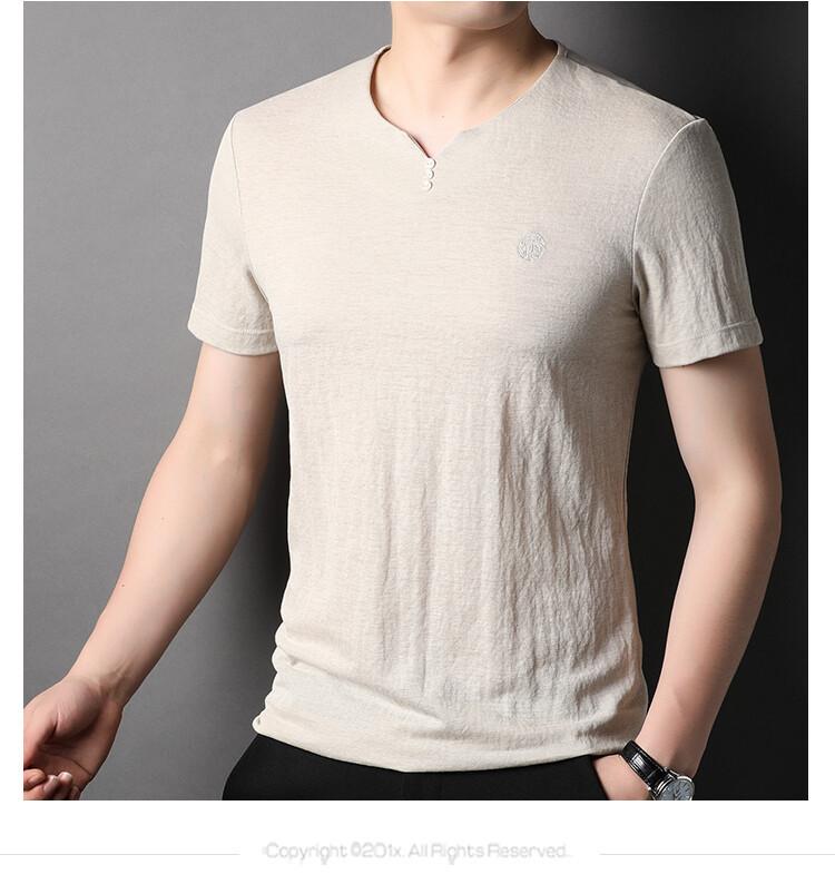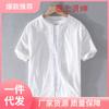 Verano Nueva Camiseta de Manga Corta para Hombre Casual Camiseta Básica Algodón Lino Delgada Mediana Edad Moda Cuello Redondo Moderna Ropa de Hombre
