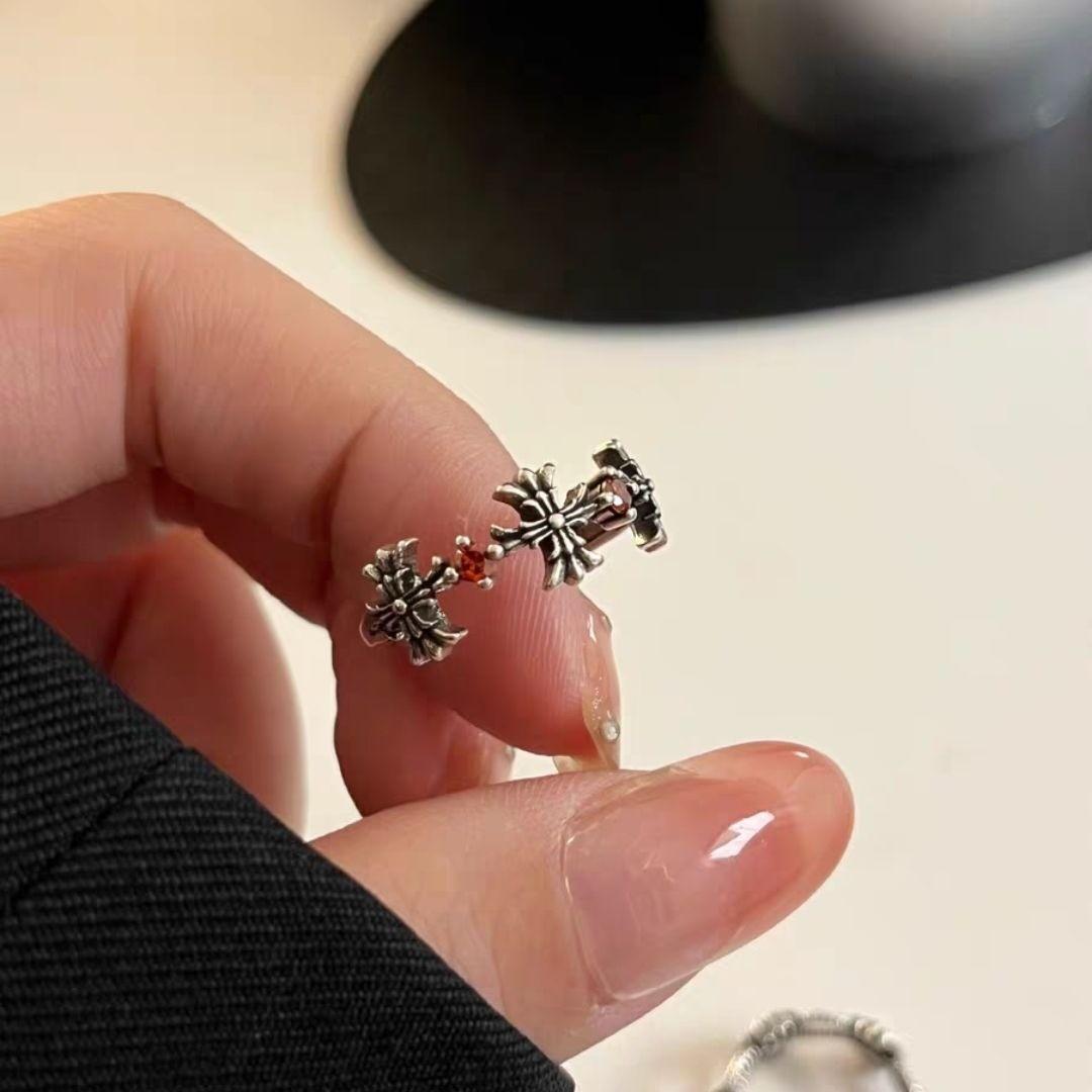 Anillo abierto con cruz desgastada de estilo francés para mujer, diseño de nicho, anillo multiestilo distintivo, 396