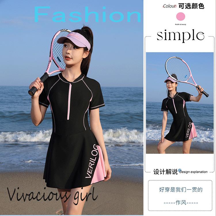 Traje de Baño para Mujer Especial para Piscina Estilo Falda de Una Pieza MM Conservador Cubre Vientre Delgado Traje de Baño para Mujer Deportivo Nuevo Estilo