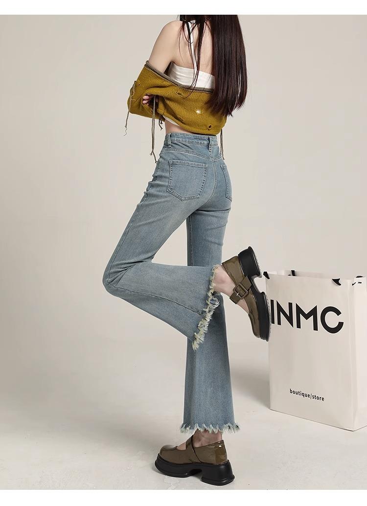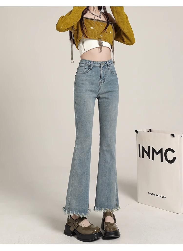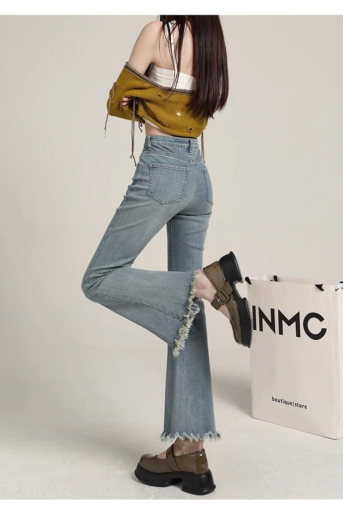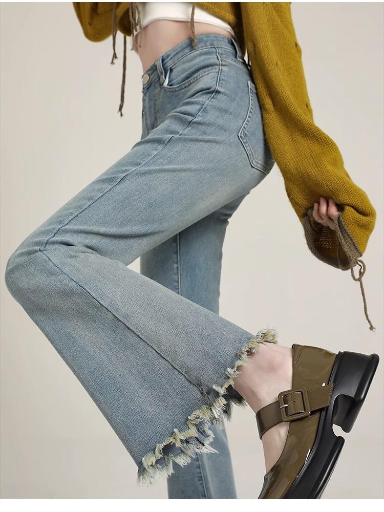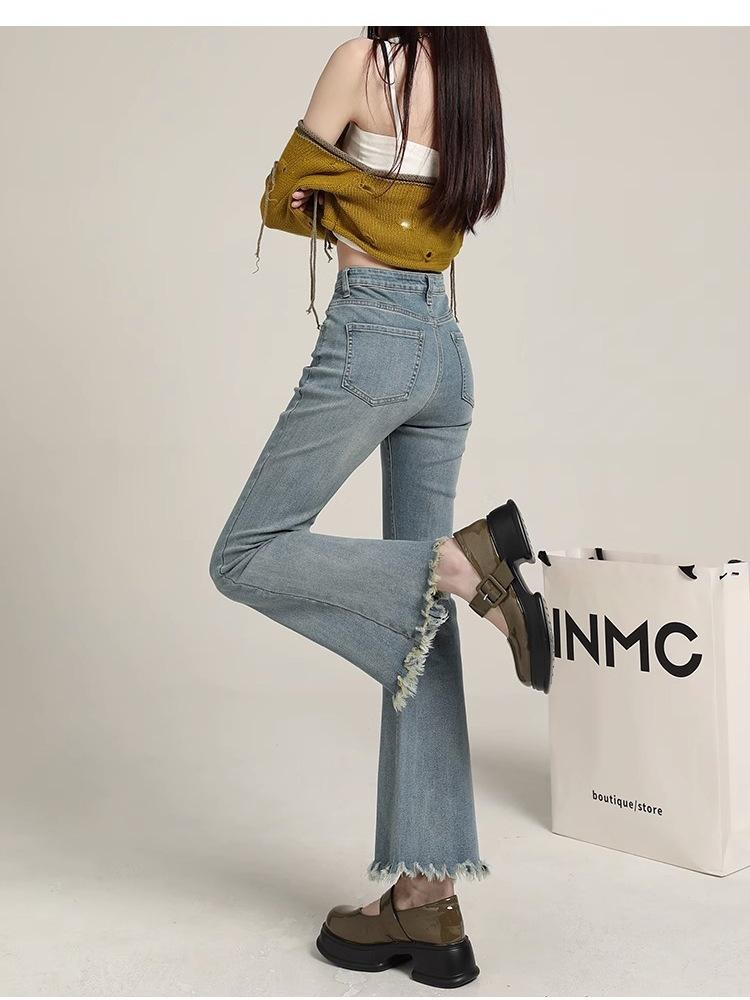 Pantalones vaqueros con borlas en forma de pera y microblading para mujer, de primavera y otoño, de cintura alta, ajustados, elásticos, adelgazantes, para chicas gorditas.