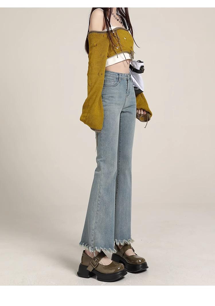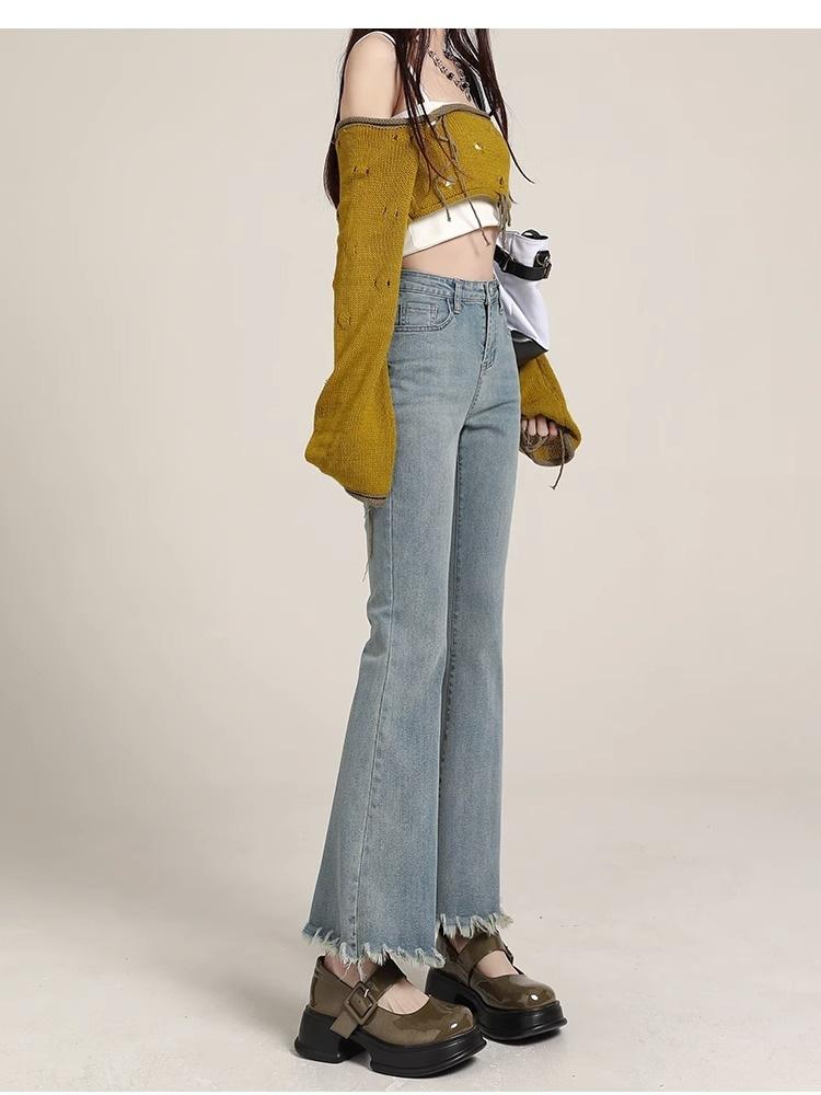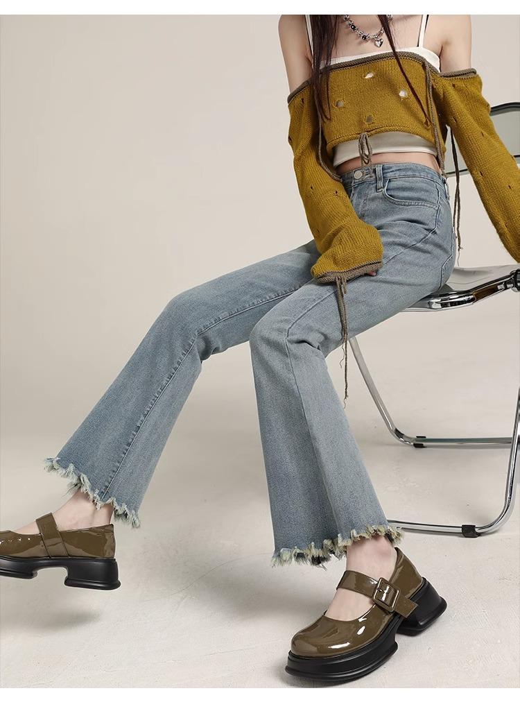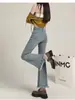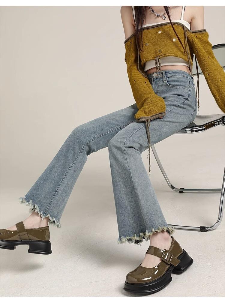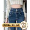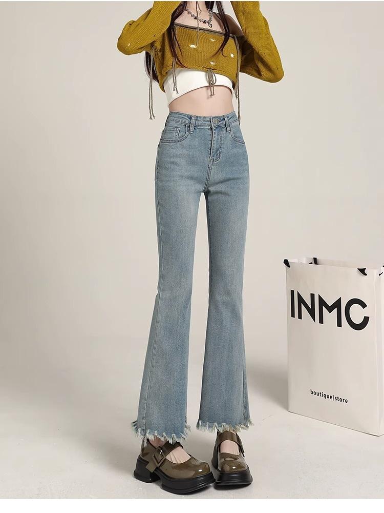 Pantalones vaqueros con borlas en forma de pera y microblading para mujer, de primavera y otoño, de cintura alta, ajustados, elásticos, adelgazantes, para chicas gorditas.