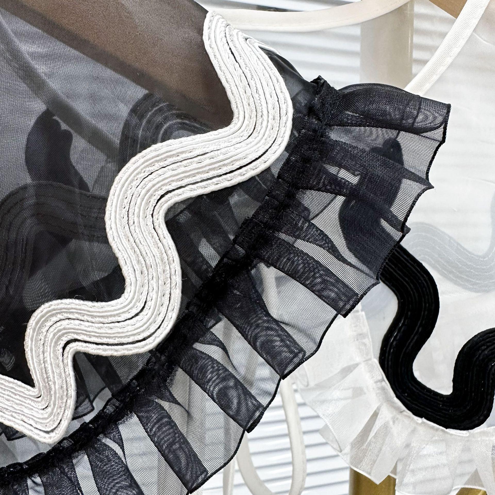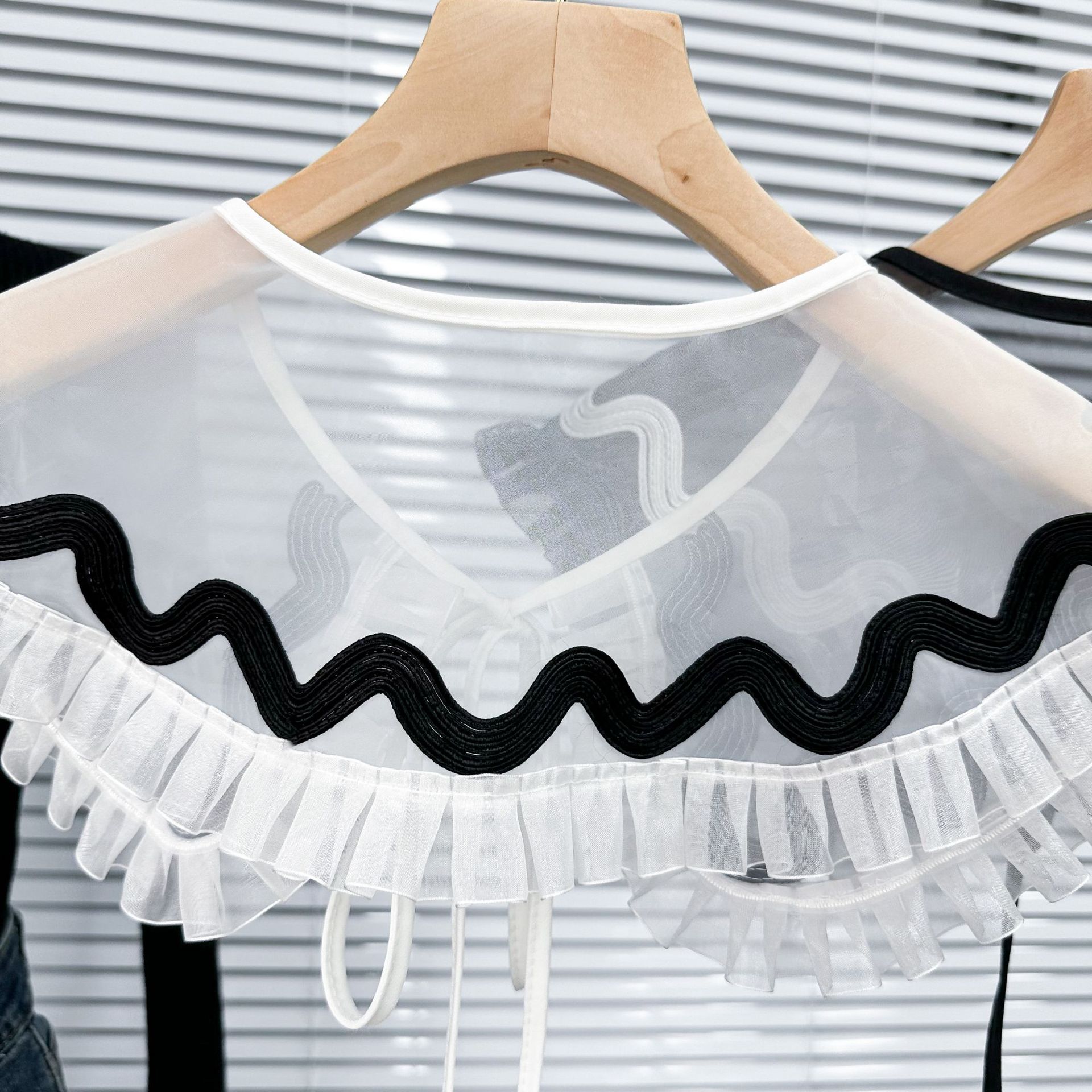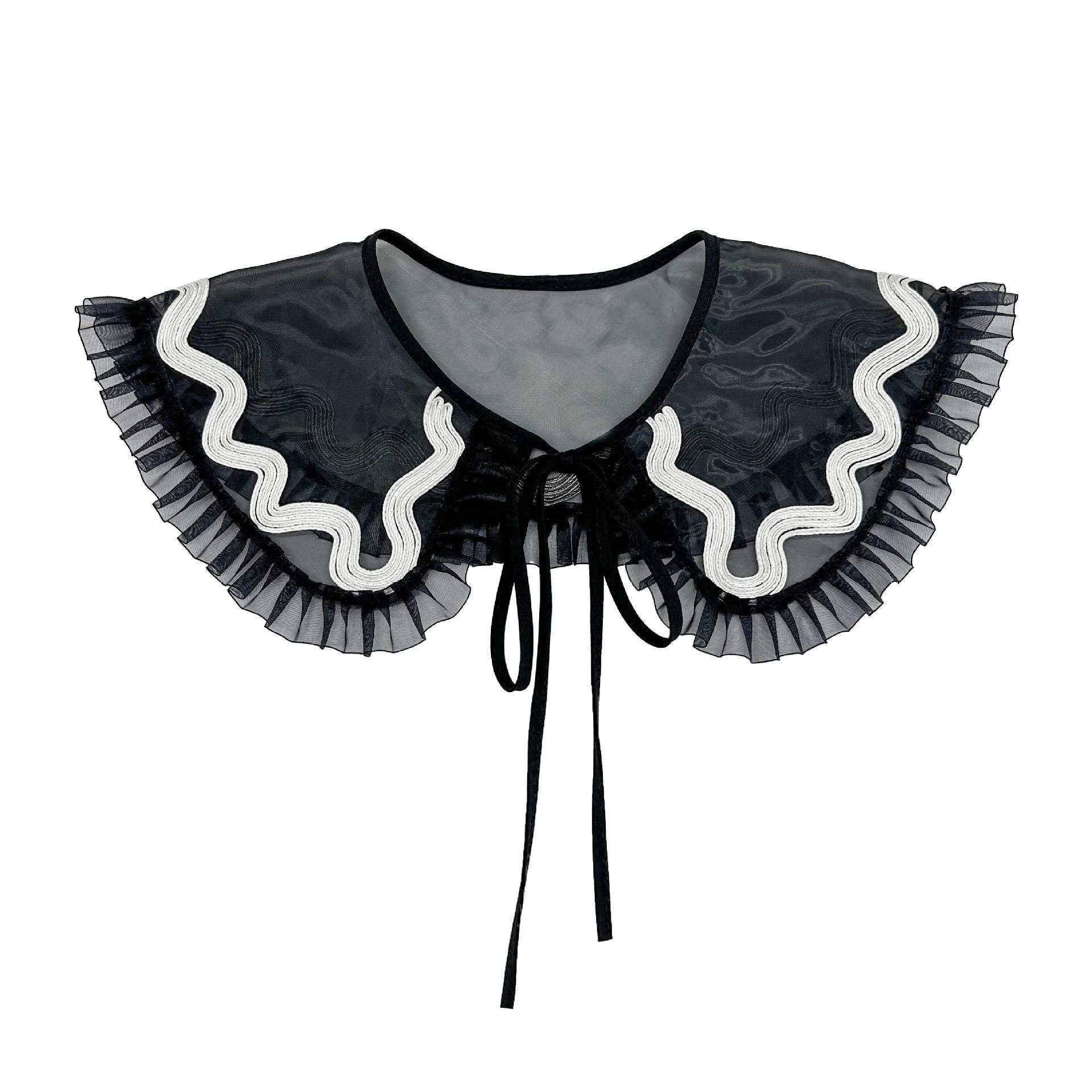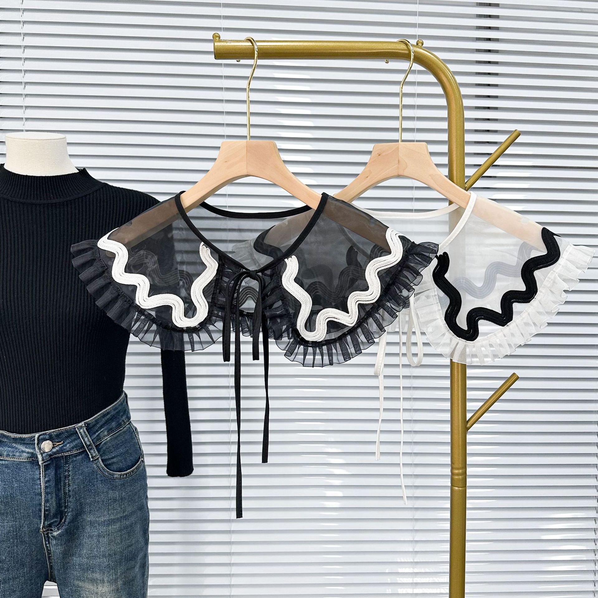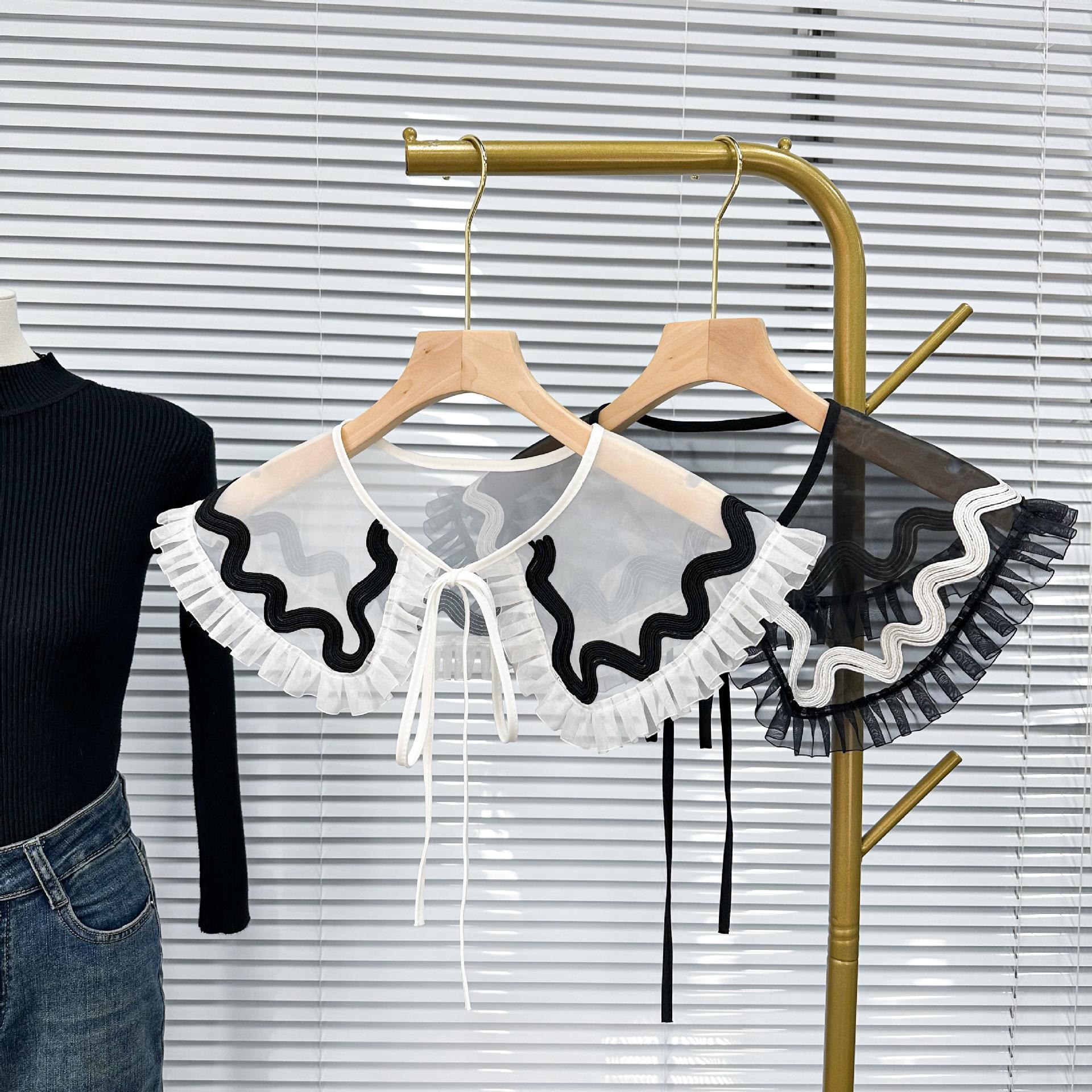2024 Nuevo Organza Bordado Doble Capa Bloque de Color Blanco y Negro Cuello Falso con Volantes para Mujer Más Fácil de Combinar Cuello Flor Venta al por Mayor
