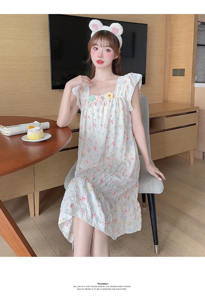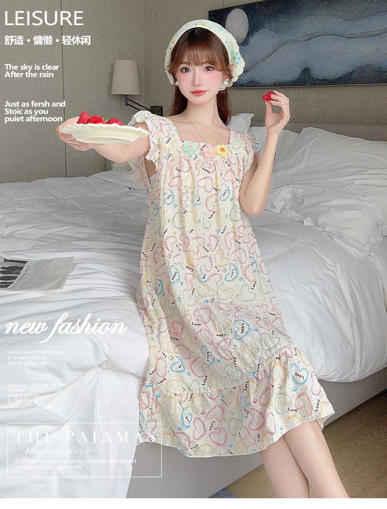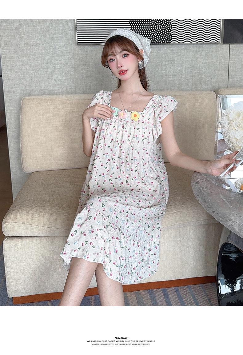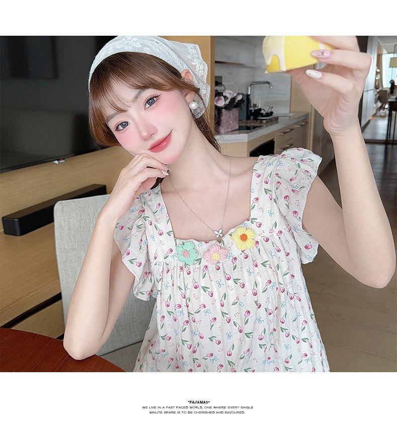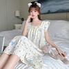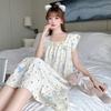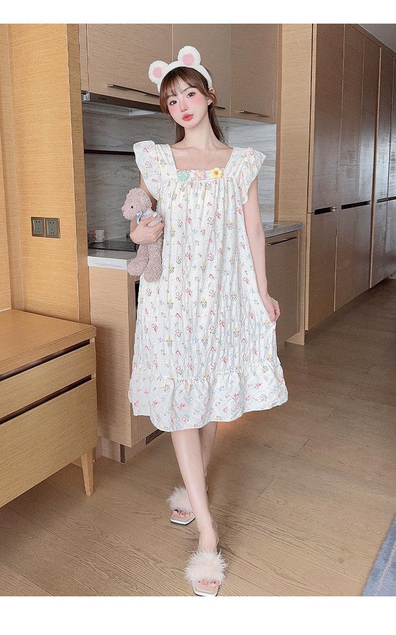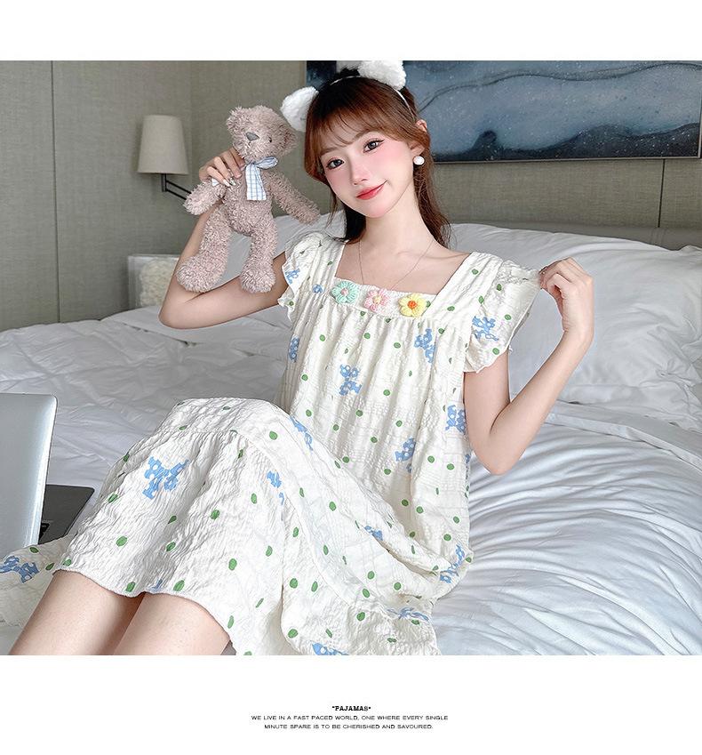 Camisón de verano estilo princesa con mangas voladoras para mujer, dulce y bonito camisón de algodón con diseño de nubes y flores, estilo hada, ropa exterior fina para el hogar.