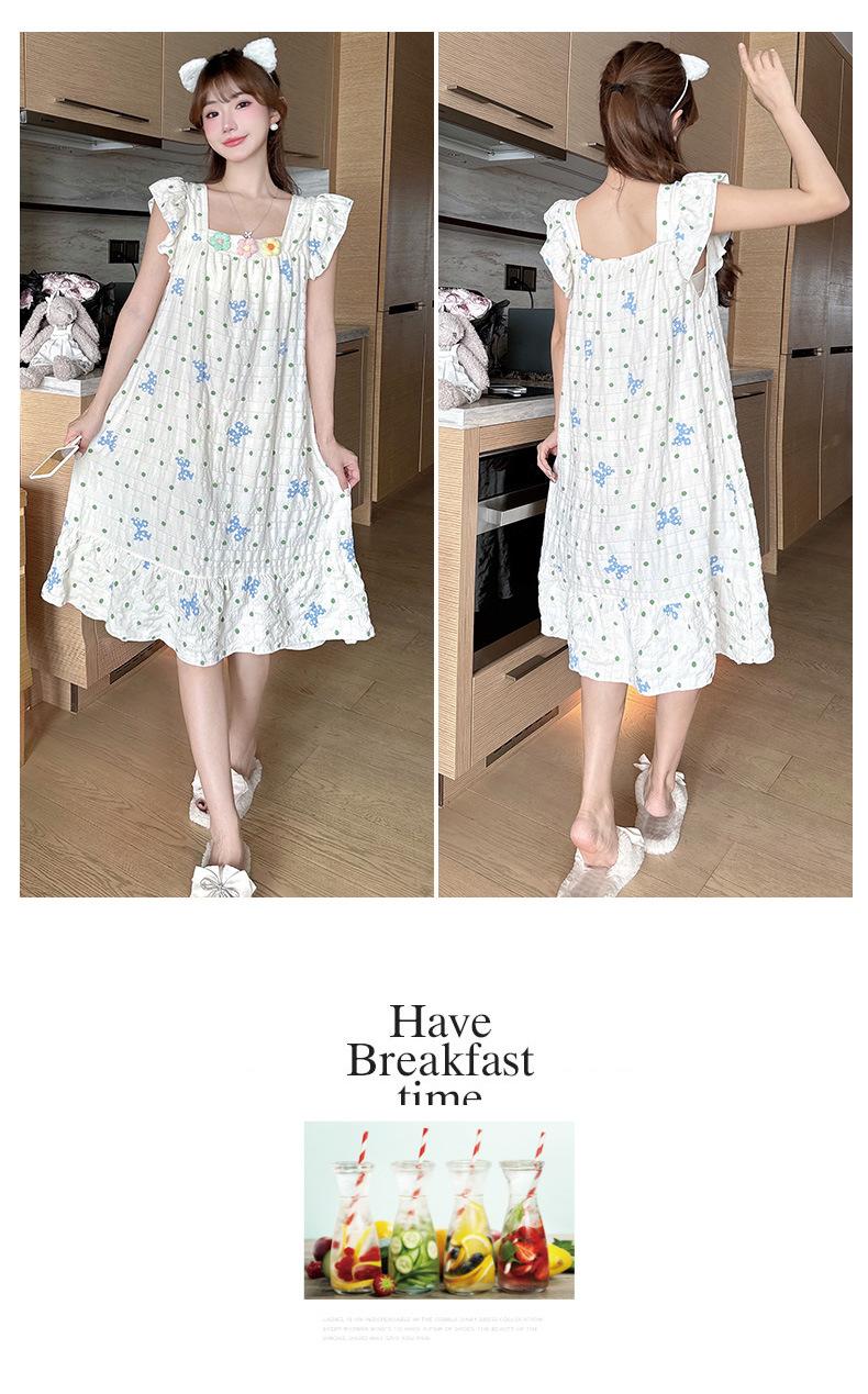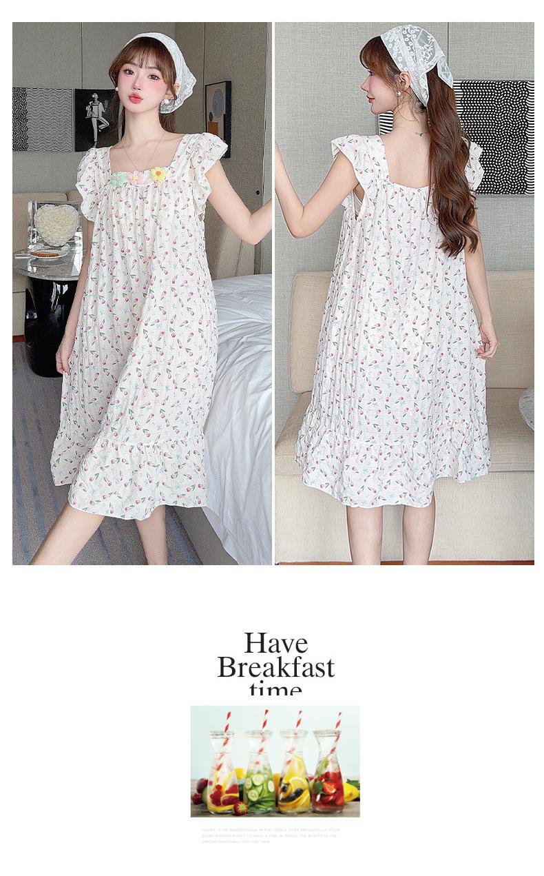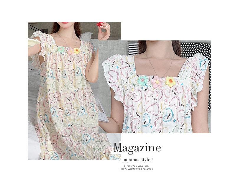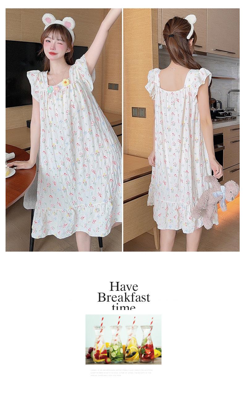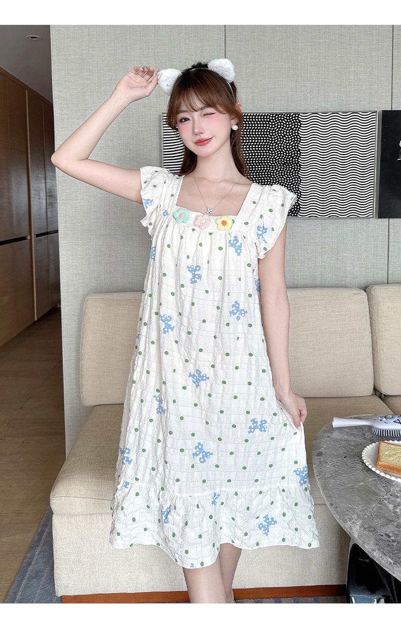 Camisón de verano estilo princesa con mangas voladoras para mujer, dulce y bonito camisón de algodón con diseño de nubes y flores, estilo hada, ropa exterior fina para el hogar.