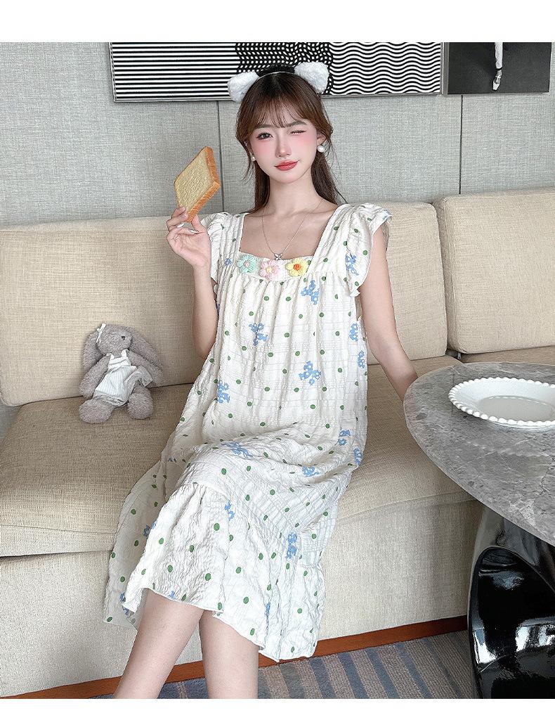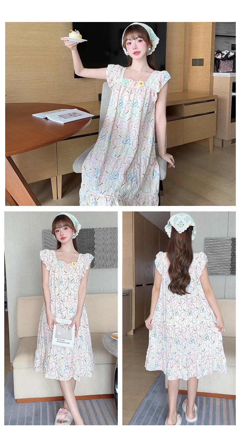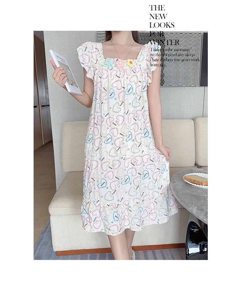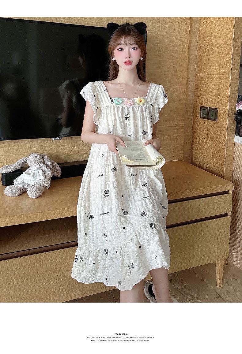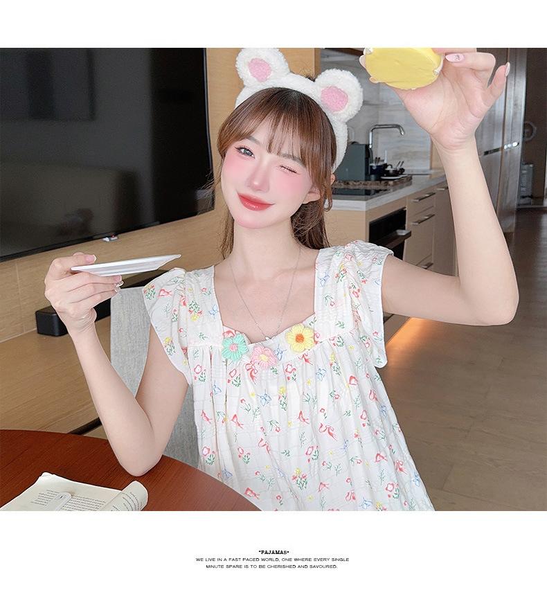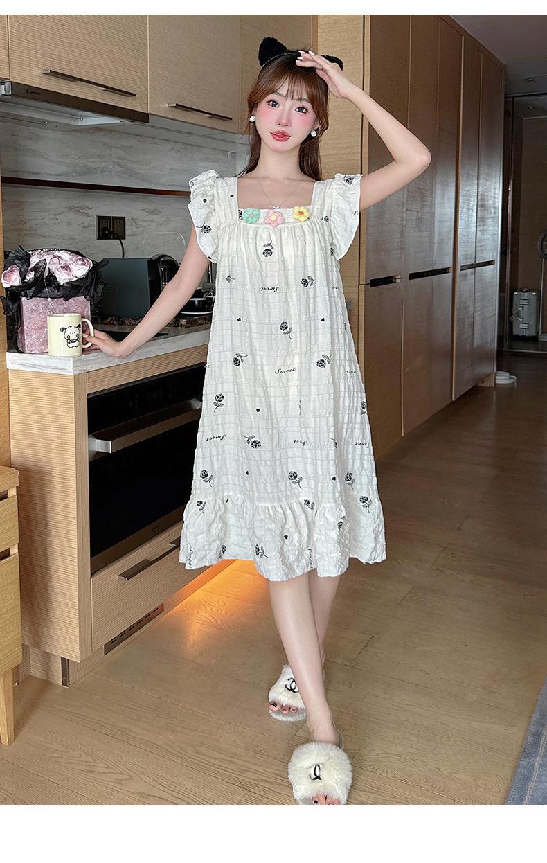 Camisón de verano estilo princesa con mangas voladoras para mujer, dulce y bonito camisón de algodón con diseño de nubes y flores, estilo hada, ropa exterior fina para el hogar.