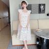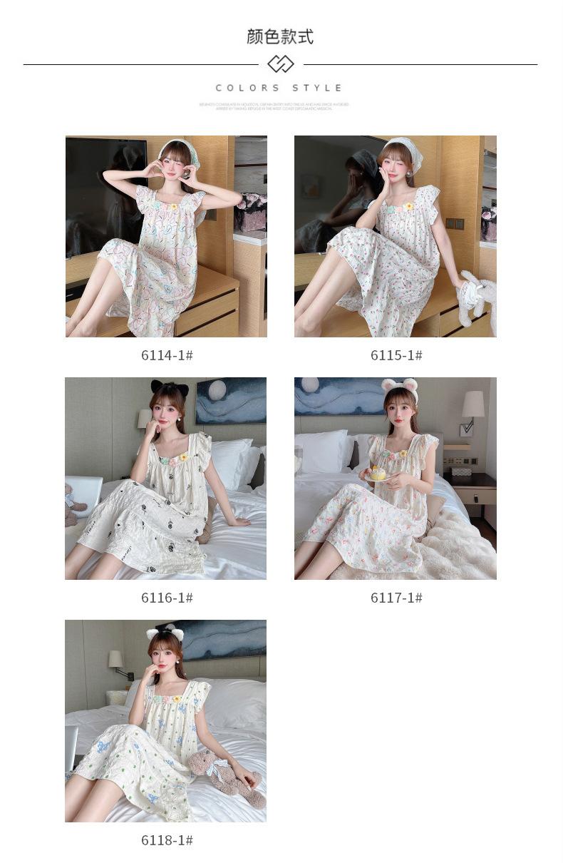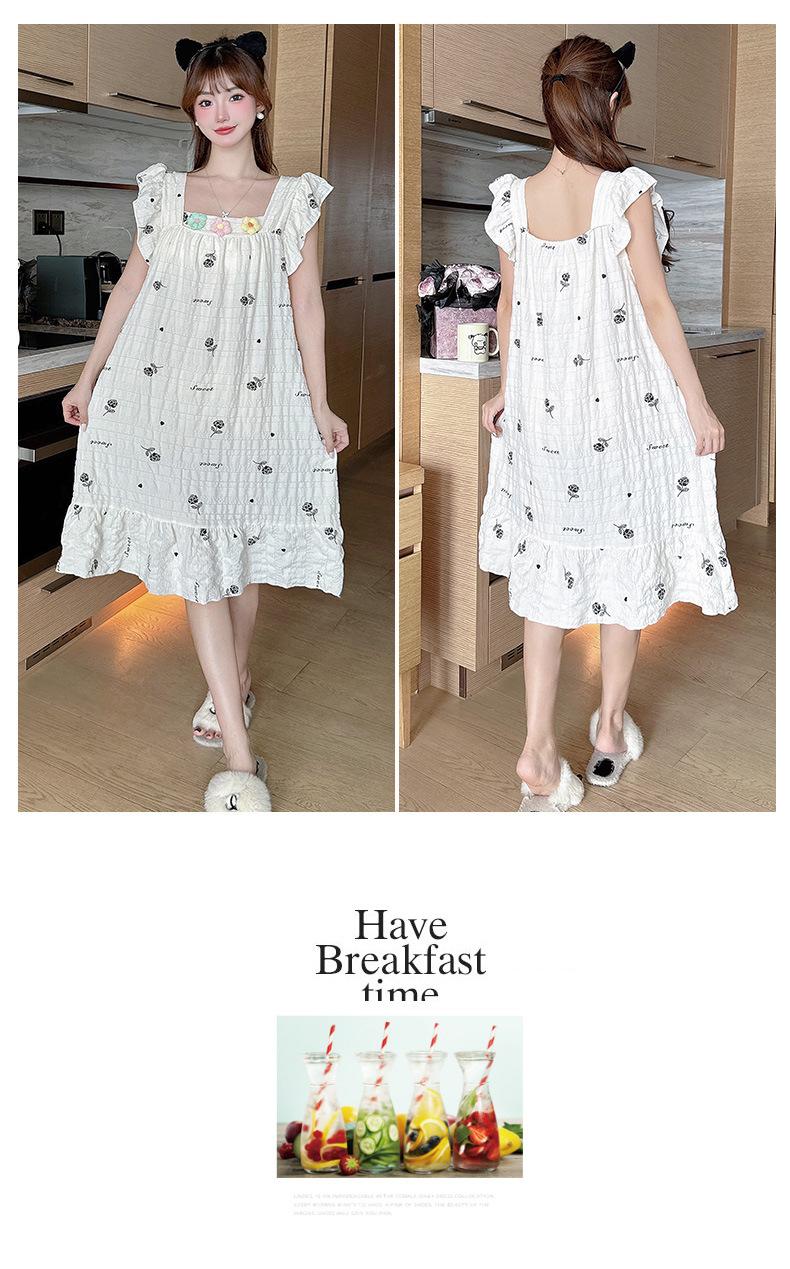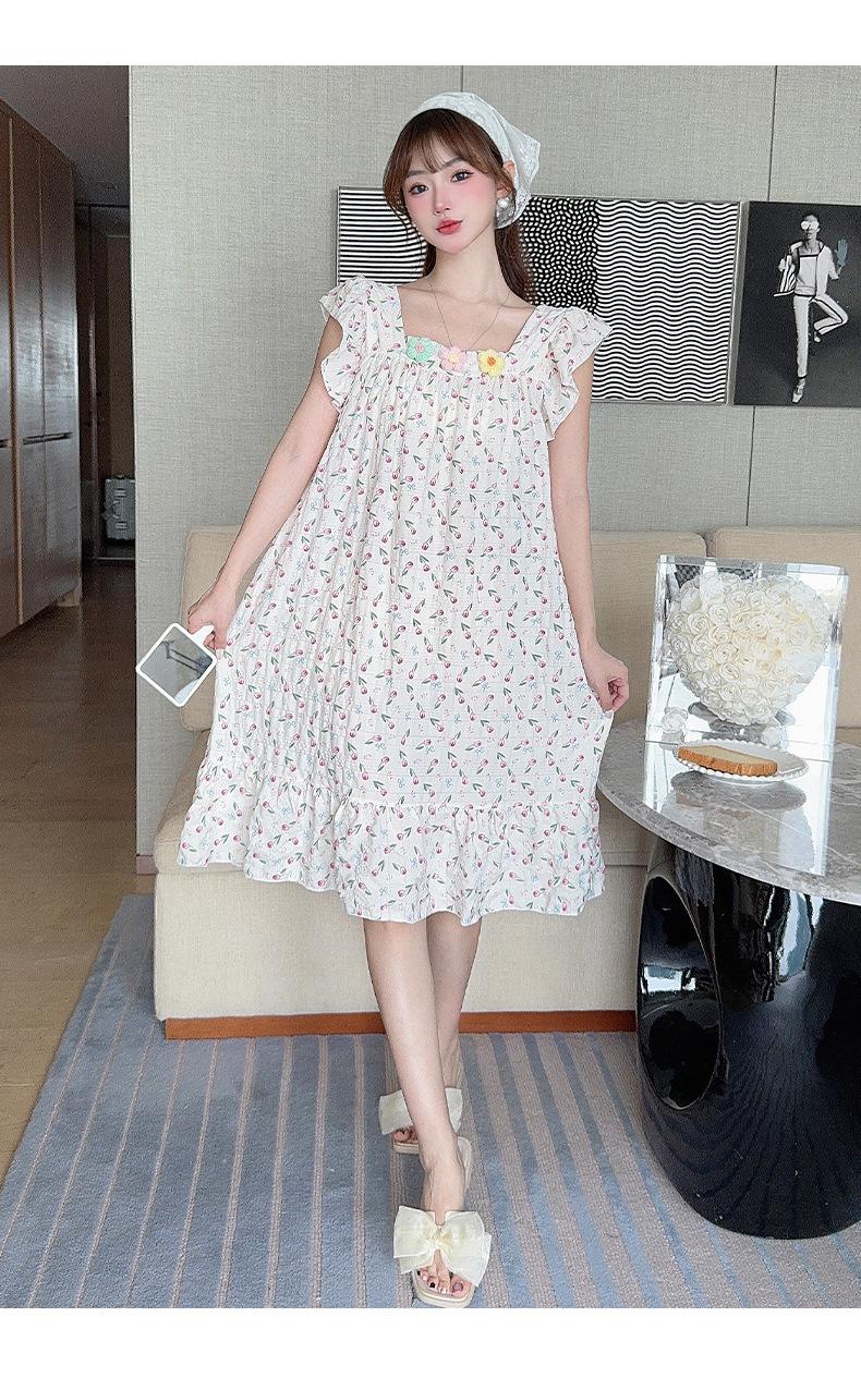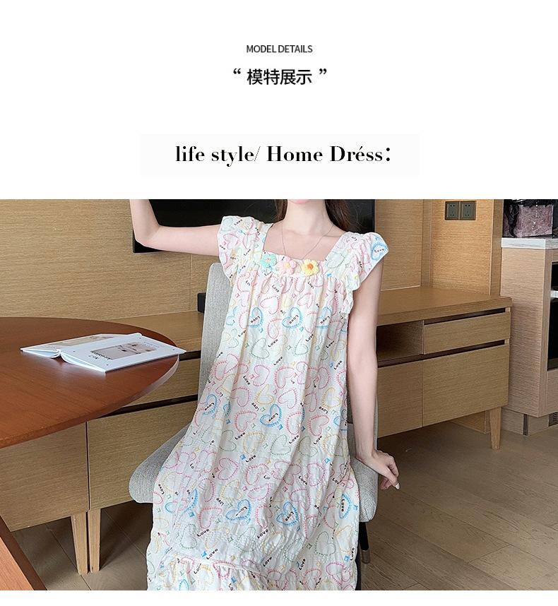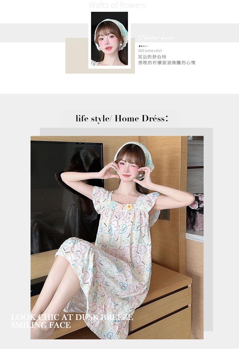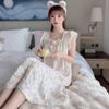 Camisón de verano estilo princesa con mangas voladoras para mujer, dulce y bonito camisón de algodón con diseño de nubes y flores, estilo hada, ropa exterior fina para el hogar.