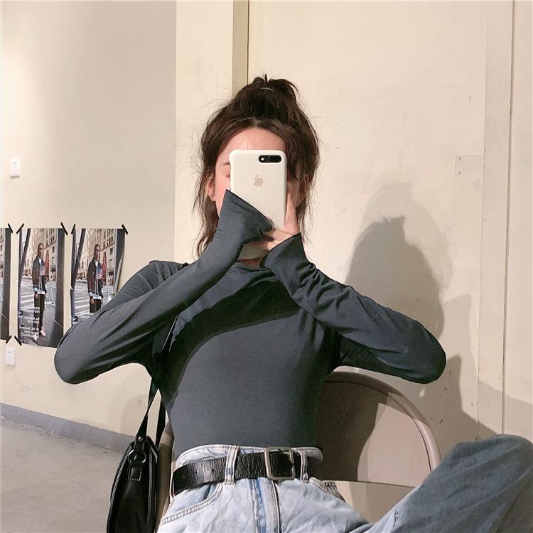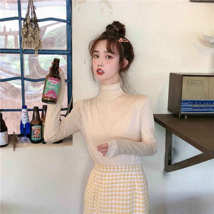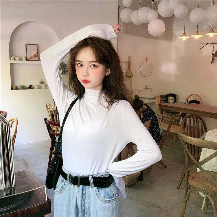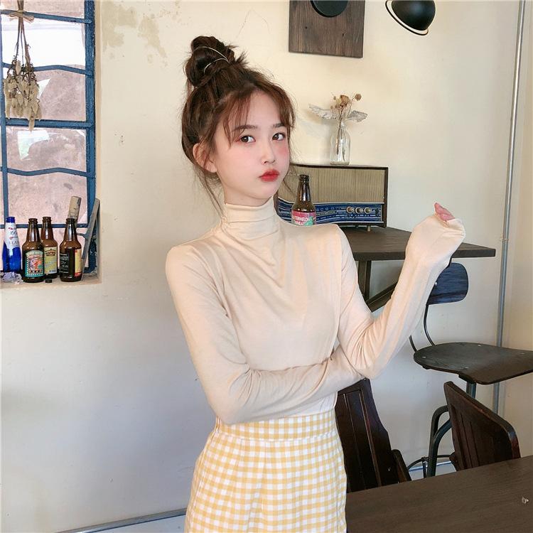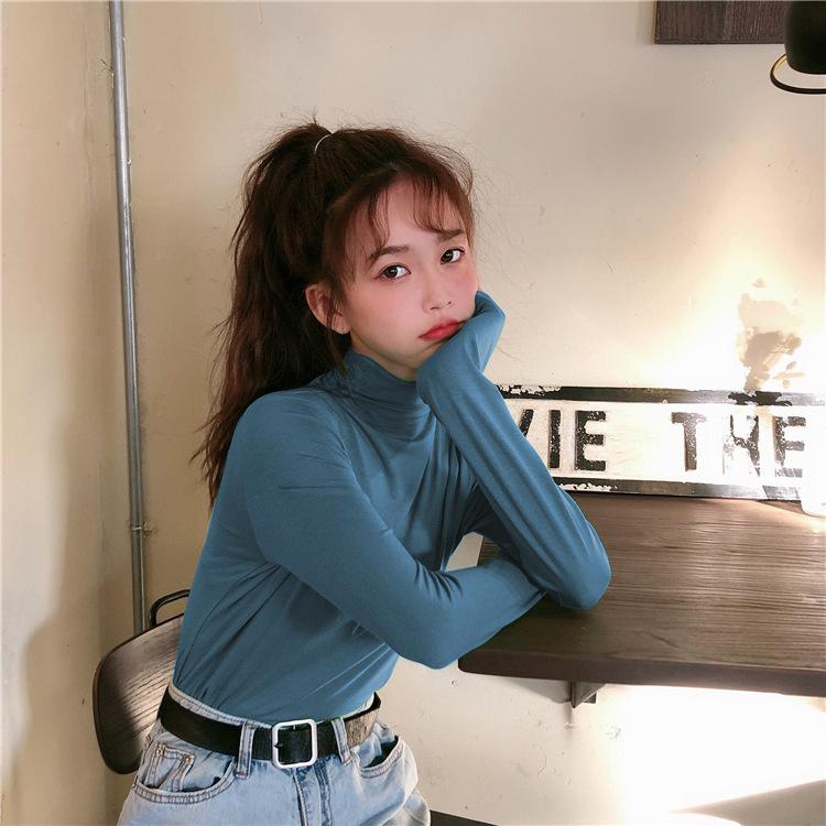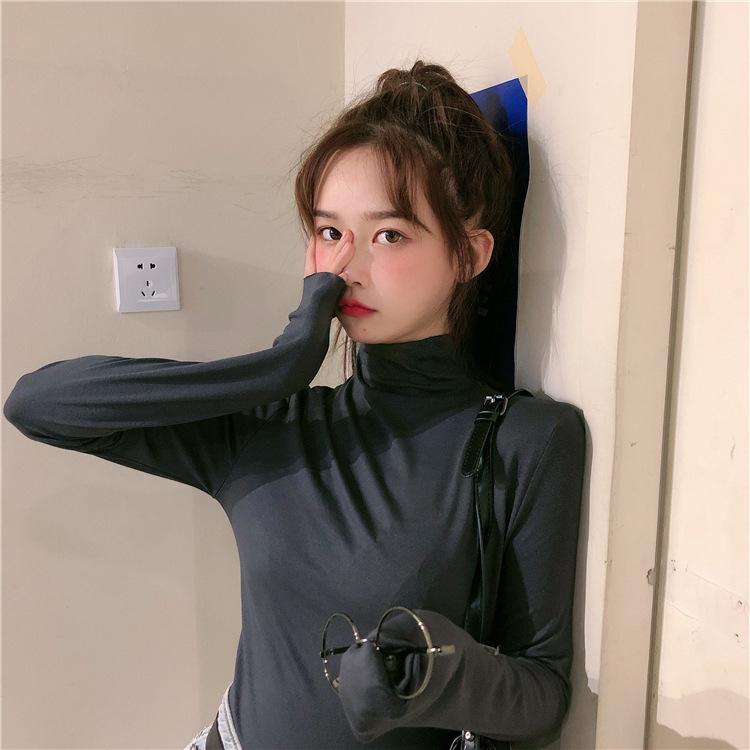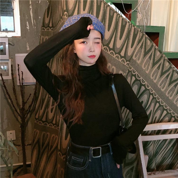 Camisa de cuello alto de terciopelo para mujer, ropa interior de otoño e invierno de 2023, nueva camiseta versátil de manga larga estilo occidental para mujer