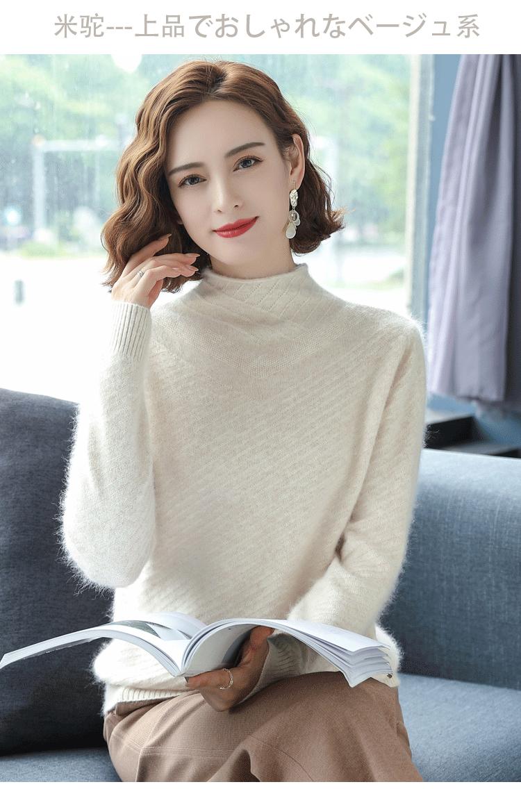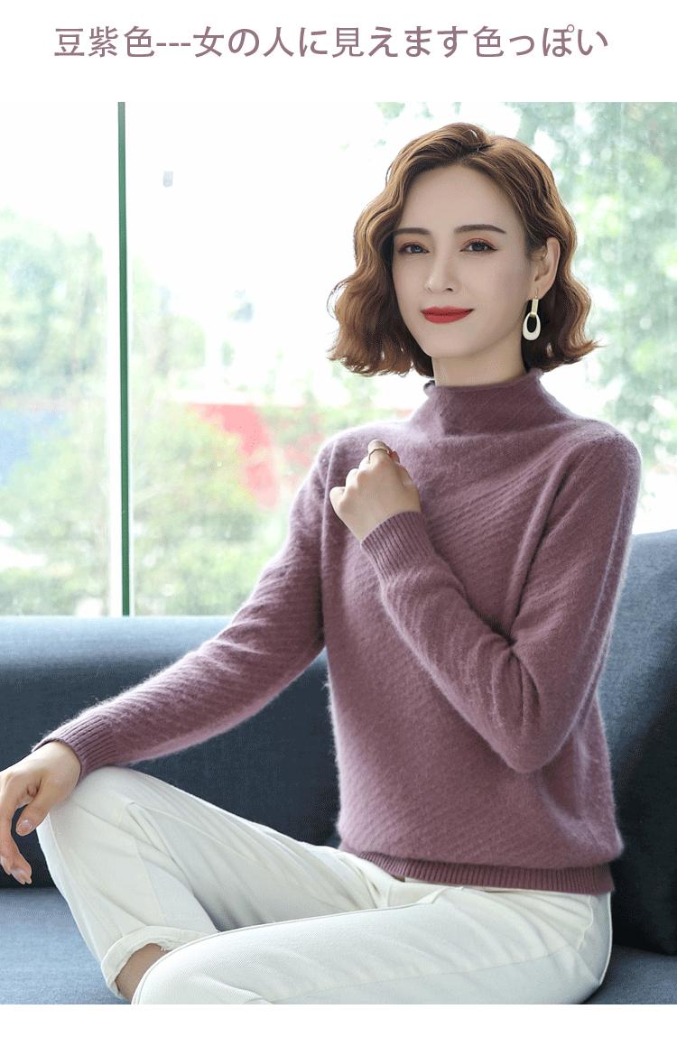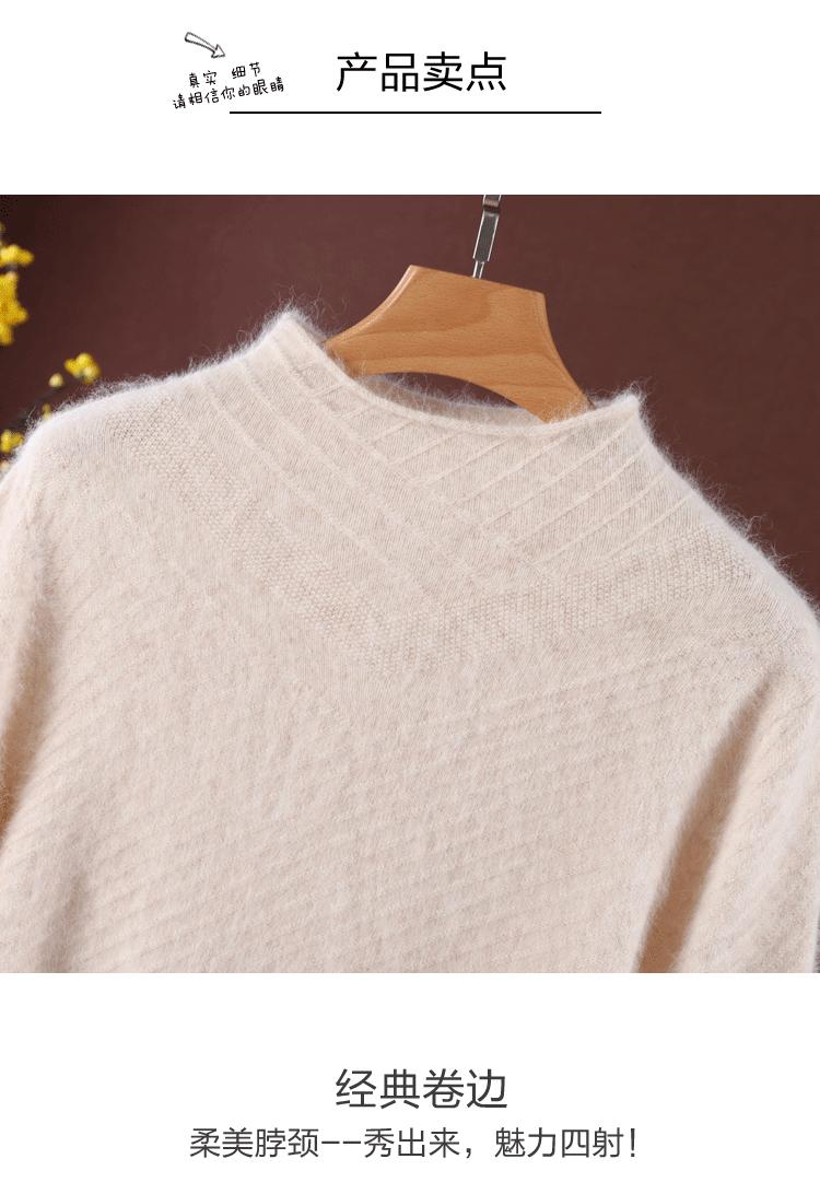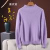 Suéter de Visón Nuevo de Otoño e Invierno para Mujer Nuevo Suéter de Cachemira de Cuello Medio Alto Versátil Suéter de Lana de Color Puro Ajustado para Fondo