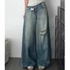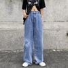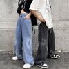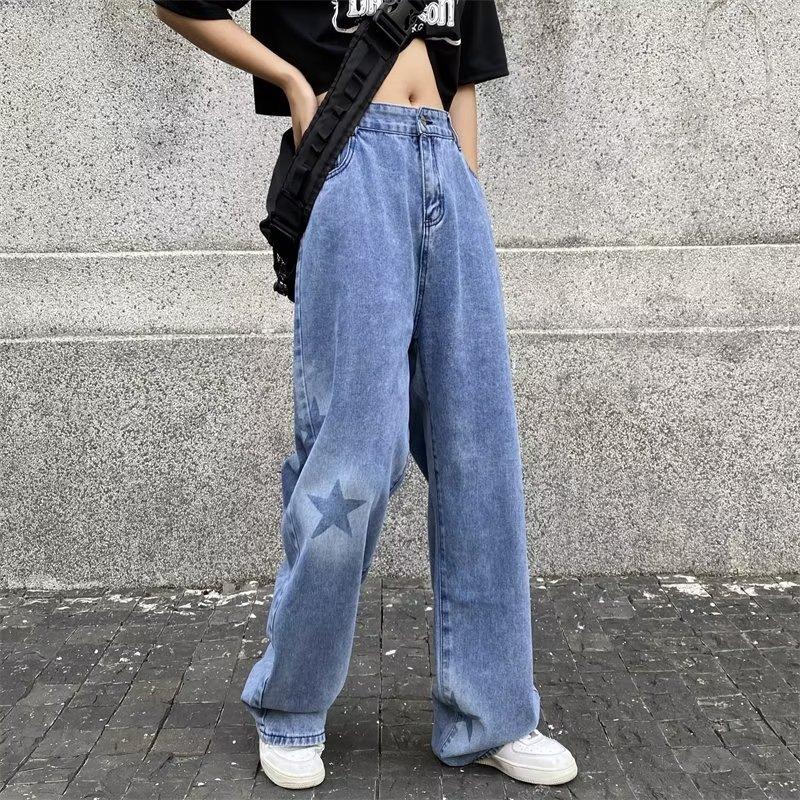 Vaqueros de pierna ancha para mujer, primavera 2023, nuevos pantalones rectos holgados de cintura alta gris ahumado para otoño e invierno, tallas grandes