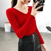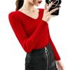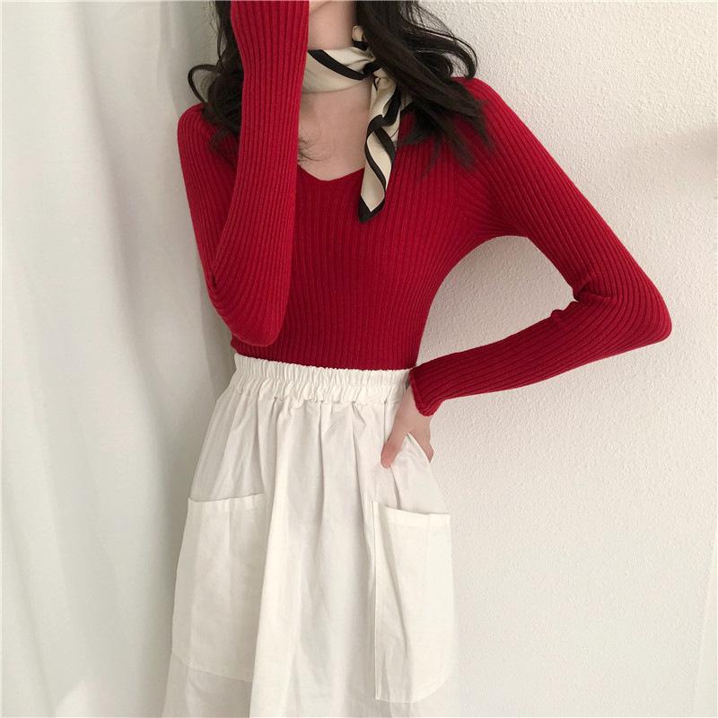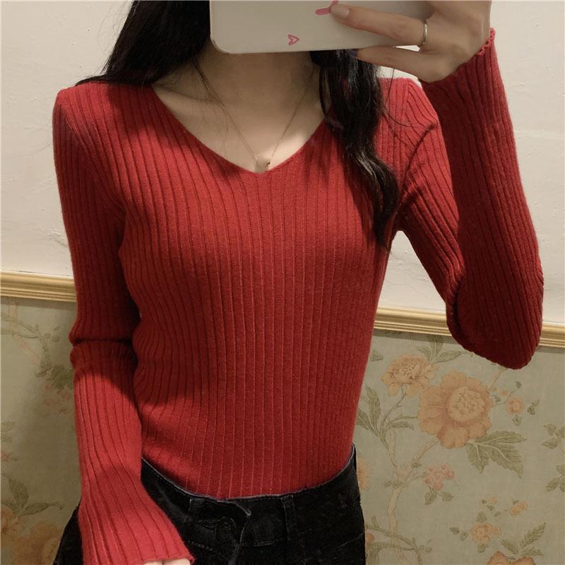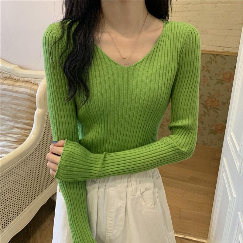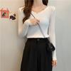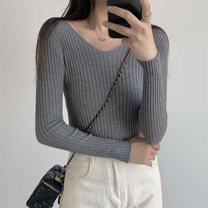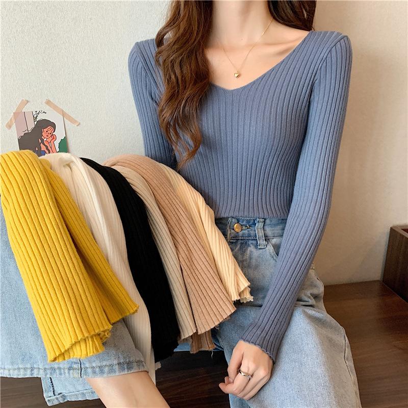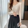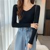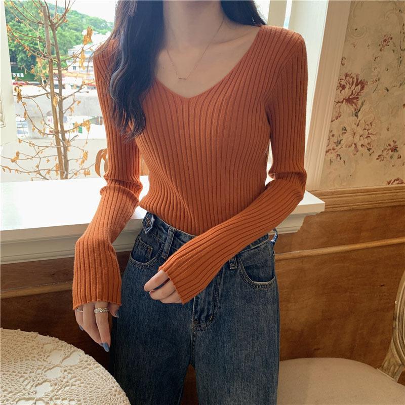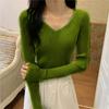 Suéter de manga larga con cuello en V, ajustado y combinable con todo, estilo occidental, popular, de cuello bajo, para mujer, otoño e invierno de 2024