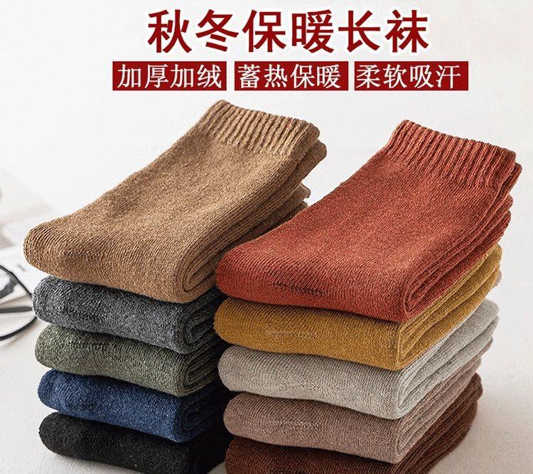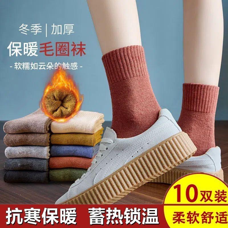 Calcetines gruesos de invierno con forro polar, calcetines cálidos de invierno hasta media pantorrilla para mujer, bolsa, calcetines de algodón rizo de diez colores sólidos